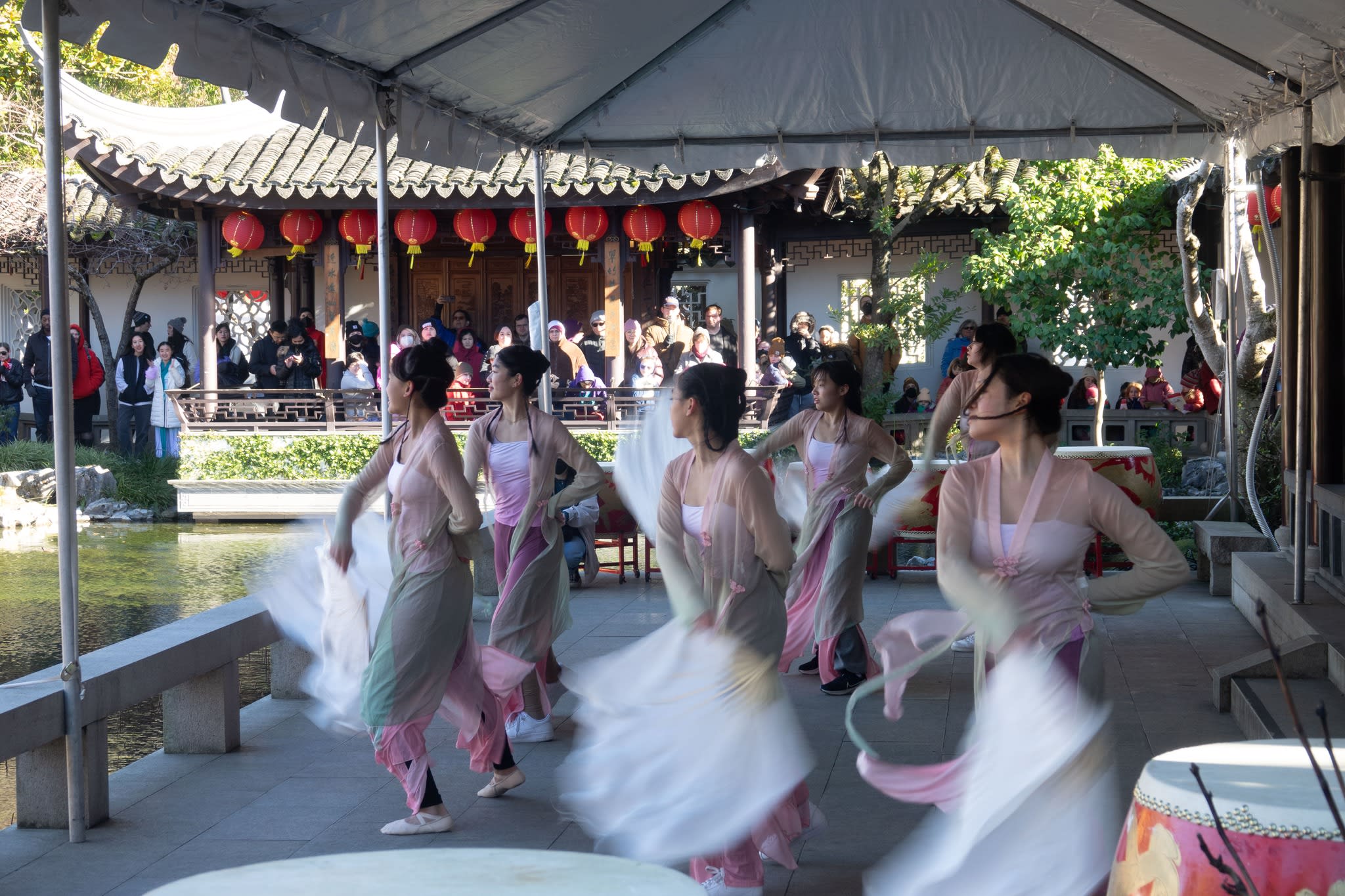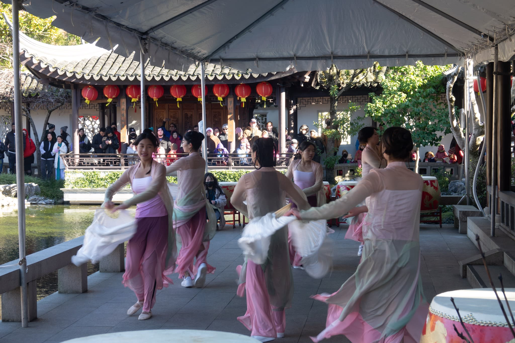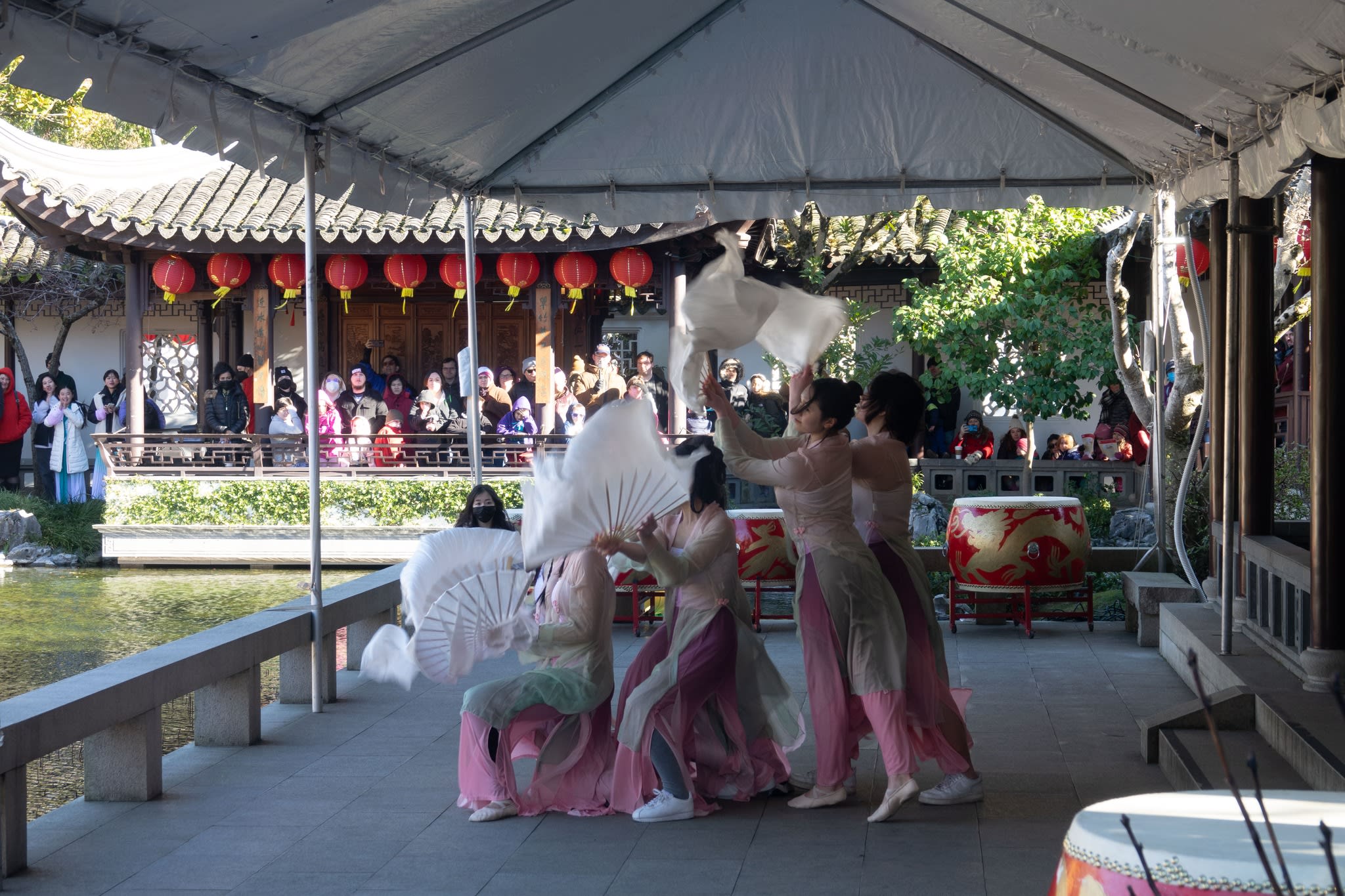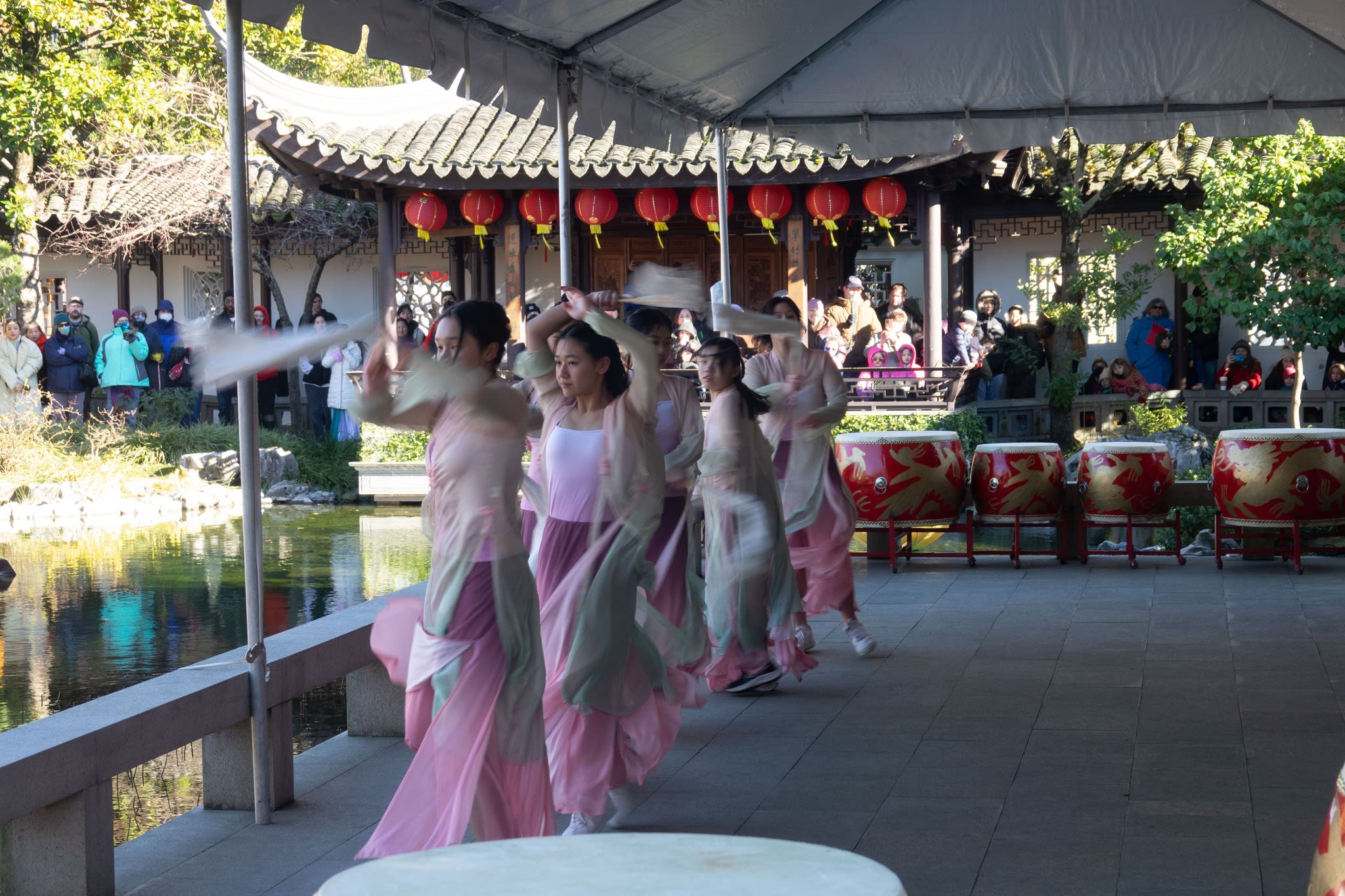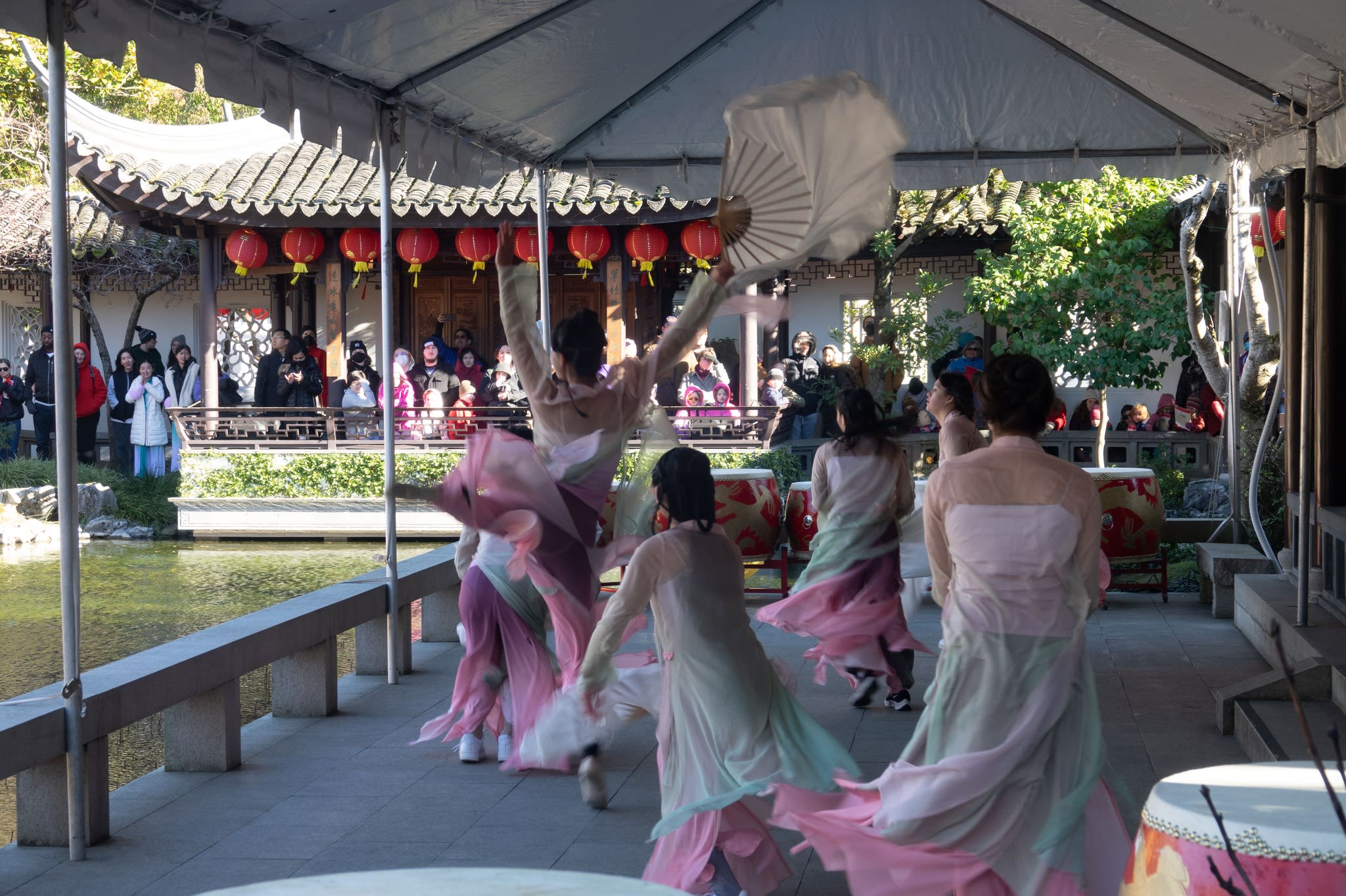 The volunteers have been helping out each of eight lantern viewing evenings at Lan Su Chinese Garden. On Sunday, we also hosted a crafts table, and both Mulan Drum Team and Jade Dance Team performed very enthusiastically even though it was freezing cold outside. They didn’t compromise on one movement and even a facial expression. They gave a full experience of our culture to the audience.
