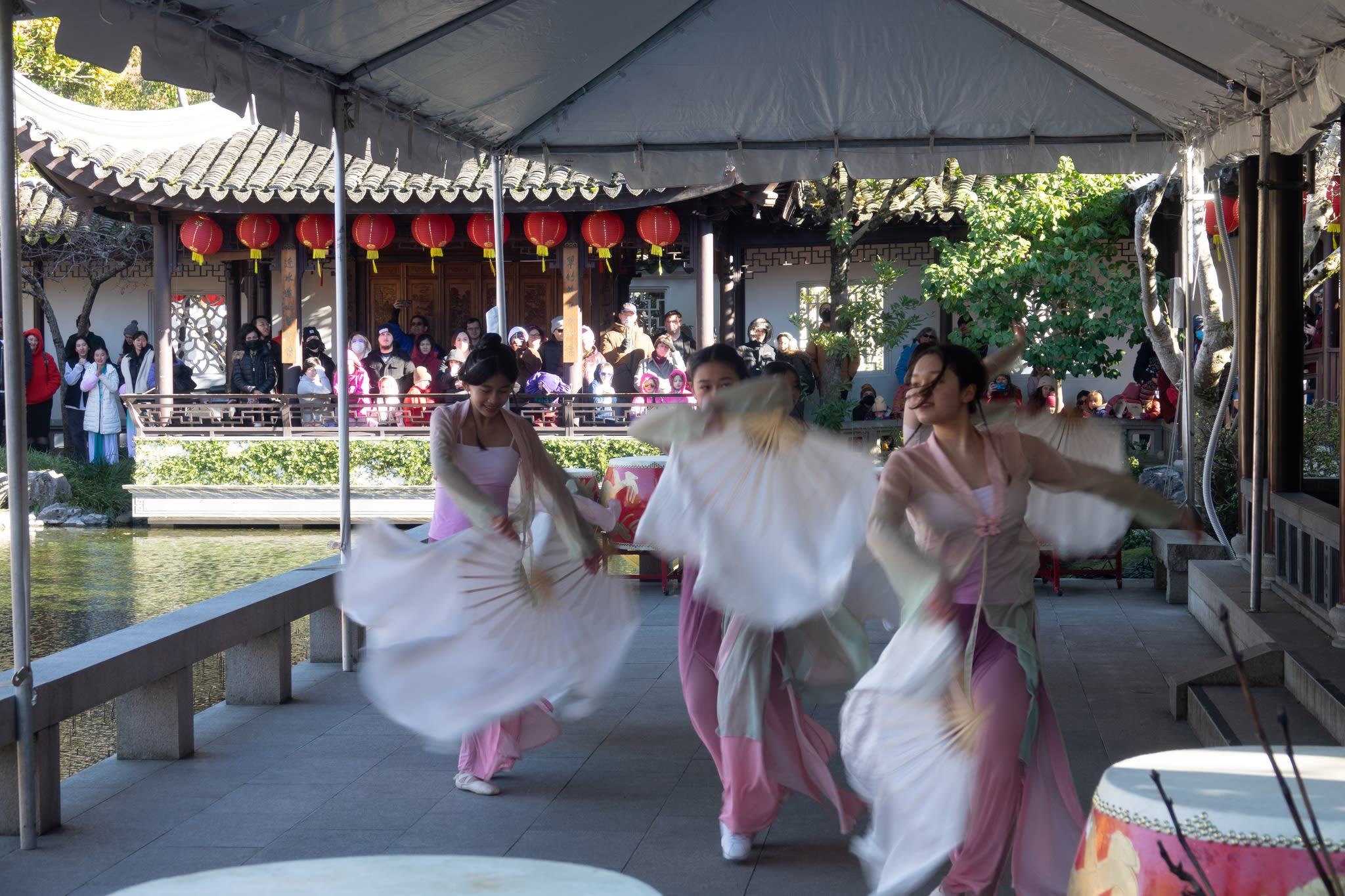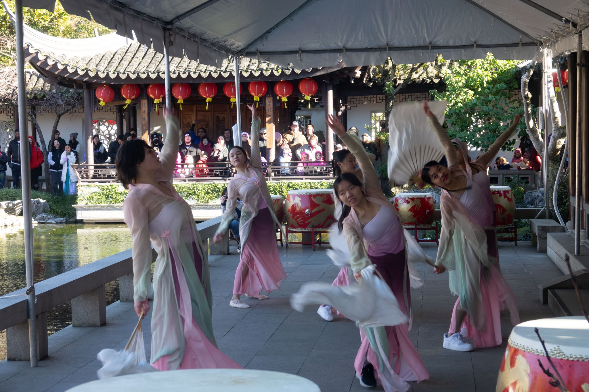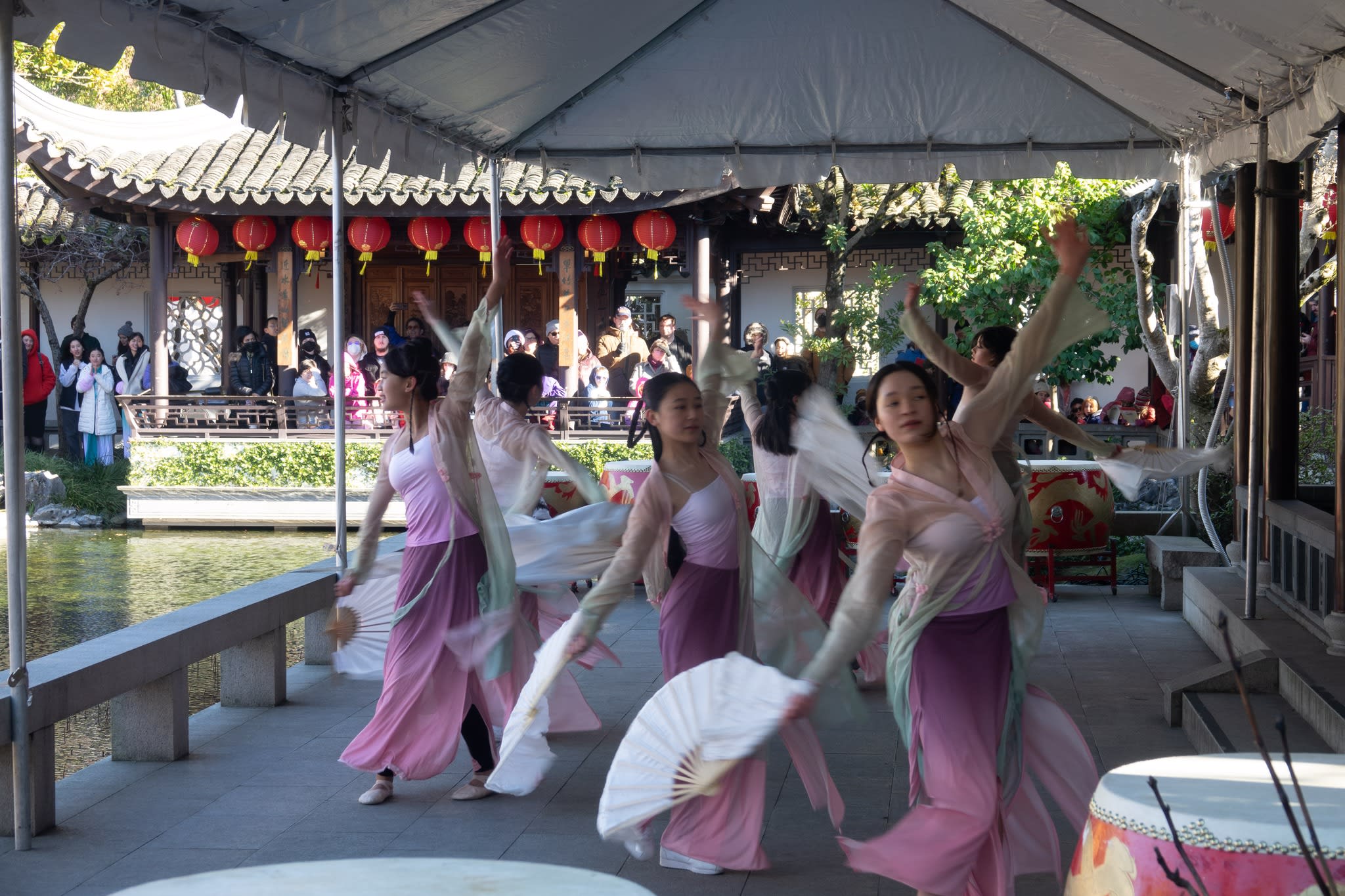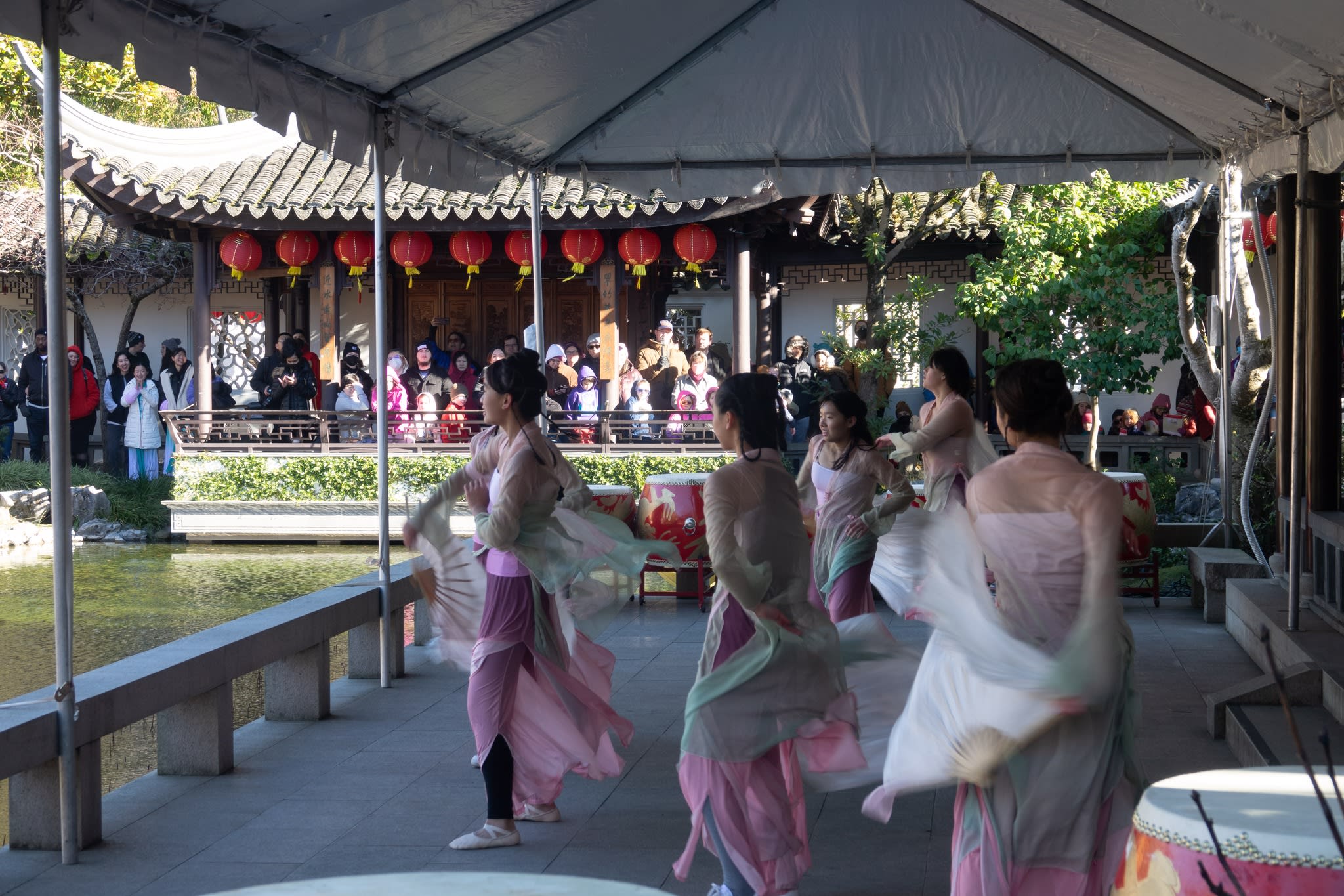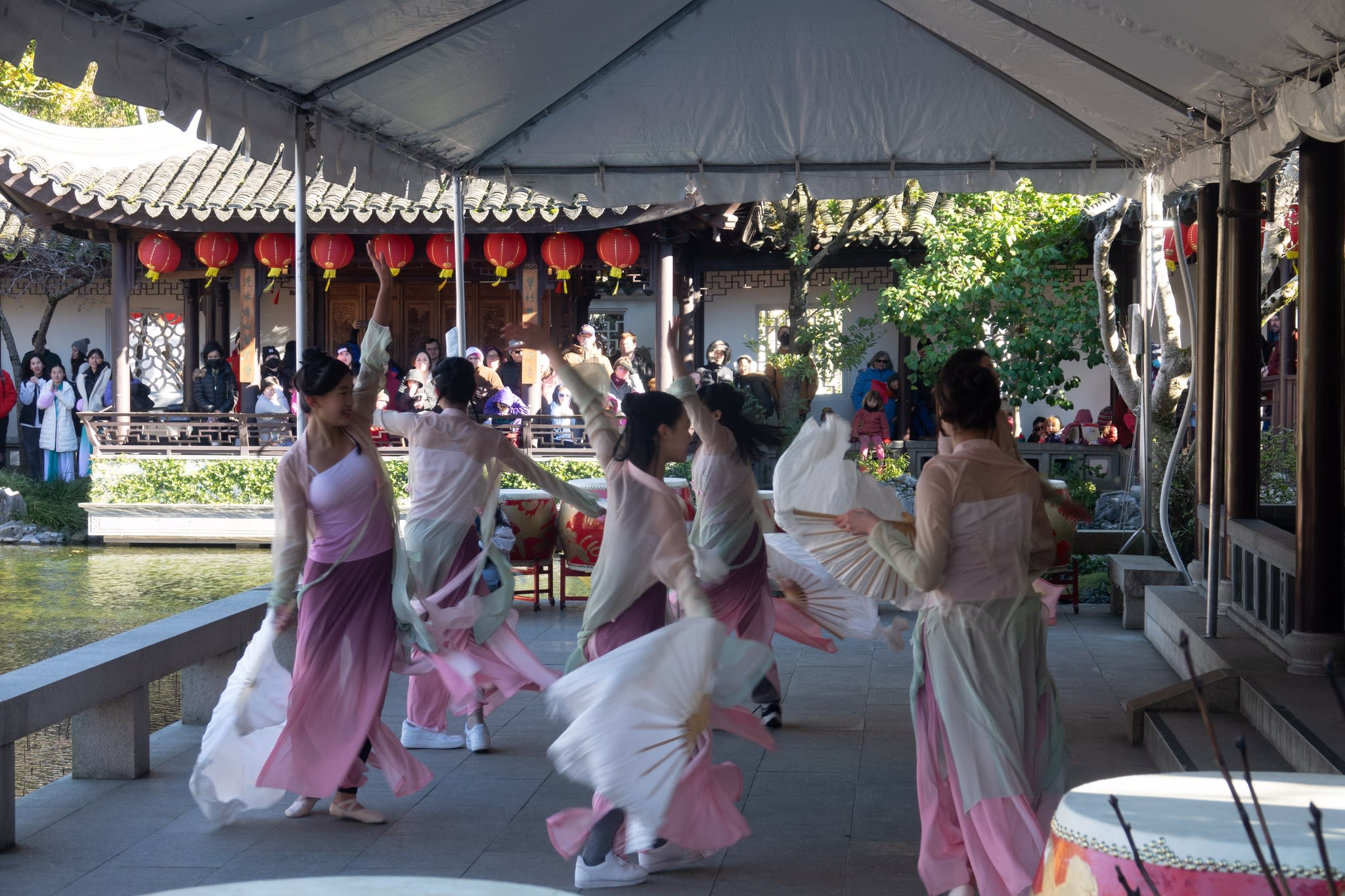 The volunteers have been helping out each of eight lantern viewing evenings at Lan Su Chinese Garden. On Sunday, we also hosted a crafts table, and both Mulan Drum Team and Jade Dance Team performed very enthusiastically even though it was freezing cold outside. They didn’t compromise on one movement and even a facial expression. They gave a full experience of our culture to the audience.