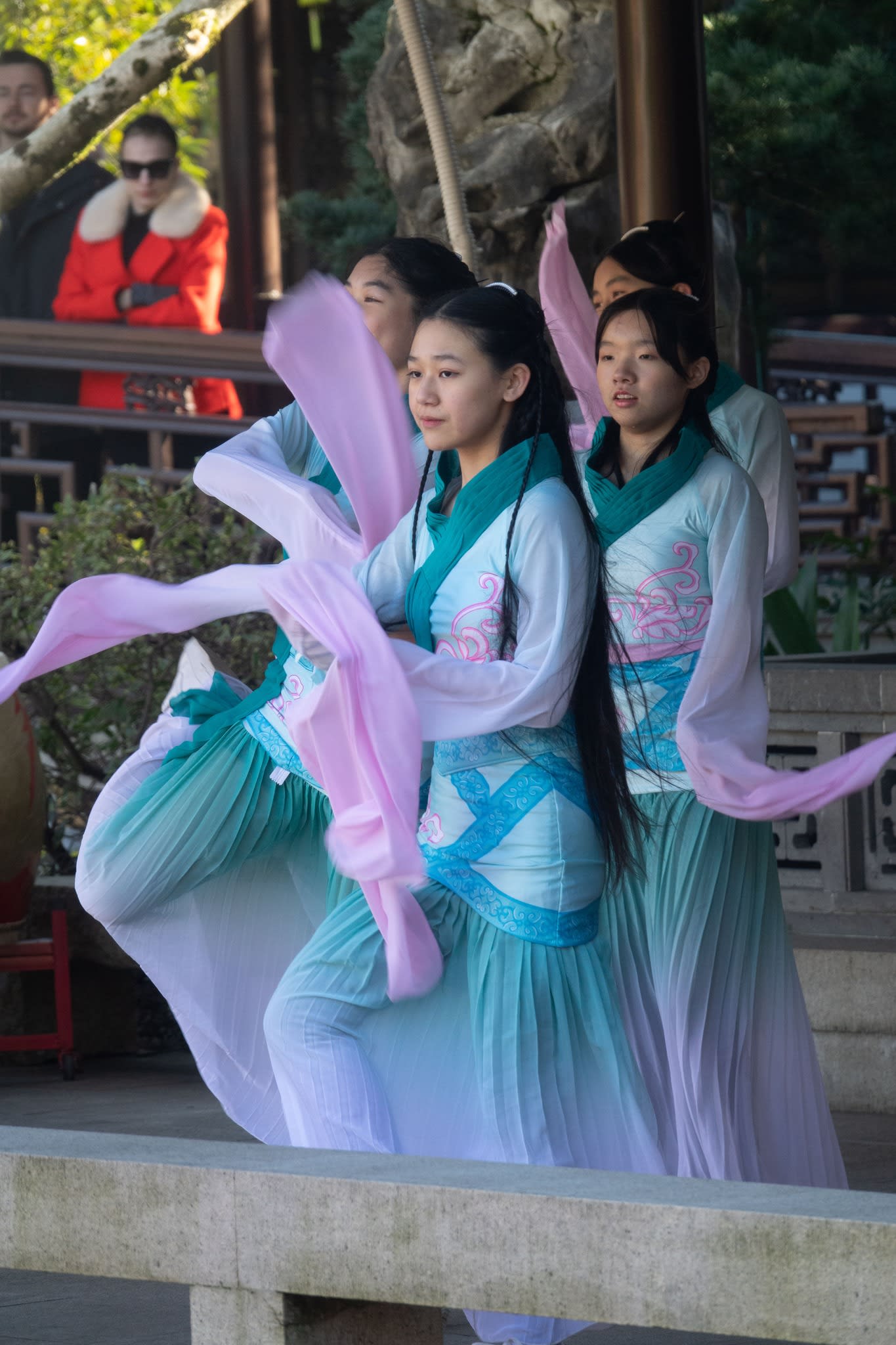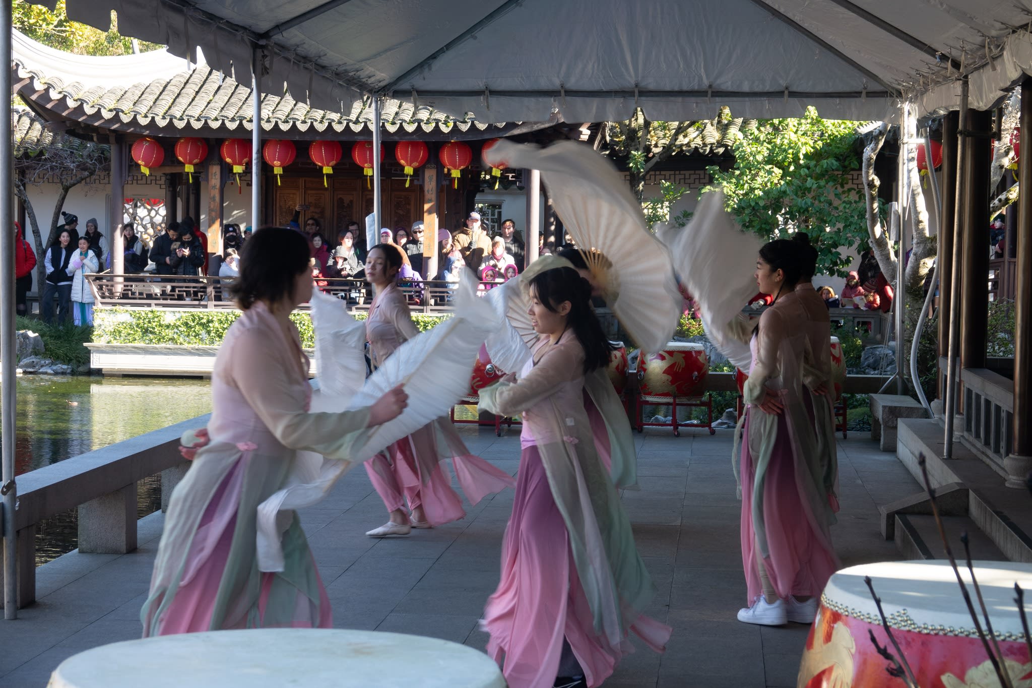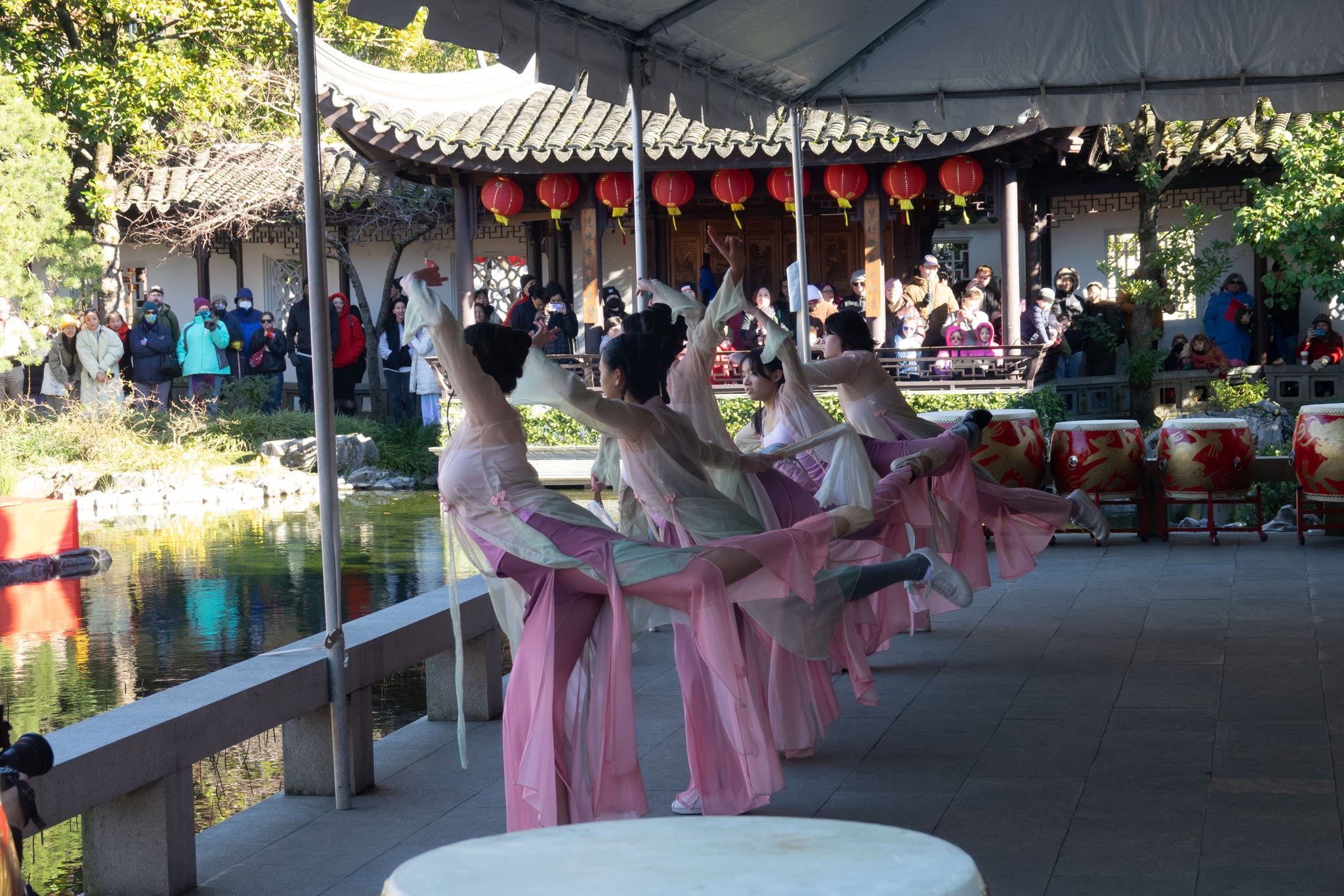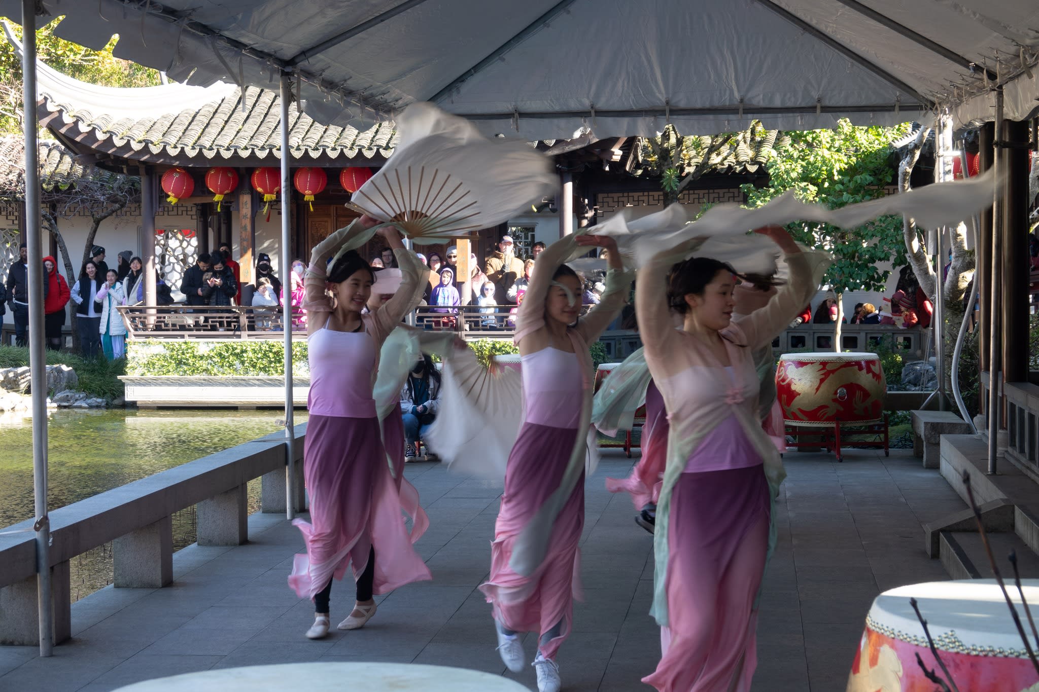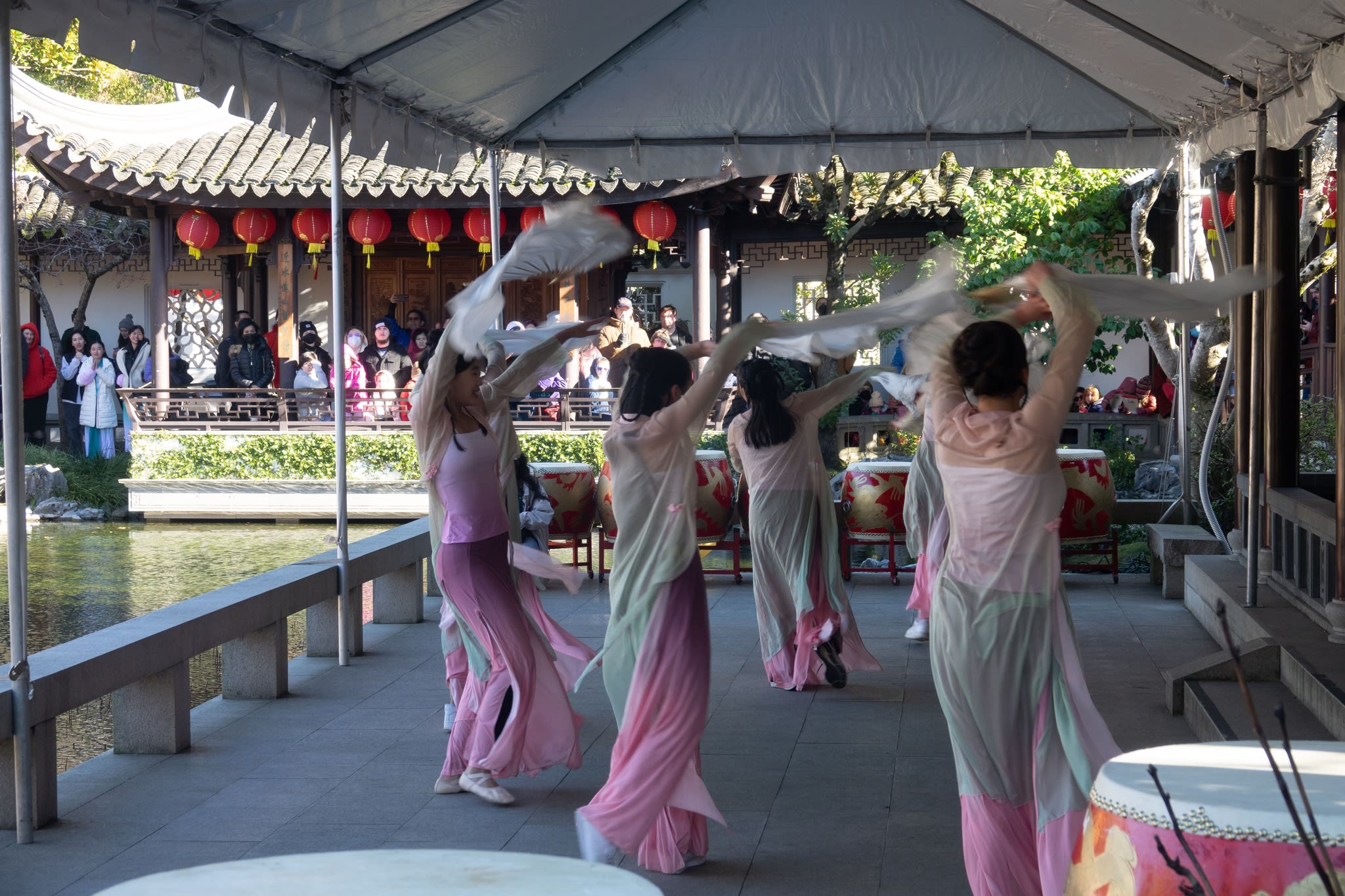 The volunteers have been helping out each of eight lantern viewing evenings at Lan Su Chinese Garden. On Sunday, we also hosted a crafts table, and both Mulan Drum Team and Jade Dance Team performed very enthusiastically even though it was freezing cold outside. They didn’t compromise on one movement and even a facial expression. They gave a full experience of our culture to the audience.