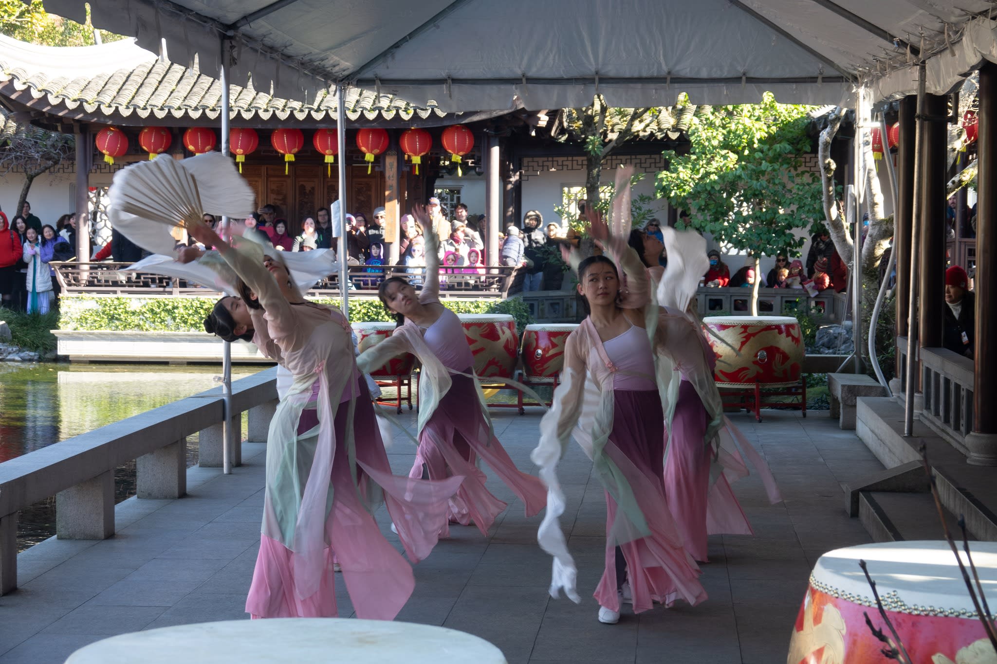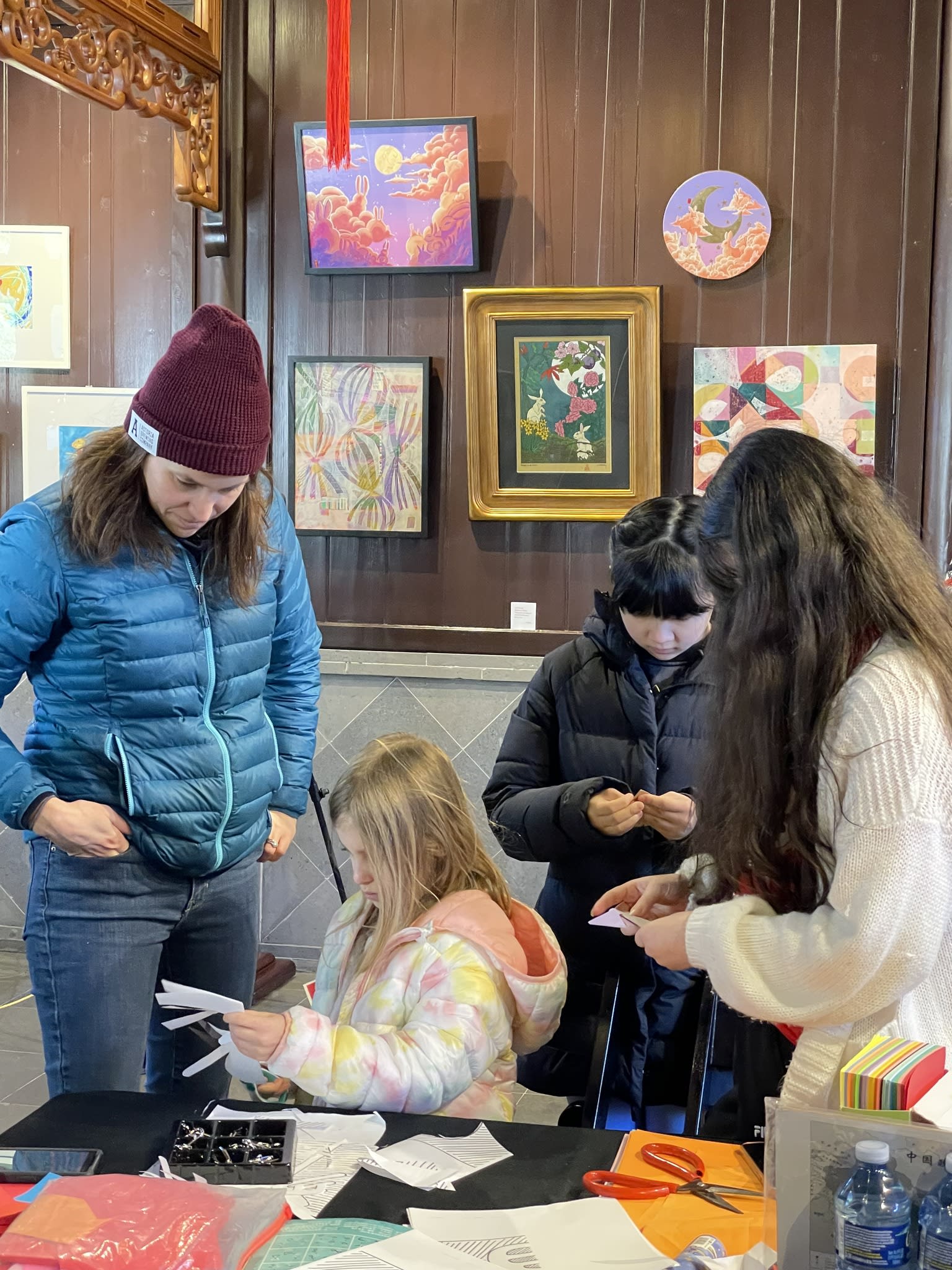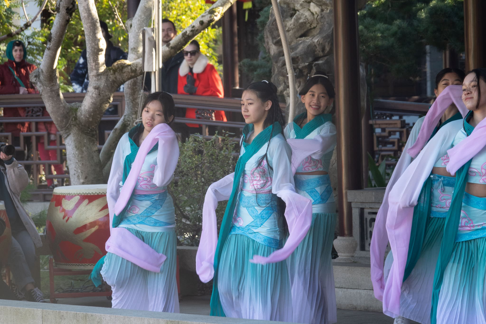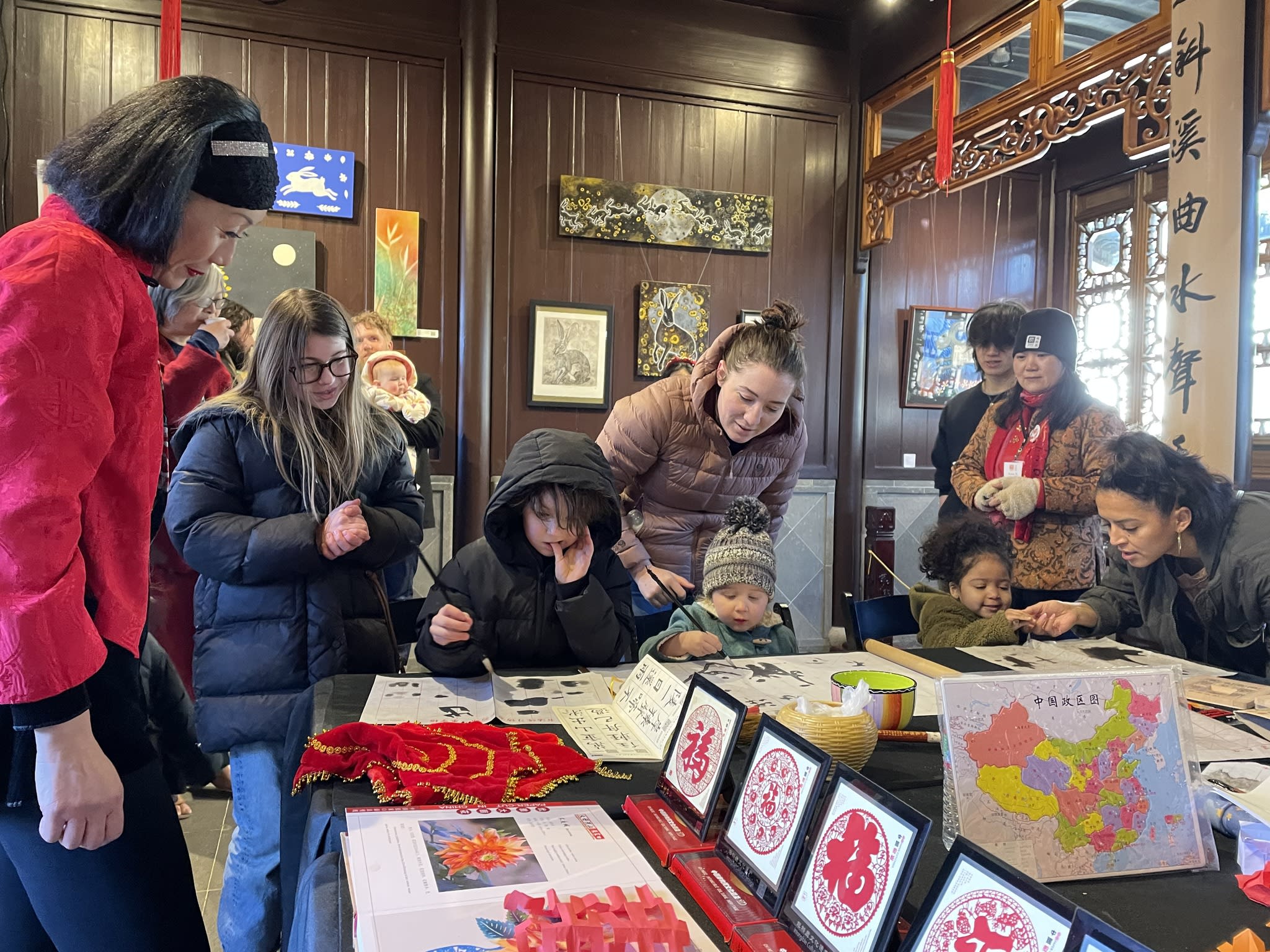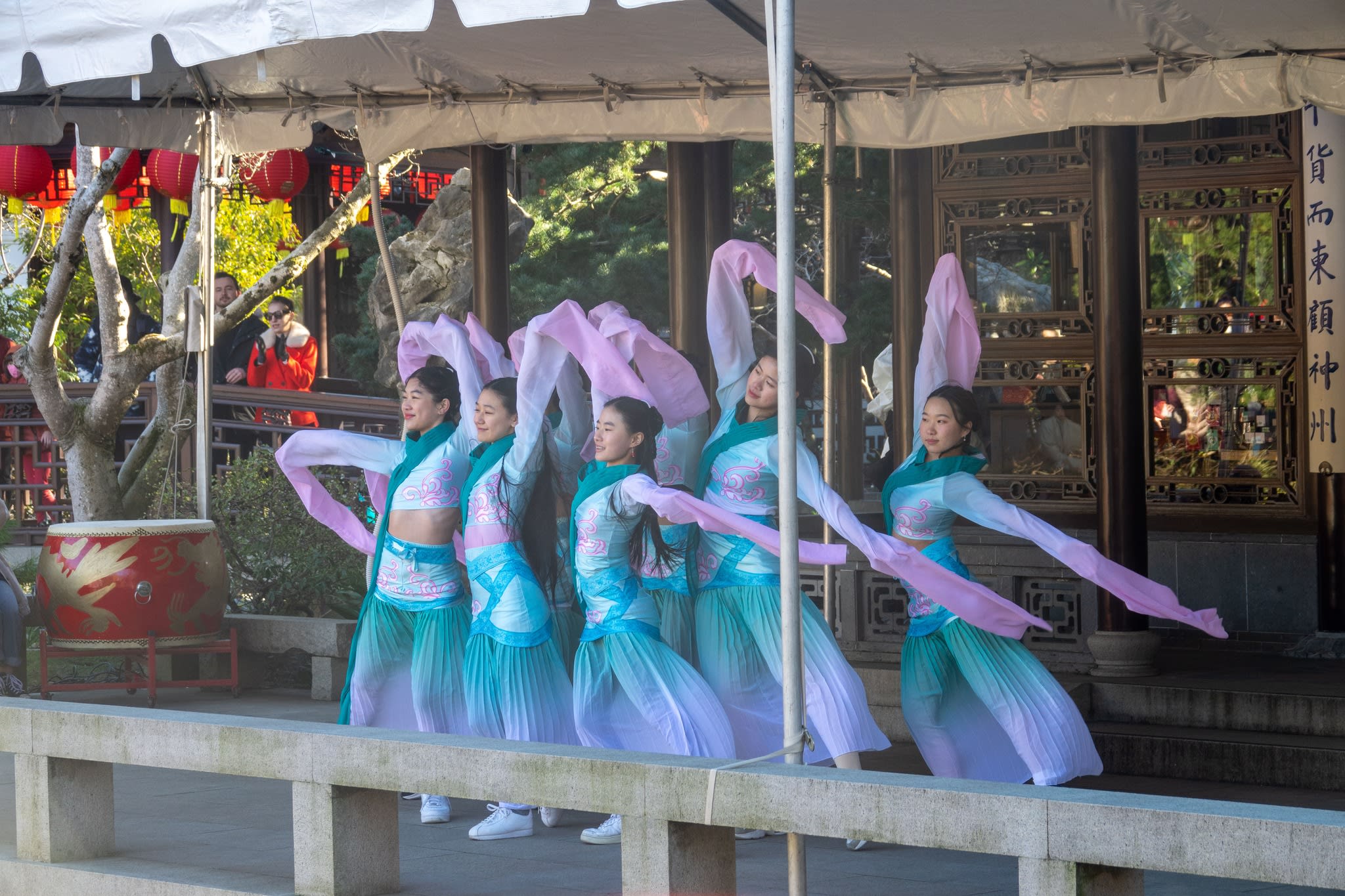 The volunteers have been helping out each of eight lantern viewing evenings at Lan Su Chinese Garden. On Sunday, we also hosted a crafts table, and both Mulan Drum Team and Jade Dance Team performed very enthusiastically even though it was freezing cold outside. They didn’t compromise on one movement and even a facial expression. They gave a full experience of our culture to the audience.
