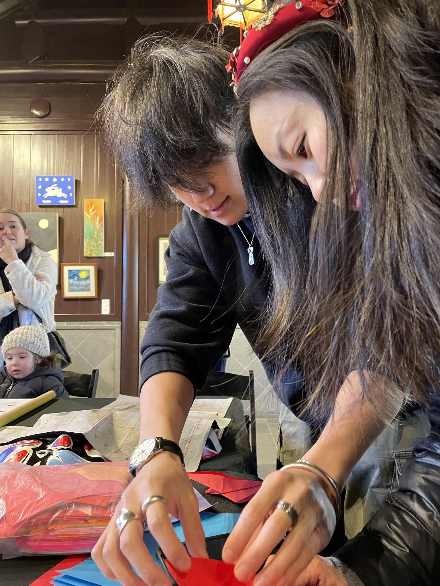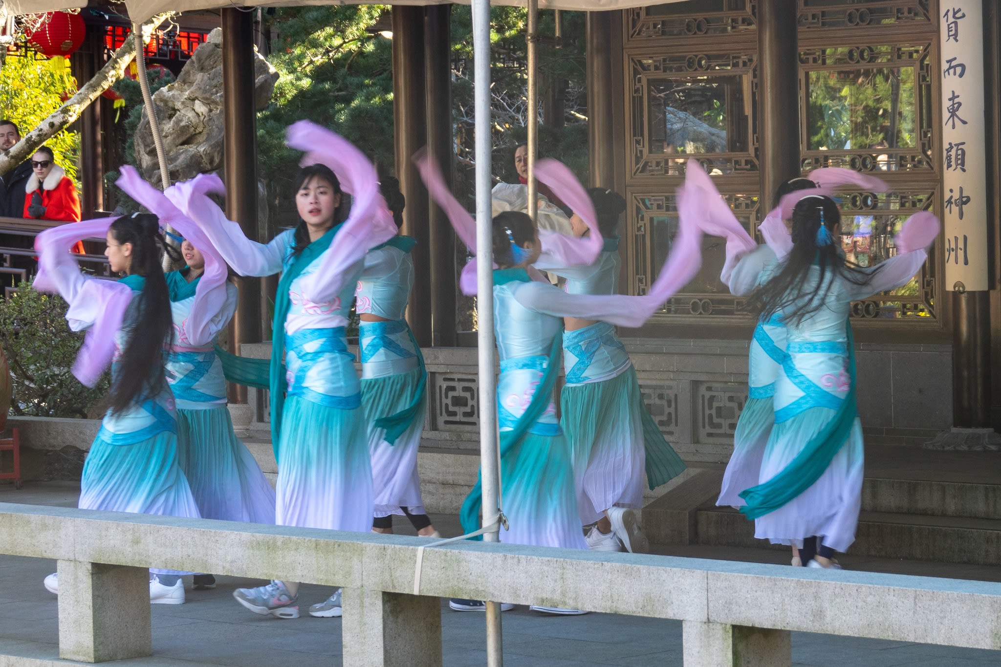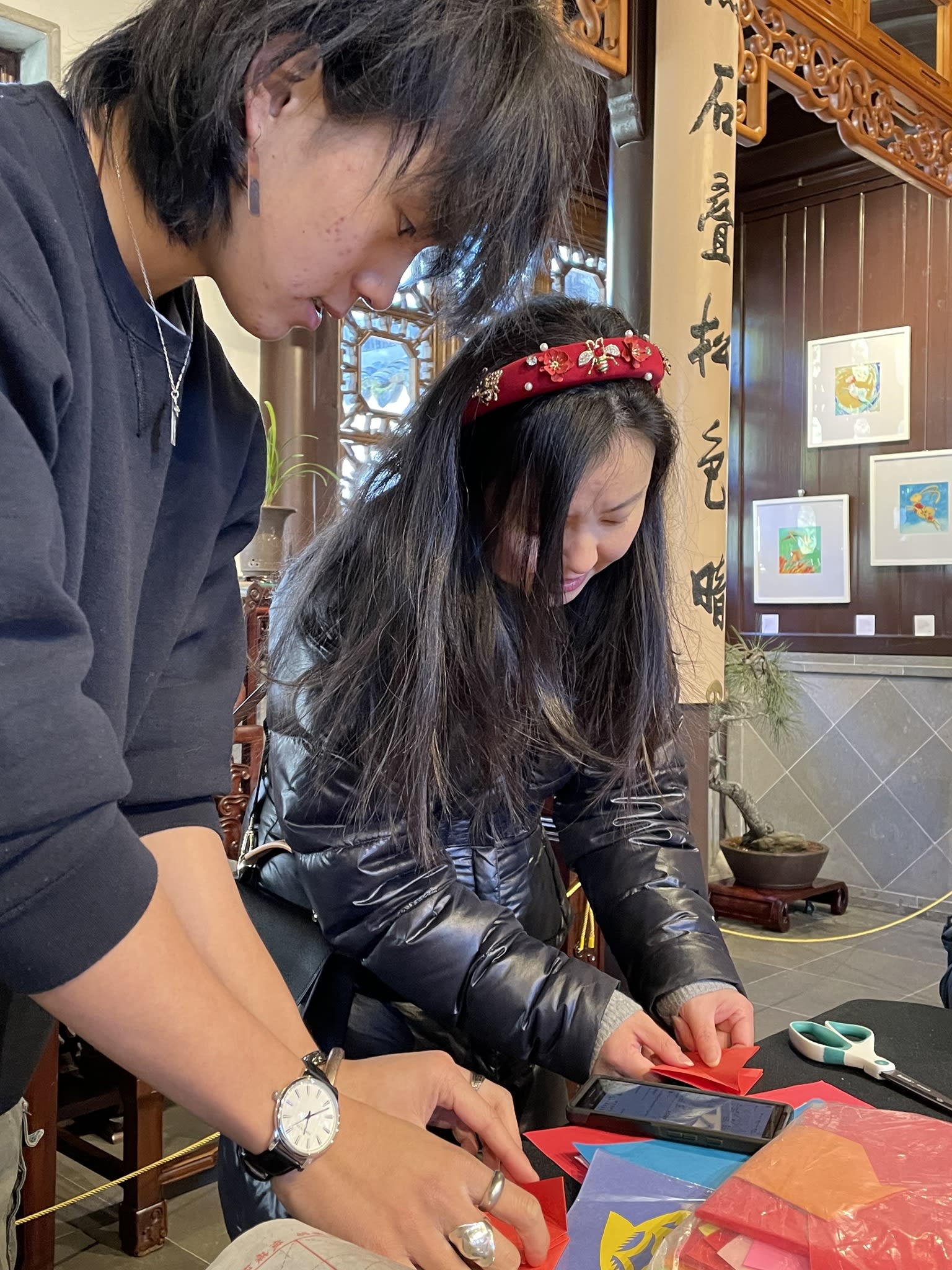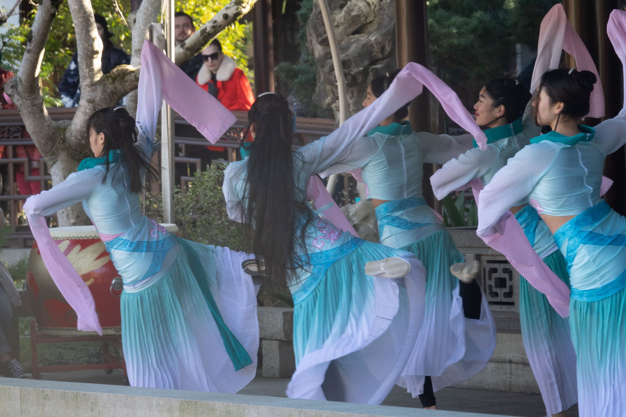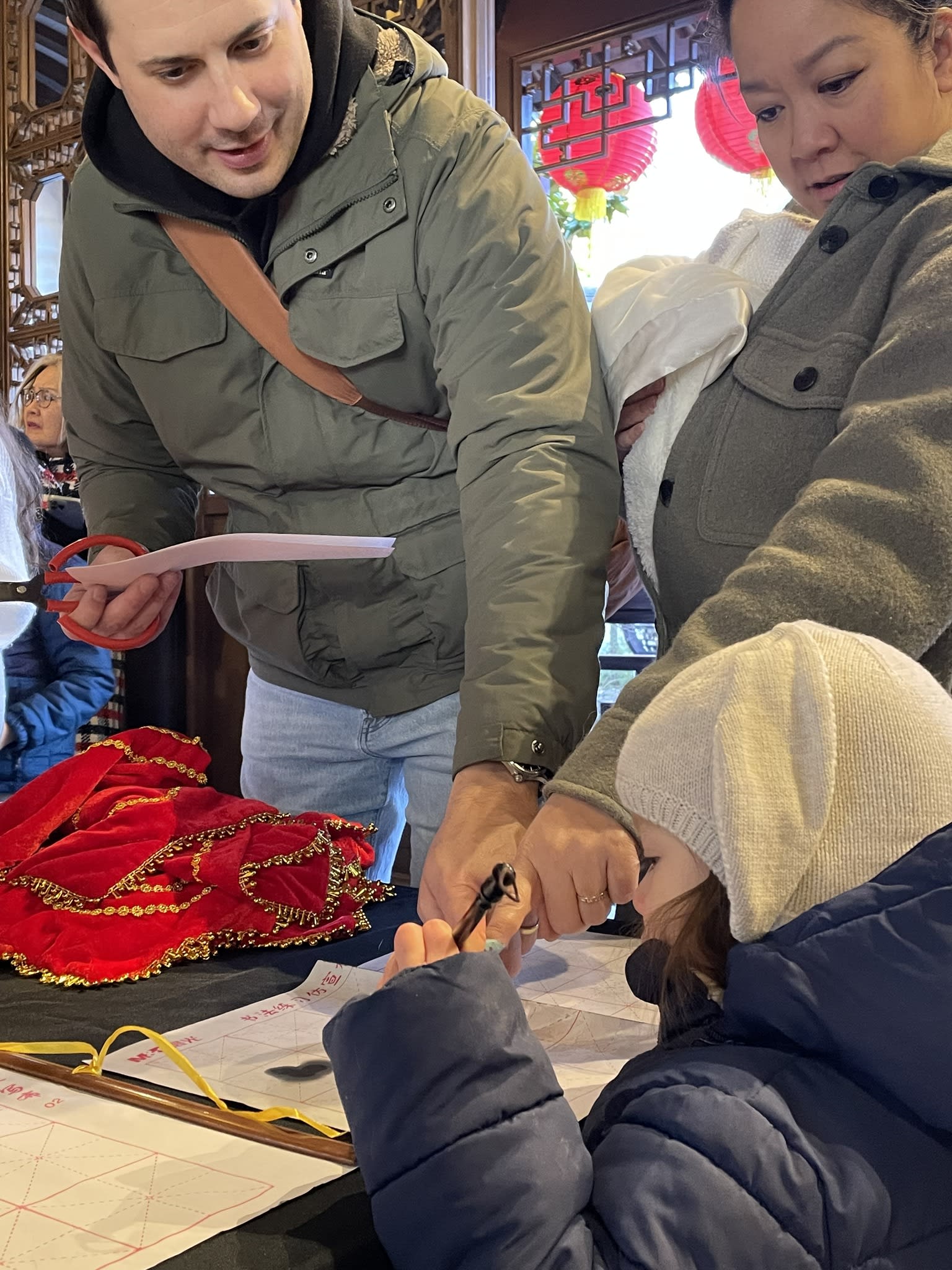 The volunteers have been helping out each of eight lantern viewing evenings at Lan Su Chinese Garden. On Sunday, we also hosted a crafts table, and both Mulan Drum Team and Jade Dance Team performed very enthusiastically even though it was freezing cold outside. They didn’t compromise on one movement and even a facial expression. They gave a full experience of our culture to the audience.