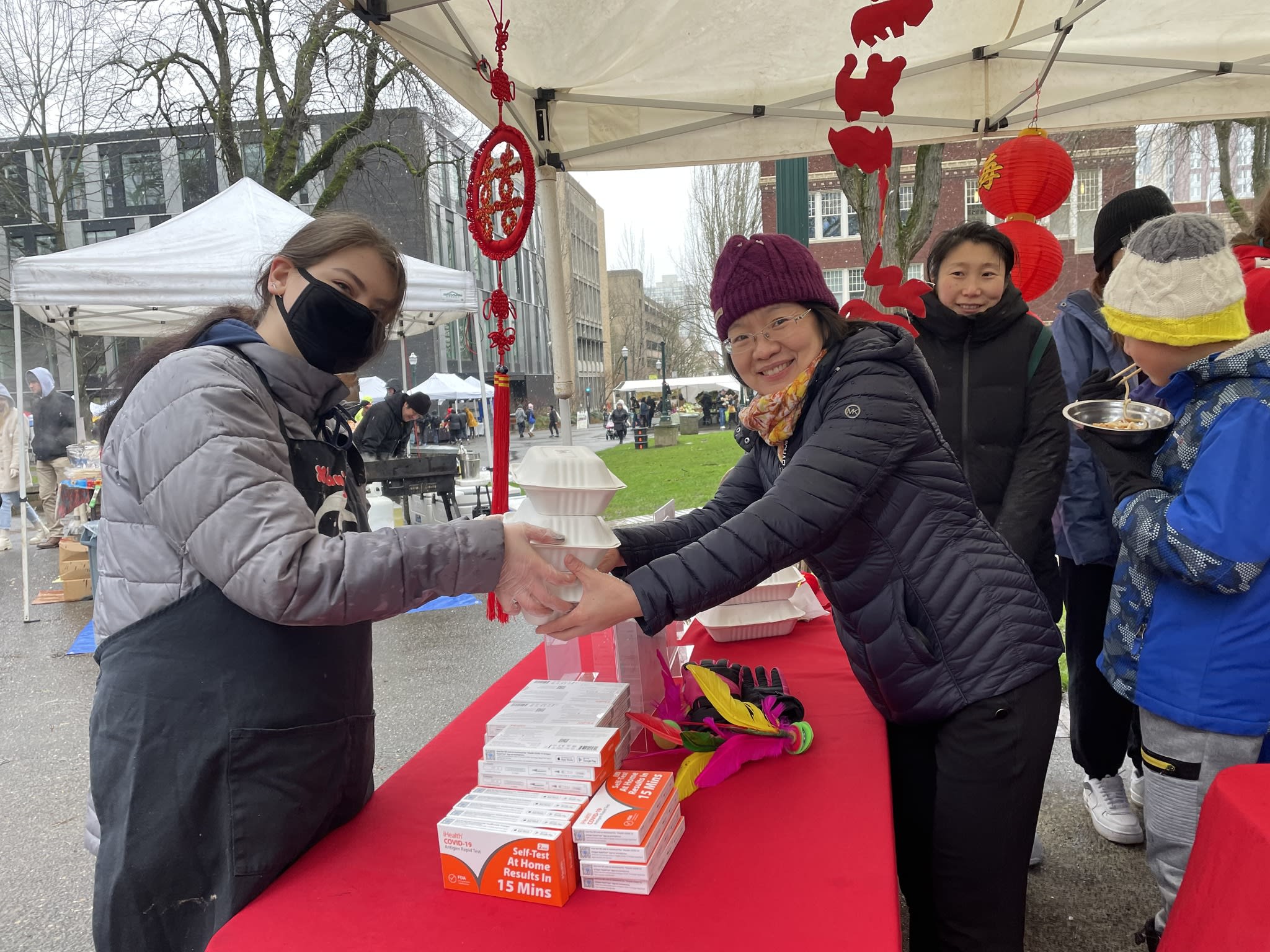 上周六,波特兰农贸市场迎来了来自美国华人社区的志愿者在那里庆祝中国新年。这是我们的志愿者将在农历新年期间参加的众多社区活动之一。非常感谢市场上的两个华人食品摊位Money Bowl和Great Tang,她们为志愿者们提供了美味的食物。那天早上真的很冷。热腾腾的饺子和面条给志愿者们带来了莫大的安慰。