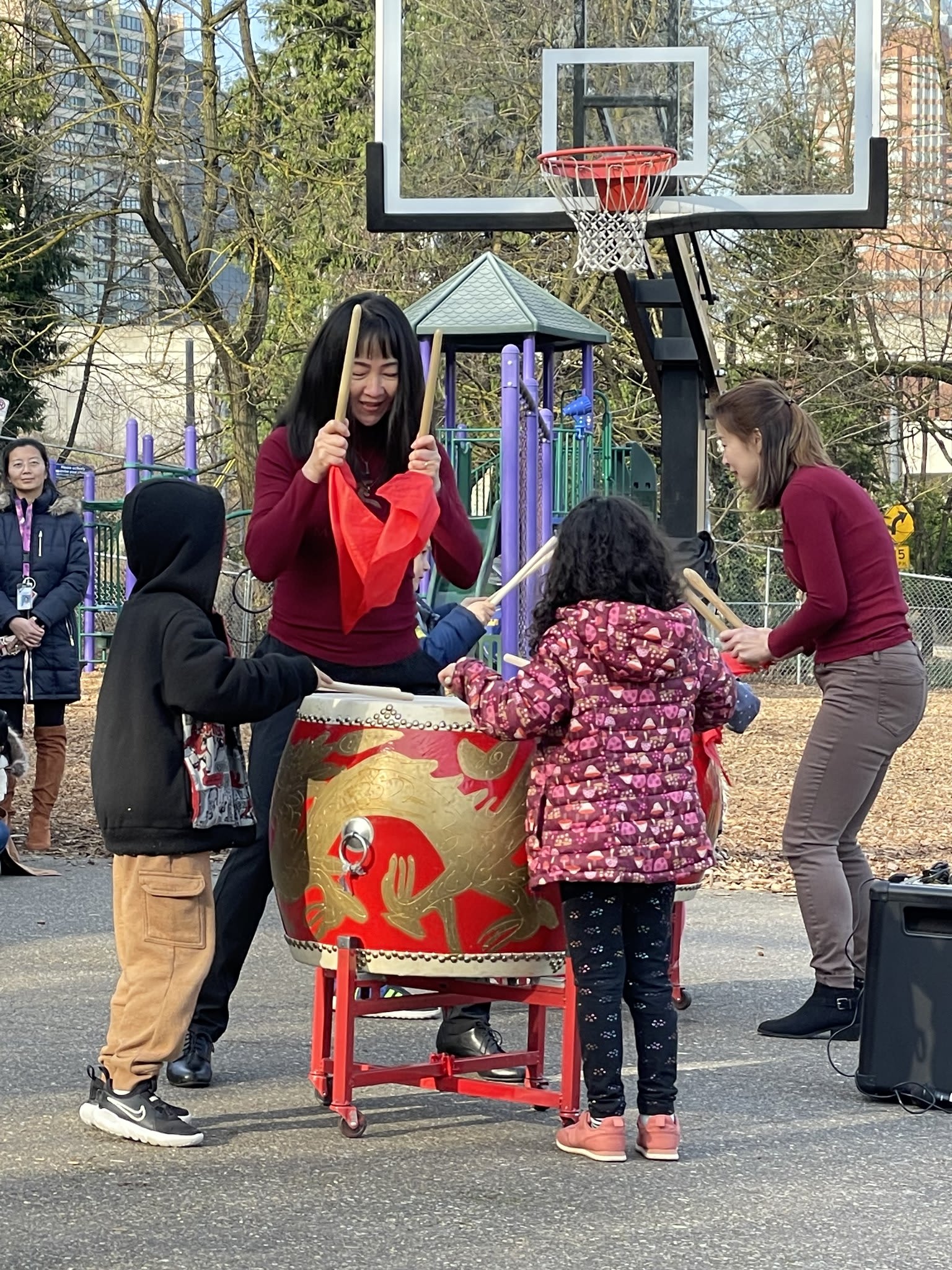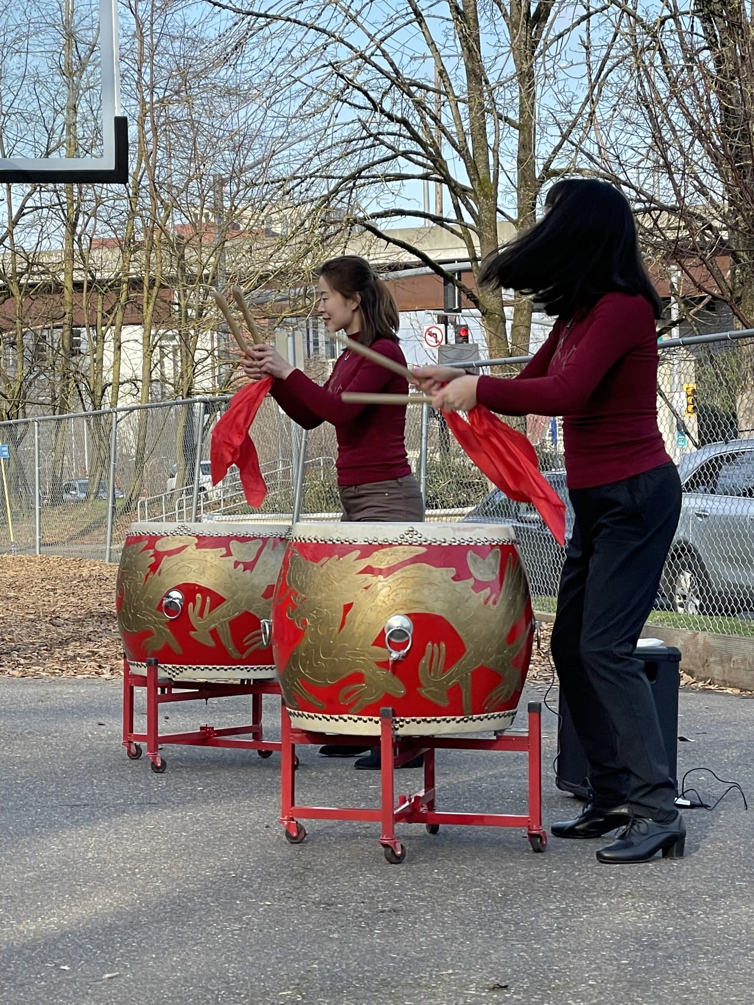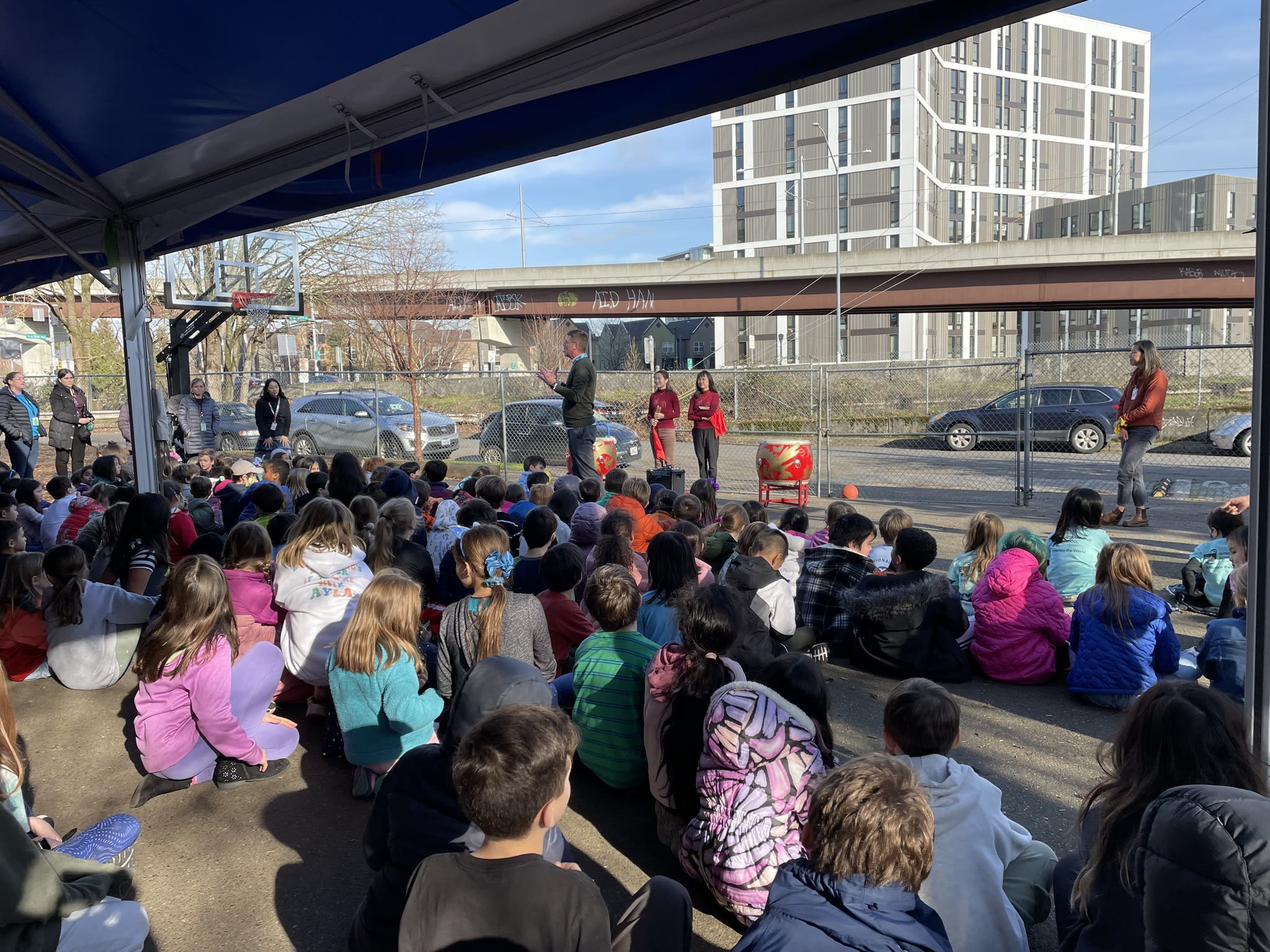 我们支持的农历新年庆祝活动有一半是学校。今天木兰鼓队与波特兰国际学校的学生们度过了愉快的一小段时间,尤其是邀请孩子们上来和队员们一起打鼓,令人惊奇的是几乎所有的学生都举起了手,最后24个小朋友幸运获得了机会。