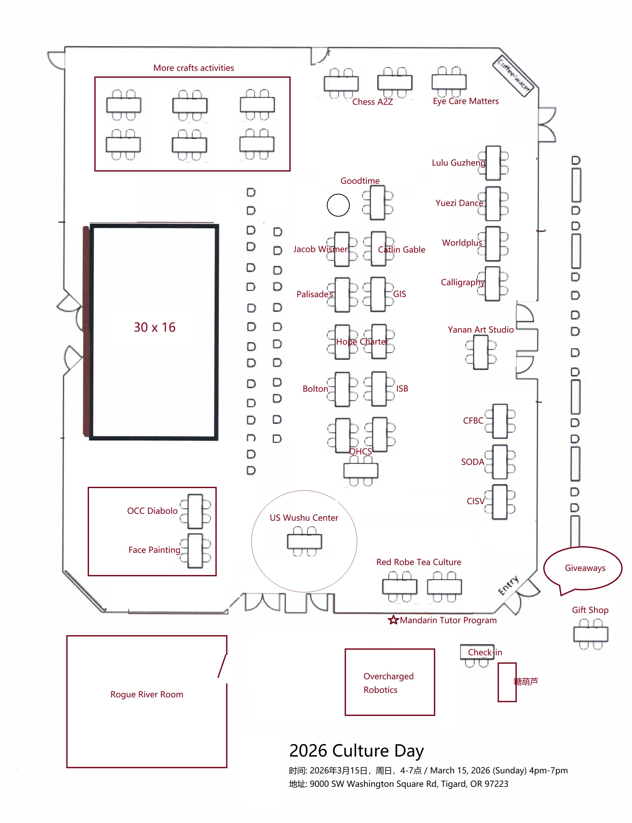 时间: 2026年3月15日,周日,4-7点 / March 15, 2026 (Sunday) 4pm-7pm