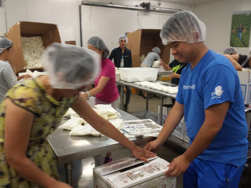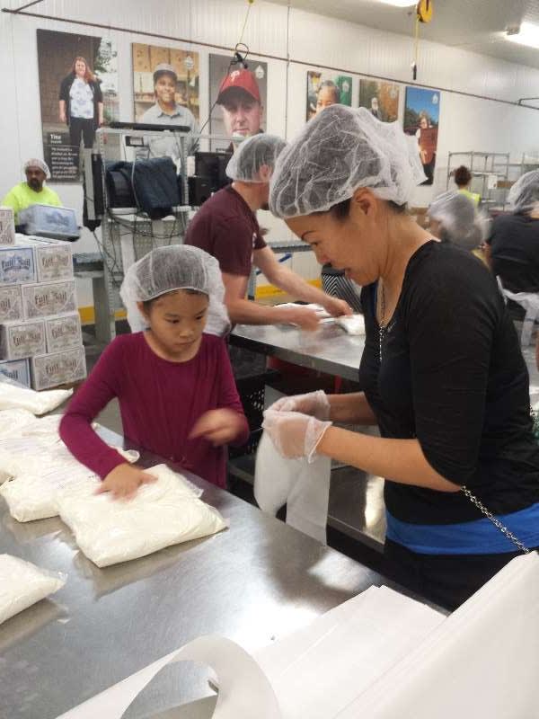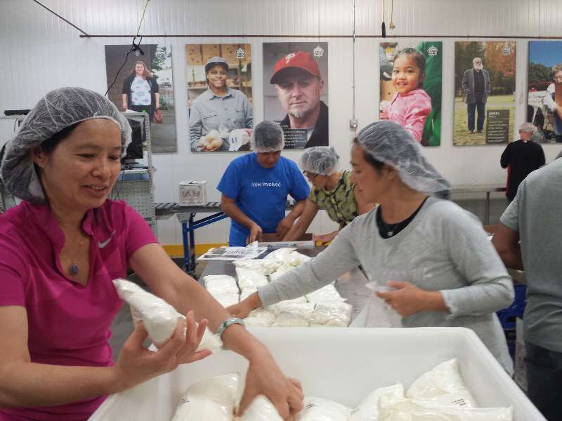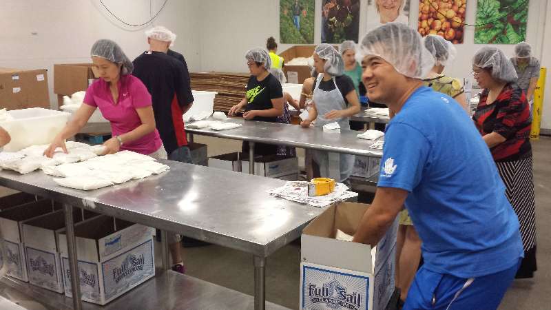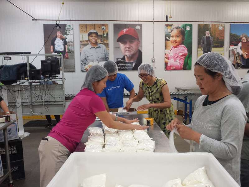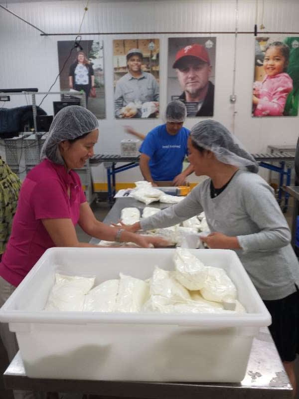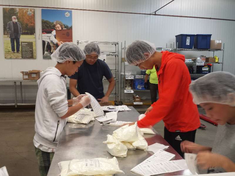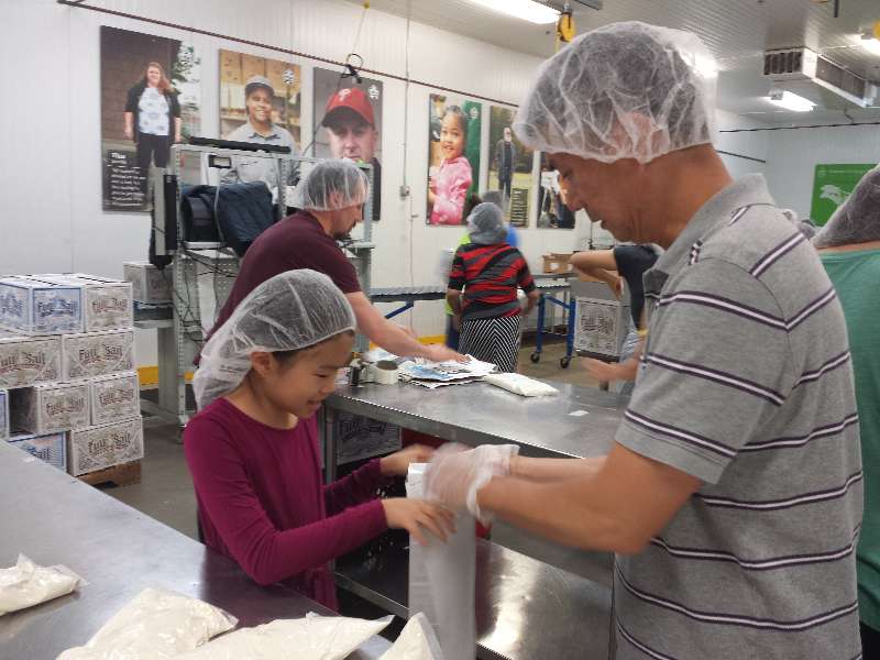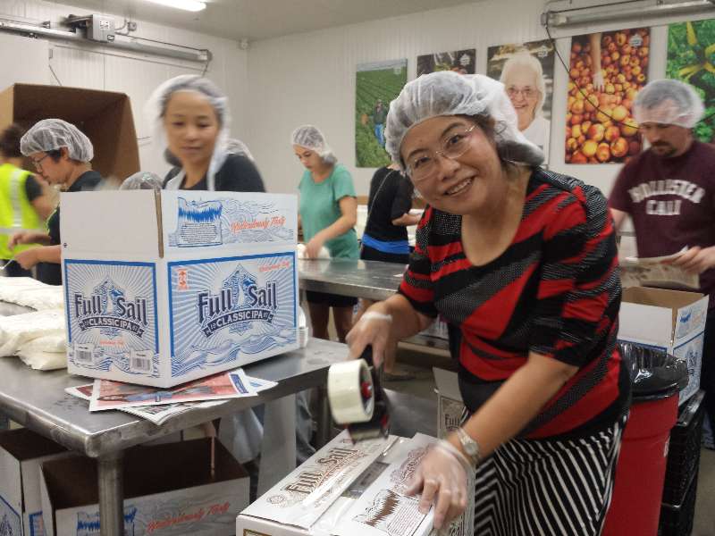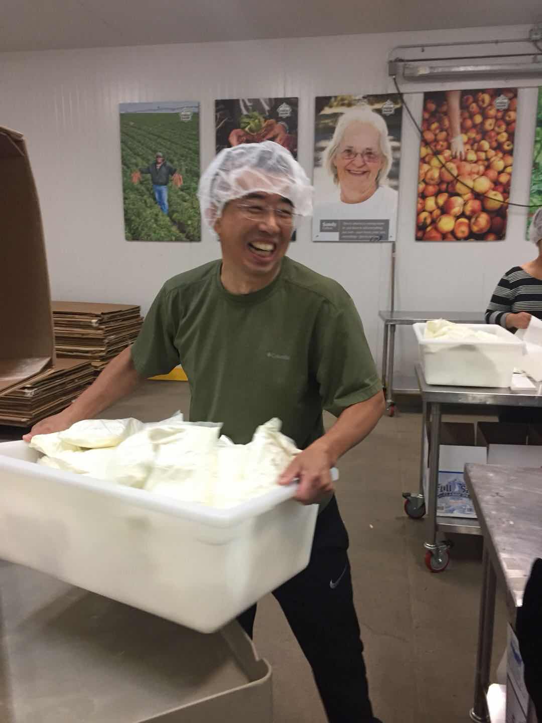 这个夏天真的有些个酷热,这个周末天似乎给大家一个外出的好机会,近二十来位社区成员如约来到了Food Bank,参加每月例行的集体义工活动。今天的任务是把奶粉袋子装到纸箱里面,不知道为什么似乎今天大家动作好快(后来群友指出实际上每次都很快),近一万袋奶粉在两个小时内分包完毕。摞起来的纸箱在外屋堆成了山。