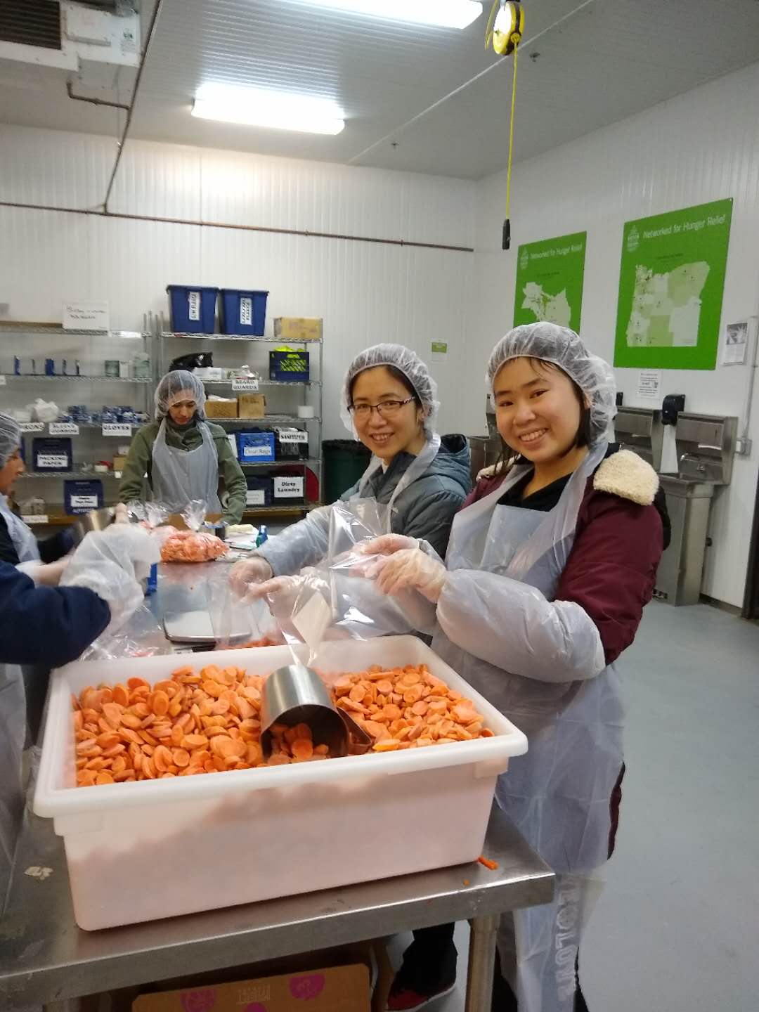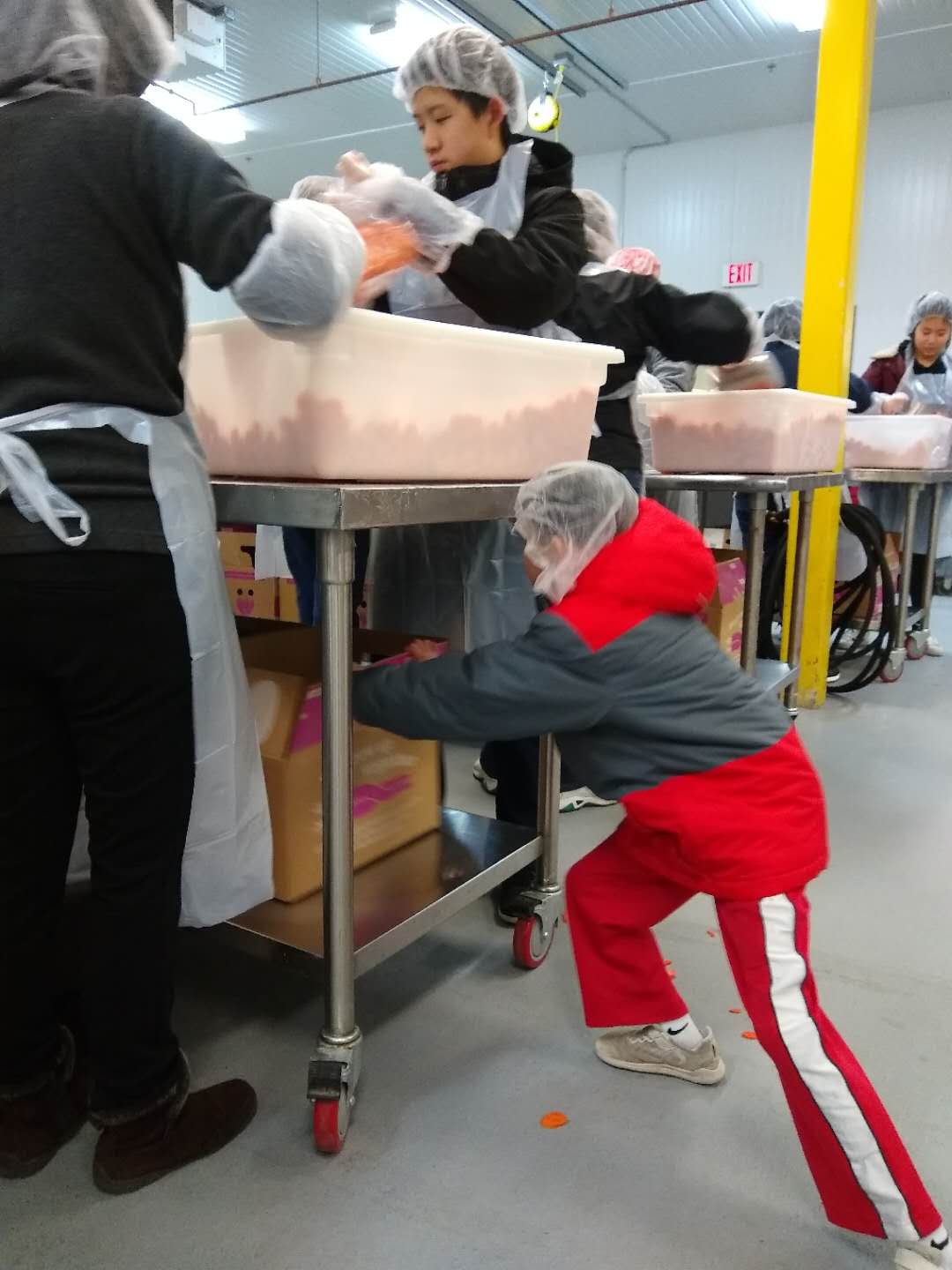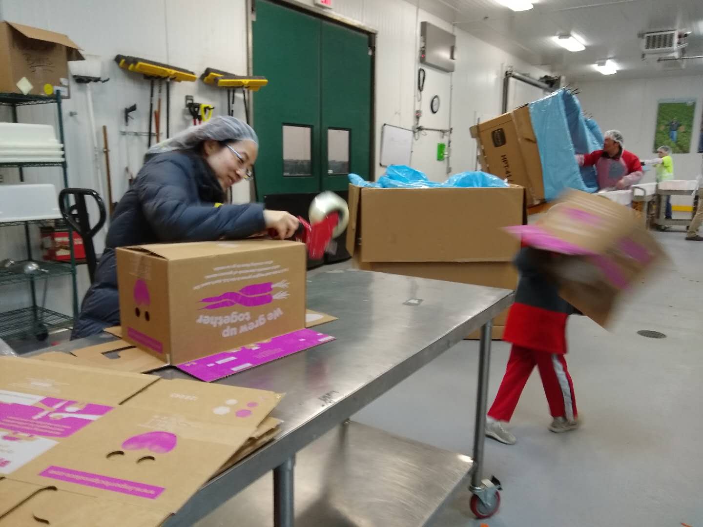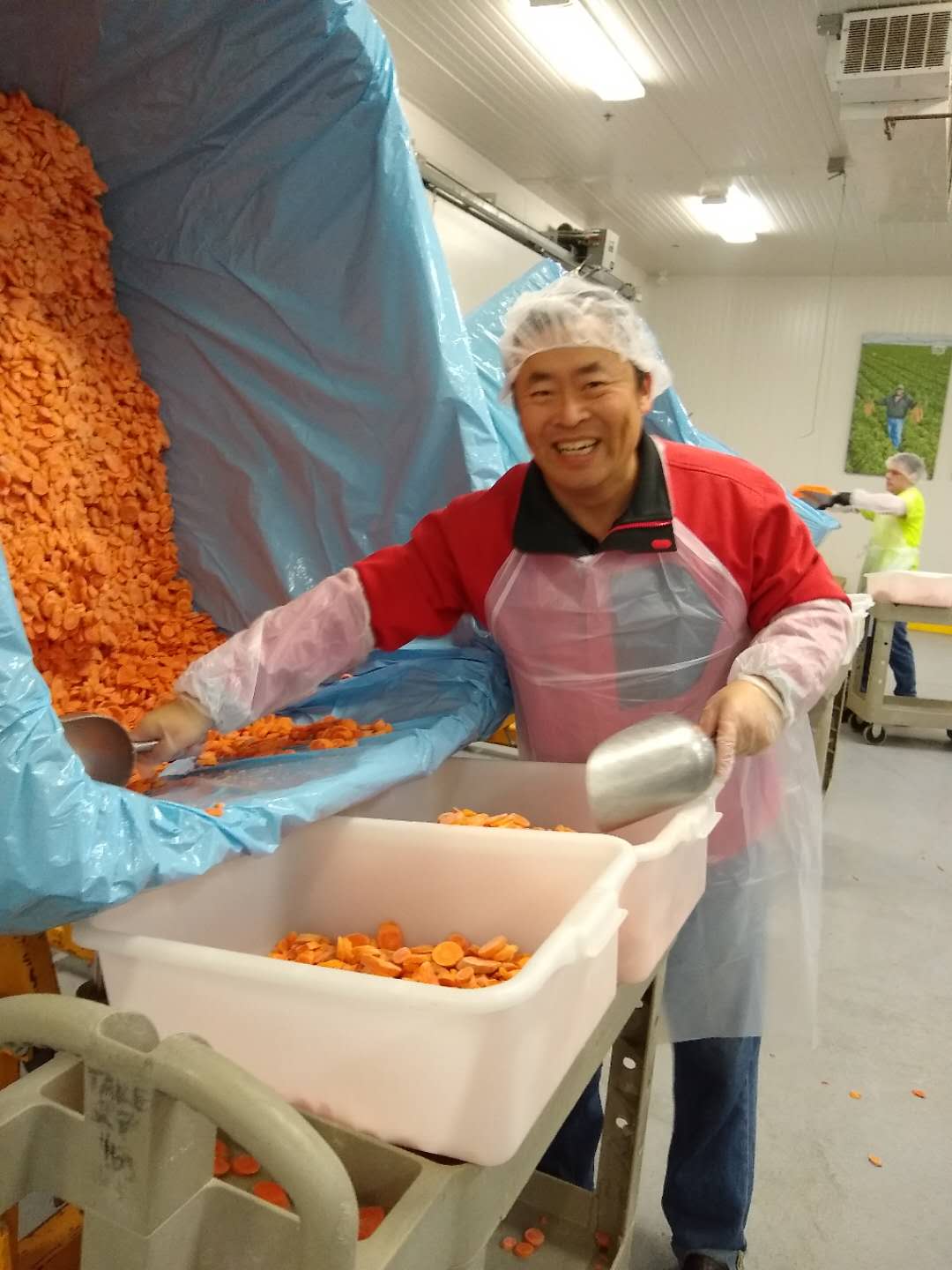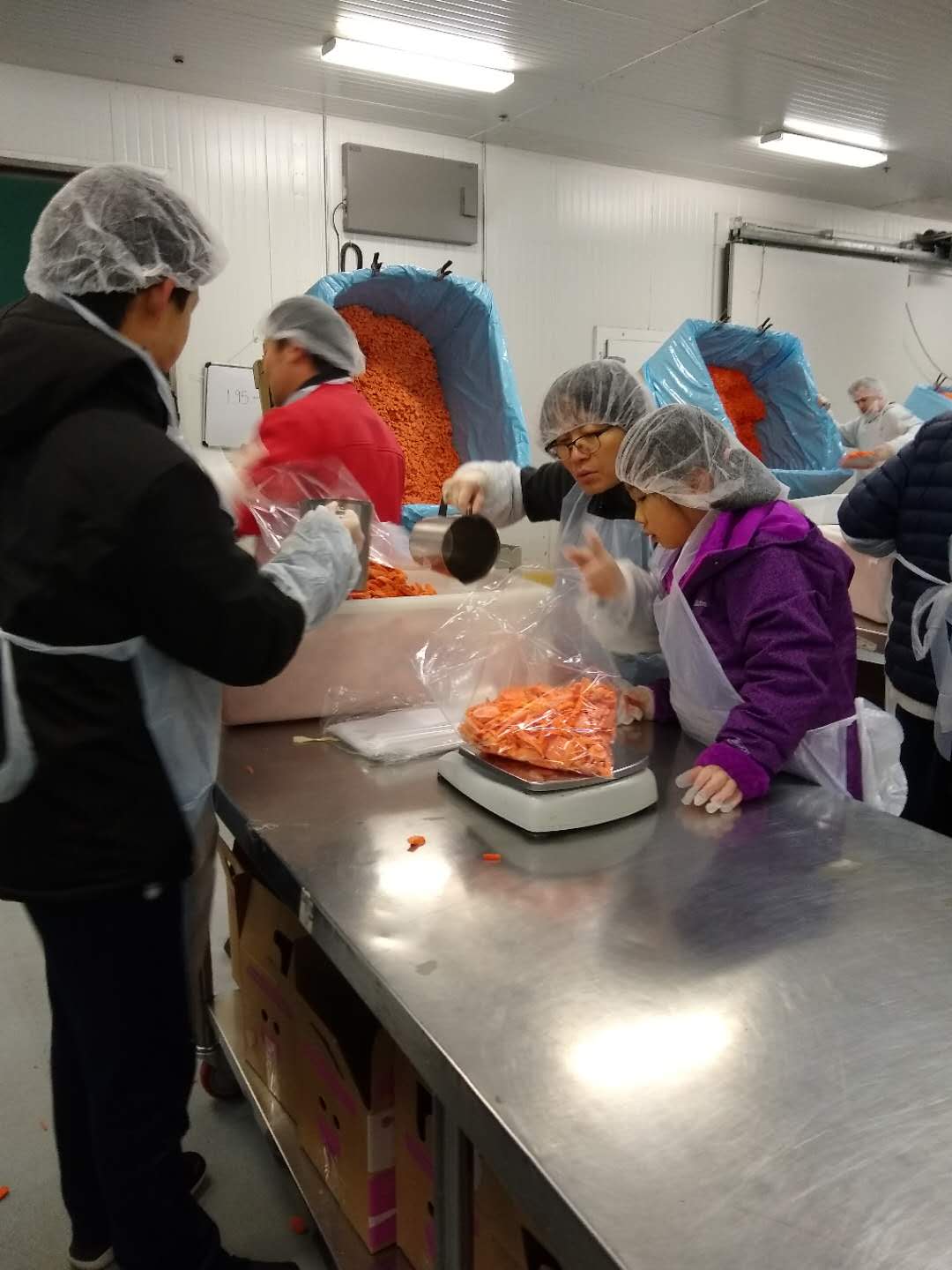 似乎过了好一段时间,今天又能参加在Food Bank的义工活动,和众多群友度过了一个非常愉快的下午。其中有在这里做义工的”常客”,也有头一次参加的。这次参加的有三个小不点,他们干起活来好个麻利,一个负责送纸箱子,一个负责把分好的小袋胡萝卜放进纸箱,一个则是站在小凳子上和大人们一起装袋子。他们都好开心,有着一股子非我莫属的精神。好样子的[强]