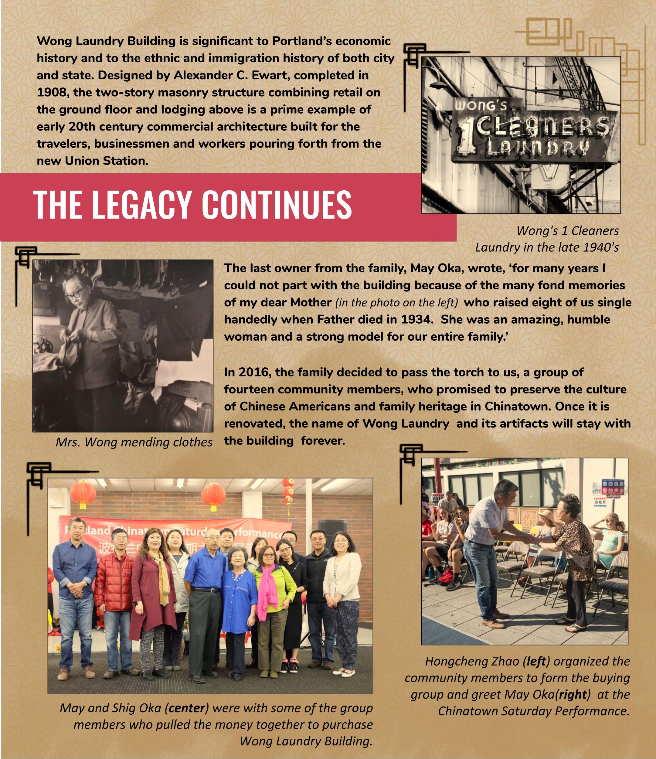 上个周五终于把61’x52’的大幅poster放置在第一扇窗户上,这是位于中国城的Wong Laundry building第一次向世人展示她的Legacy,后续还有更多的内容,包括Wong family的家史,和我们在中国城近4年开展的活动。全部完成后,作为宣传华人移民史的展览橱窗,将成为中国城的一景。下次大家有机会去中国城的时候,一定在那里驻足。