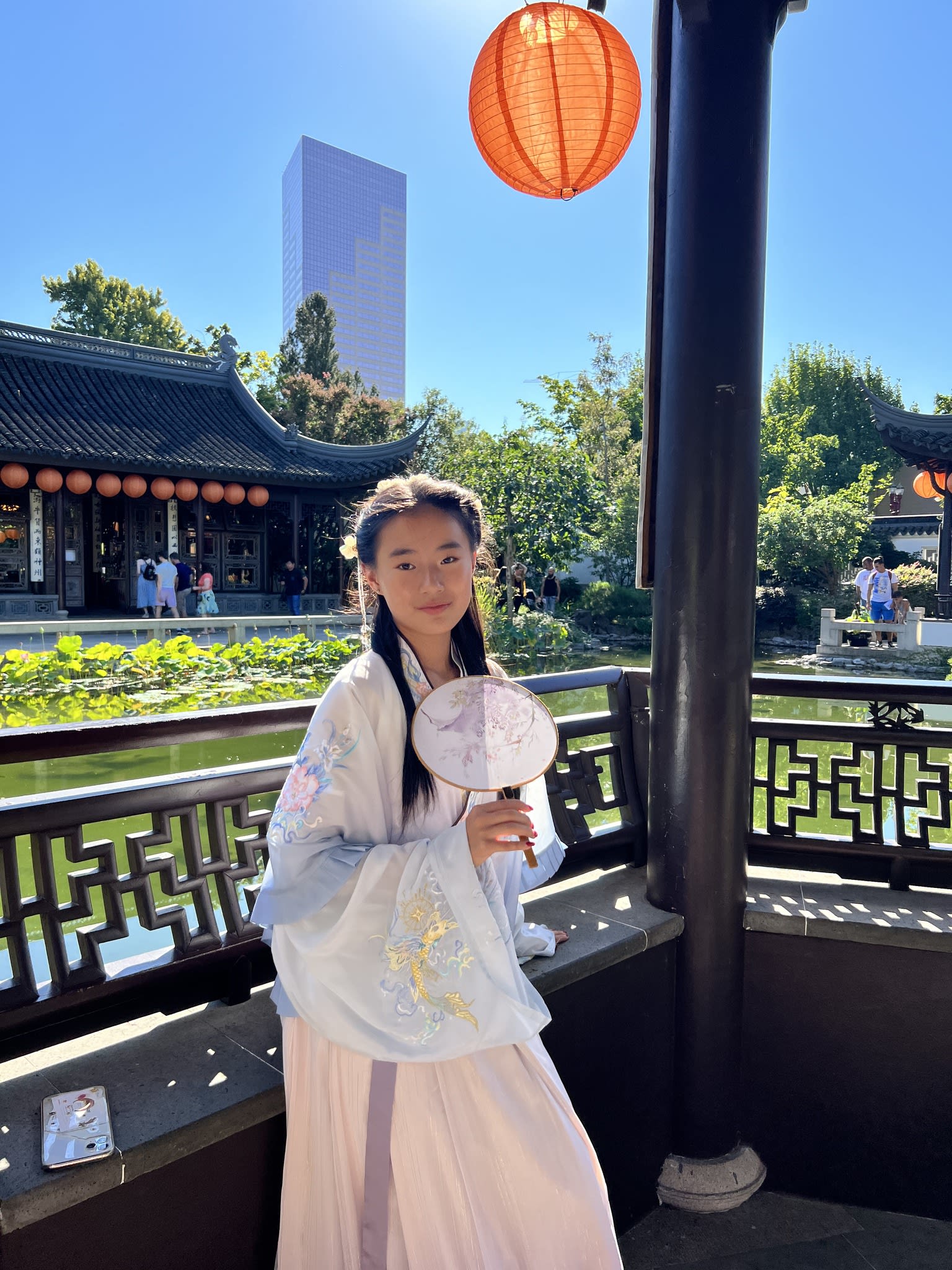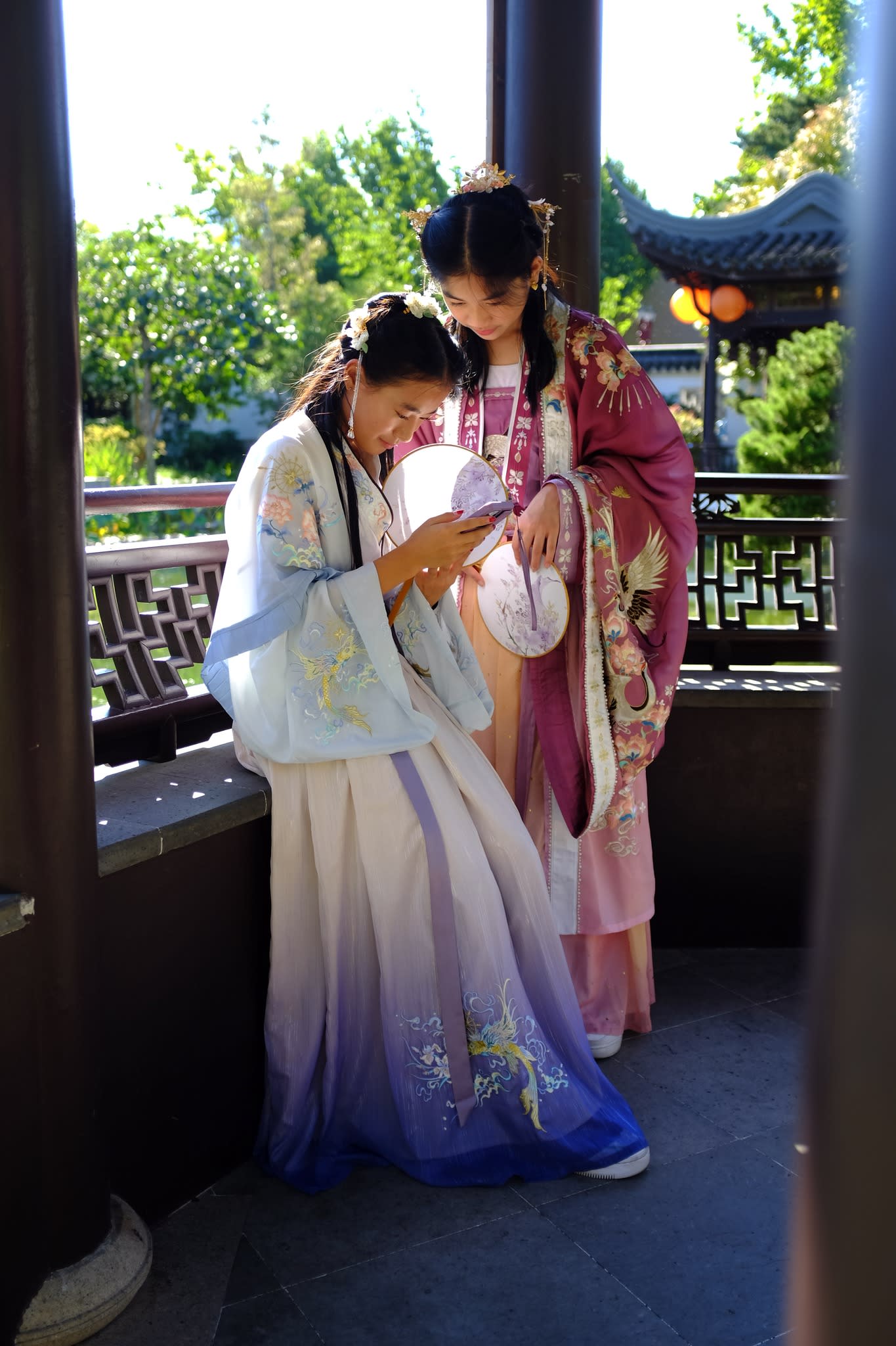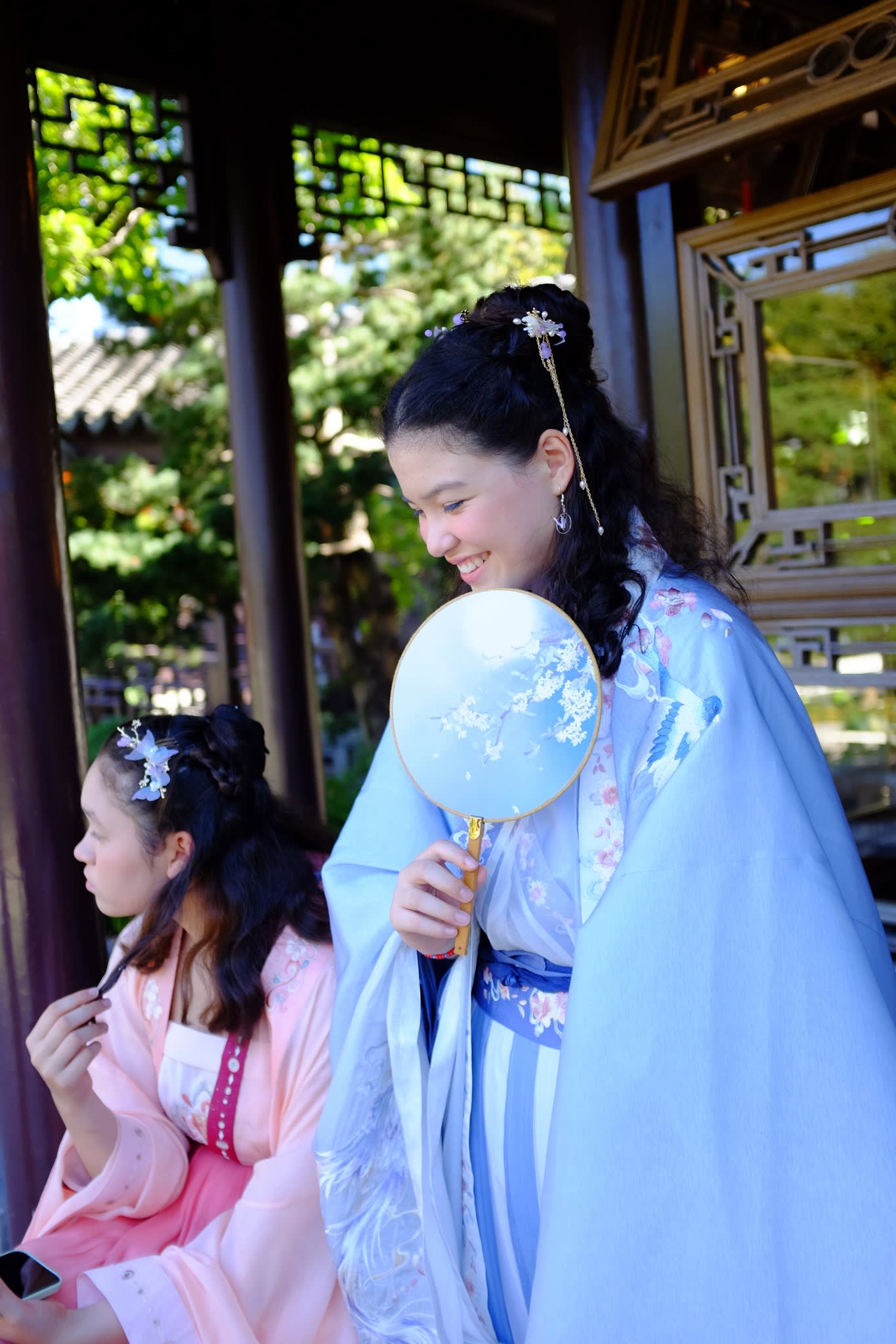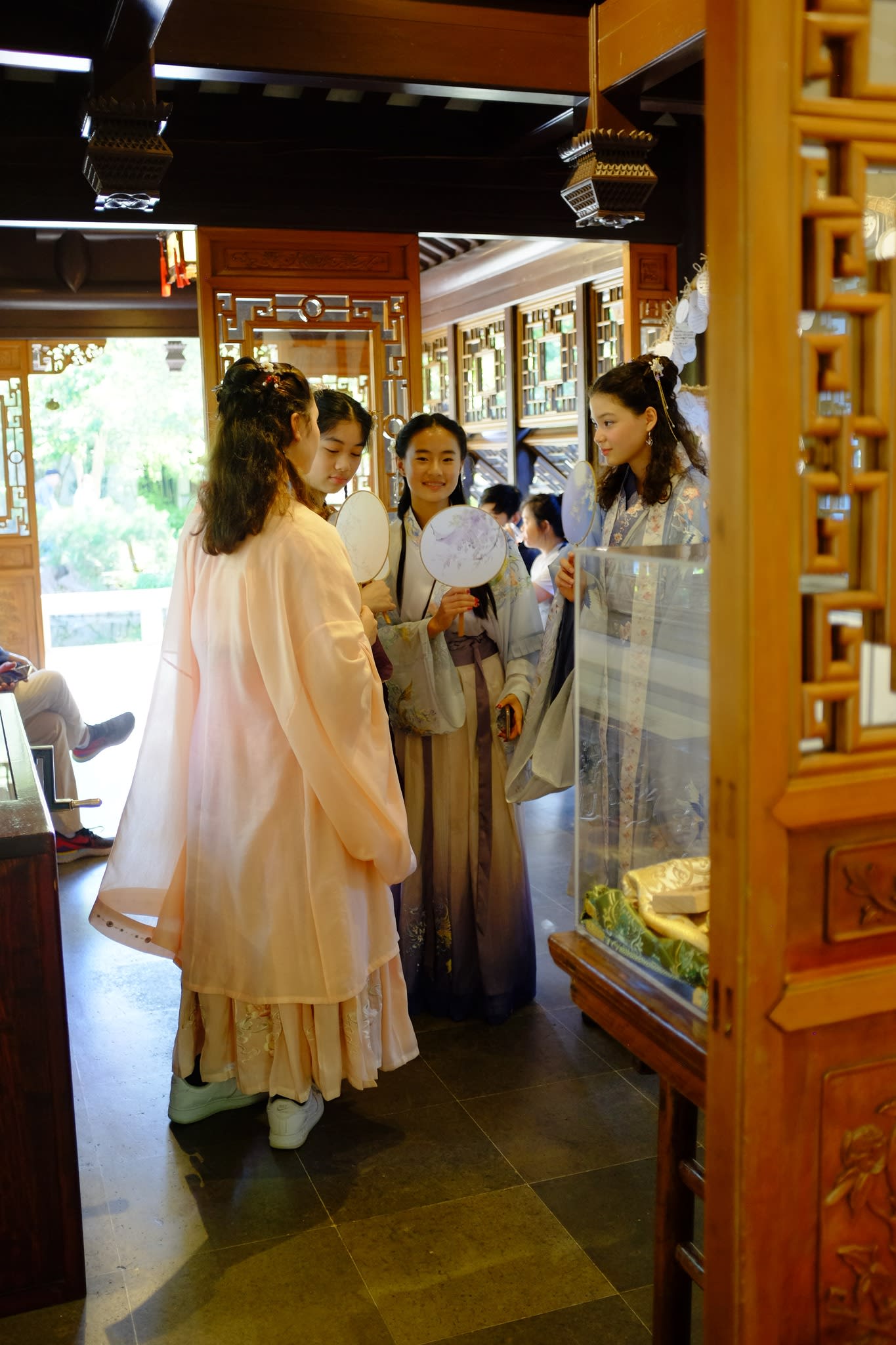 这是我们一直期待的,由身着汉服的女孩子们们展示中国传统服饰之美的WOW时刻。周日下午,青少年舞蹈队的四名高中生来到了兰苏园,尽情享受传统园林带给她们的意境。同时,她们的出现,也让花园穿越时空,似乎回到一千年前的朝代。