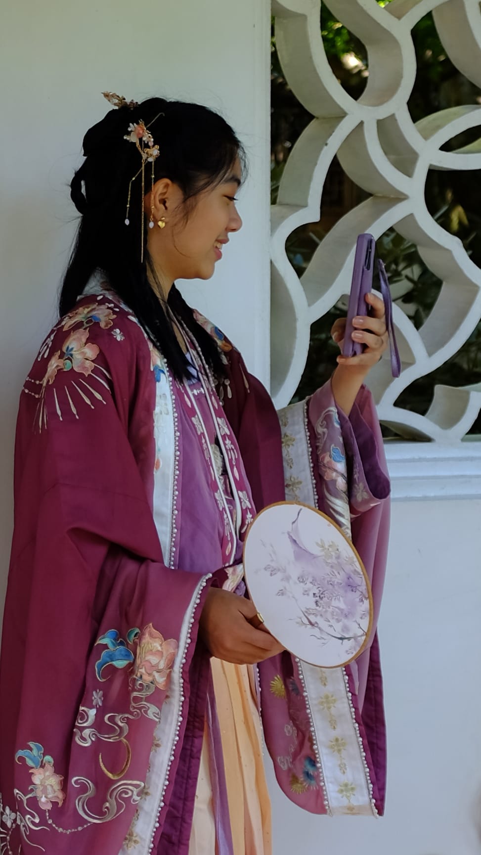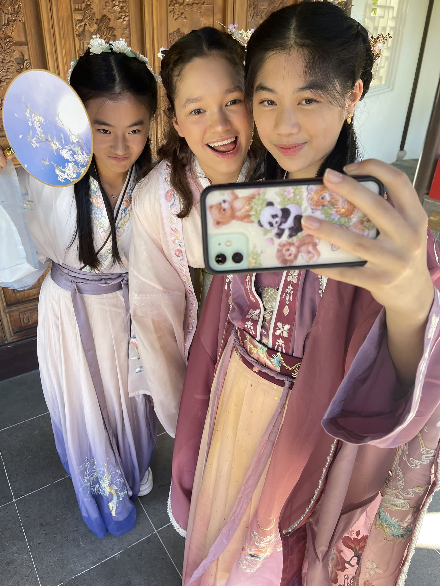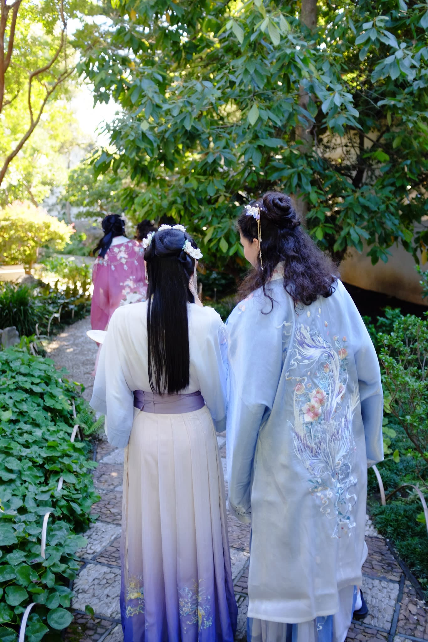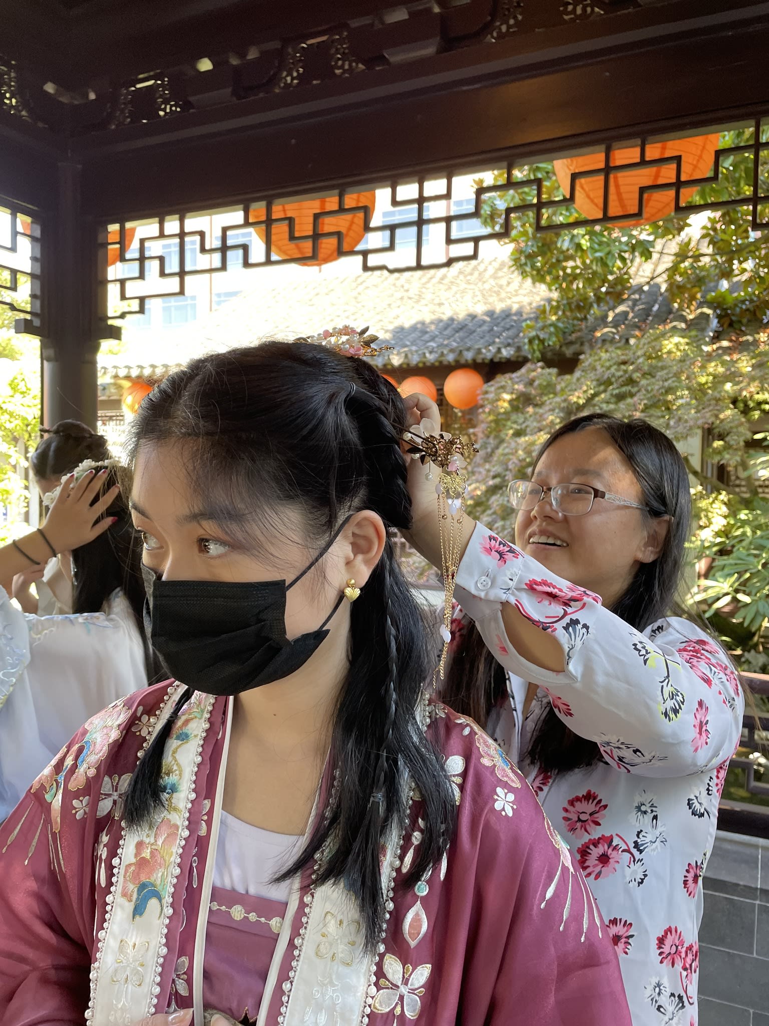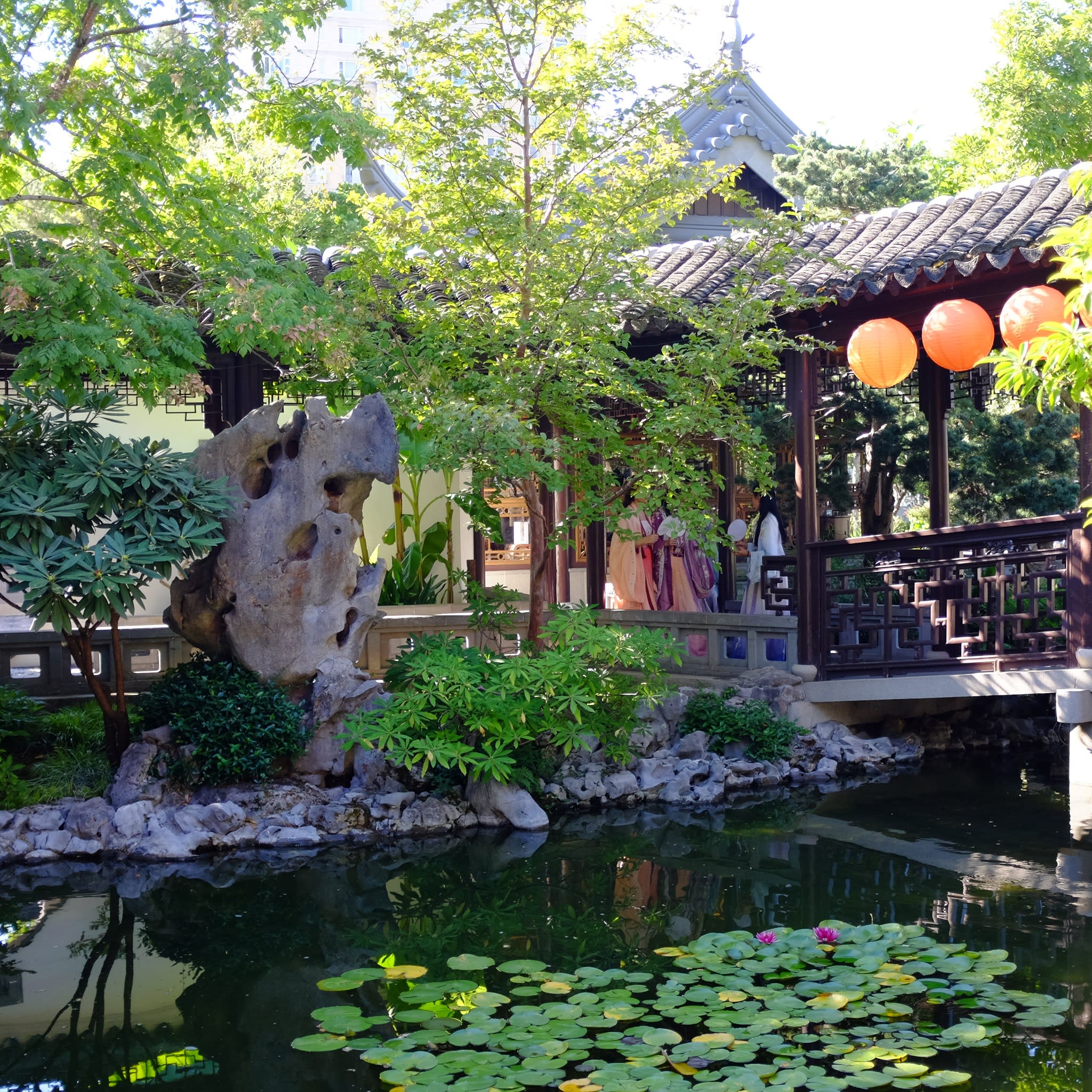 这是我们一直期待的,由身着汉服的女孩子们们展示中国传统服饰之美的WOW时刻。周日下午,青少年舞蹈队的四名高中生来到了兰苏园,尽情享受传统园林带给她们的意境。同时,她们的出现,也让花园穿越时空,似乎回到一千年前的朝代。
