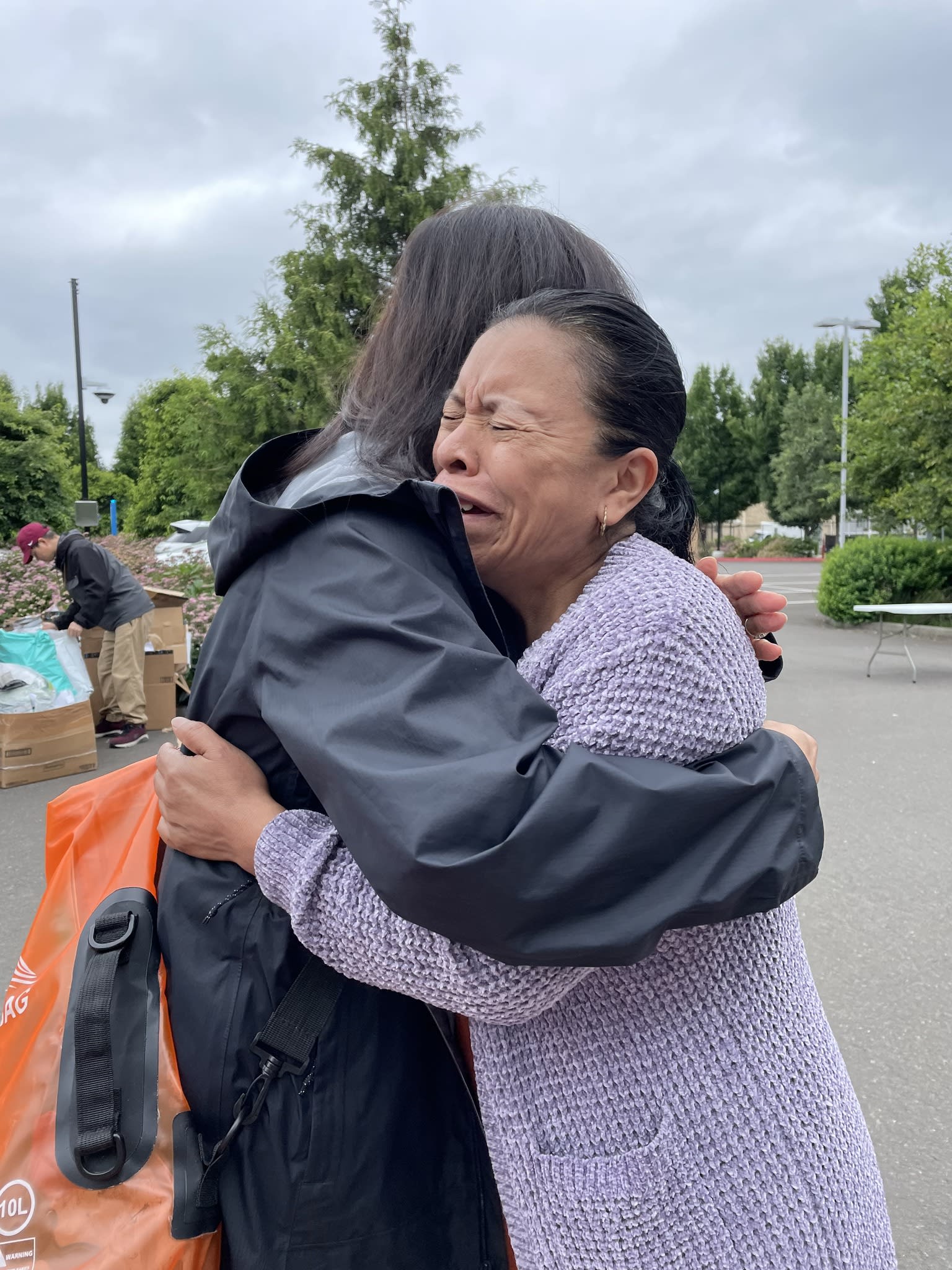 昨天的活动中发生了一件让我们深感温馨的事件。一位母亲不慎丢失了她的包,包内有手机、车钥匙,最重要的是她向表弟借来的600美元现金,用于支付房租。丢失了所有这些让她感到绝望,我们在整个过程中都与她同在。我们的一位志愿者不知疲倦地拨打她的手机,最终与一个无意中将她的包当作捐赠品拿走的人取得联系。母亲通过自己的女儿与持有包的女士交谈的感人时刻让每个人都热泪盈眶。OCC向母亲保证,我们将送给她一张礼品卡,以补偿她所经历的一切,同时也给那位归还包裹的女士一张礼品卡,以示感谢。