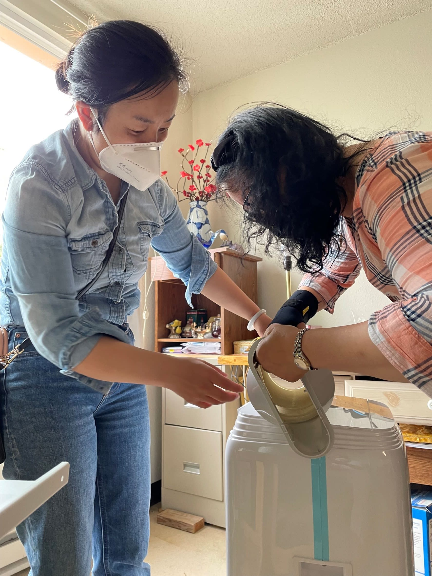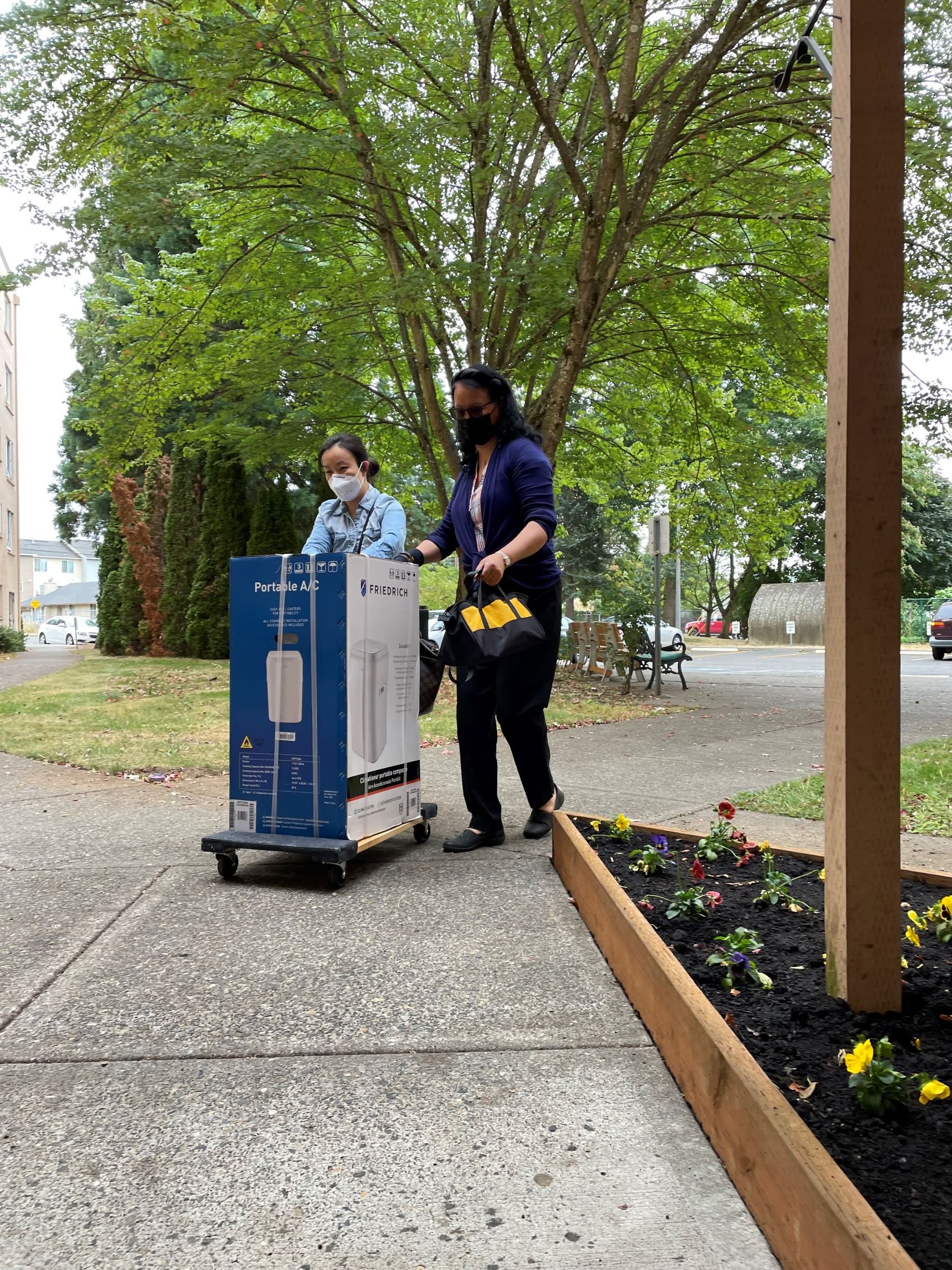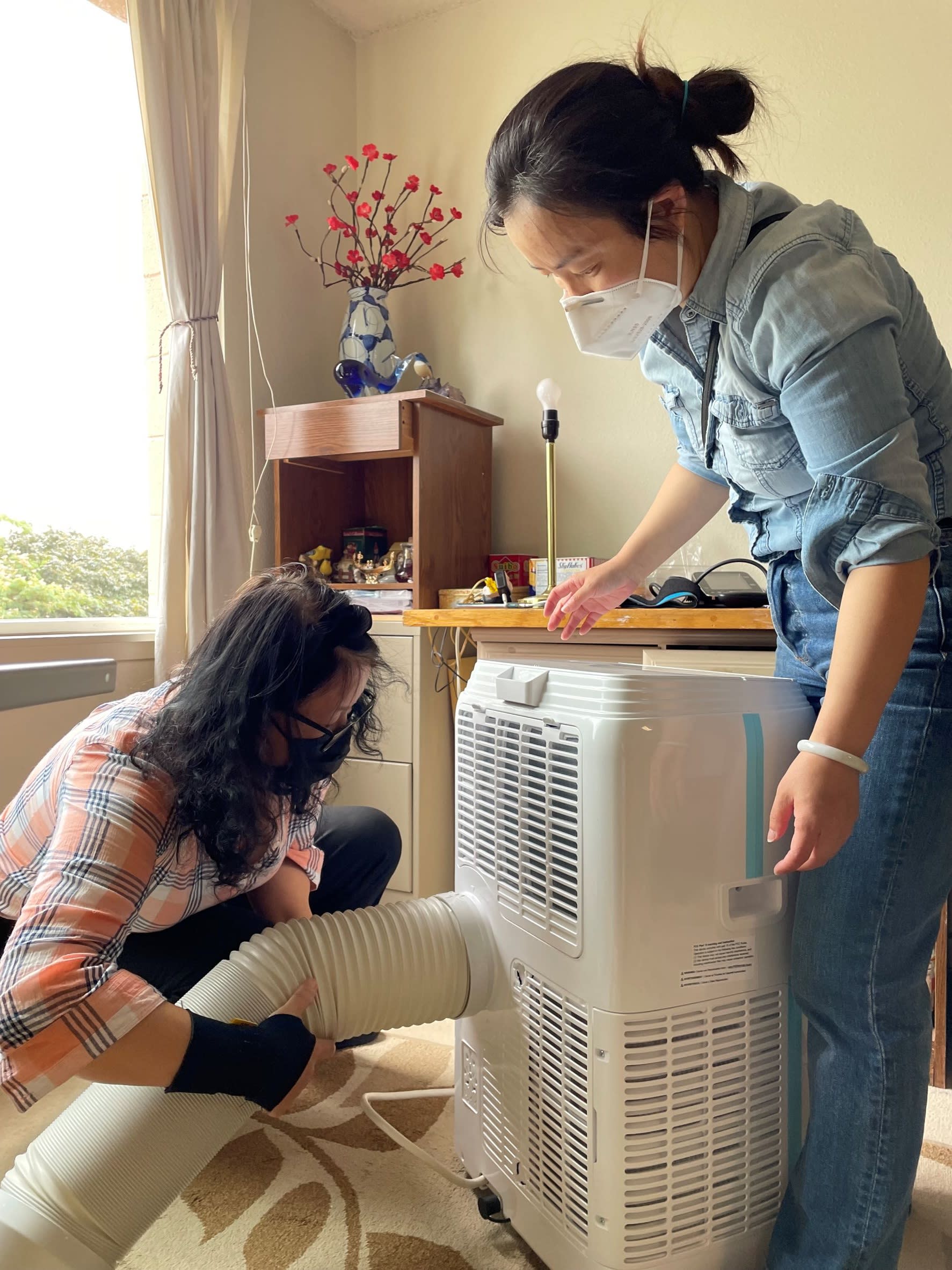 陳曉慧和Maggie决定挑战装空调只能是男义工做的活儿的说法,当看见SE安装进度有些缓慢,主动要求试一把。今天上午两人先后拜访了两家老人,头一家决定留到明年天热了再安装,第二家是在SE Lafayette街上老人公寓。两人从卸车搬进公寓到安装开机,完全应付自如,绝不亚于任何男handy。老人家们都非常的热情,公寓有老人看到了也想申请,其中一位老人讲台山话,正好碰上了她们俩。后来告诉我,老人也没有微信,想必很多服务这样的老人很难得到消息。所以,当场我们就决定建一个社区长者公益群,欢迎62岁以上的长者加入进来,除非是想做义工服务长者,其他群友一律谢绝,包括长者的子女。
