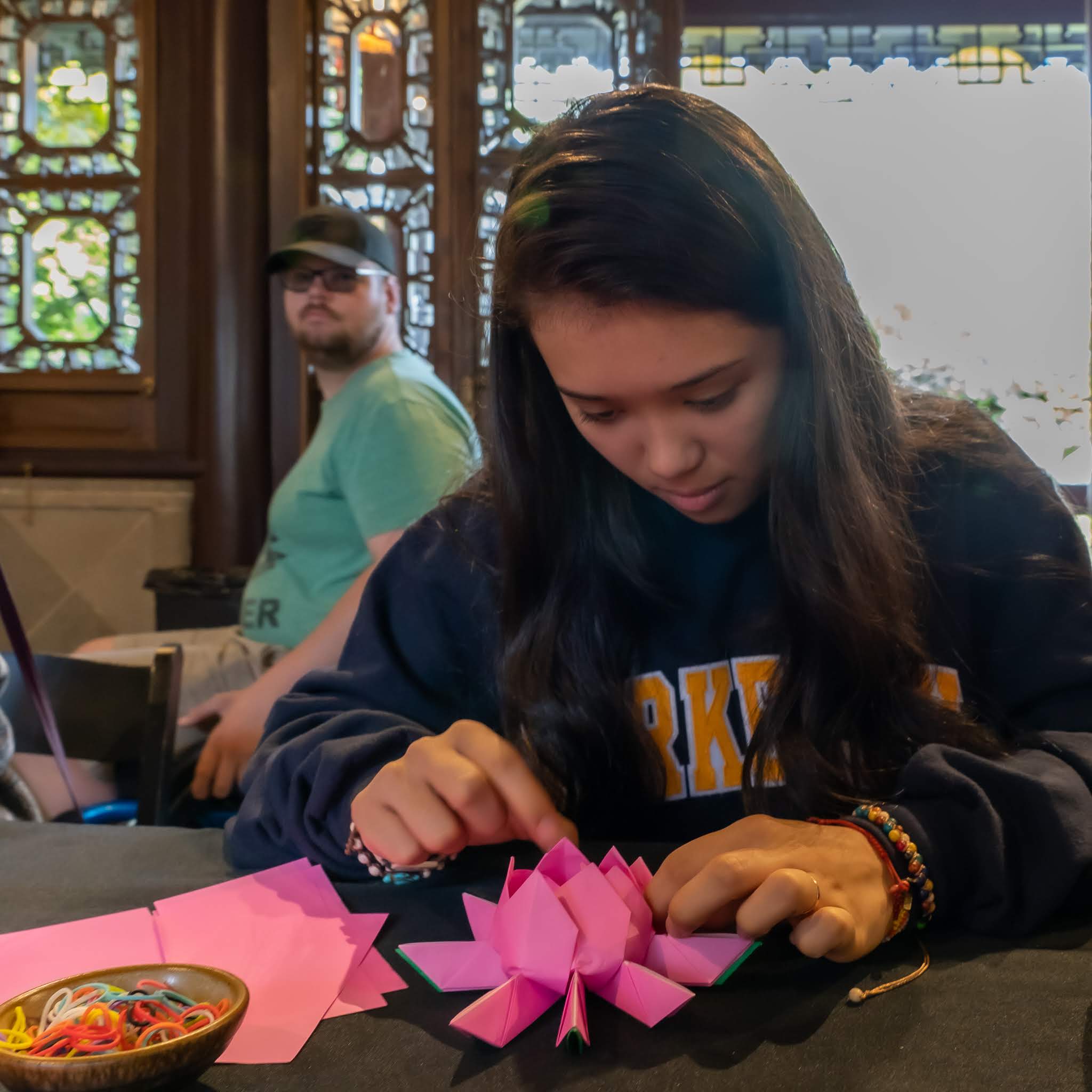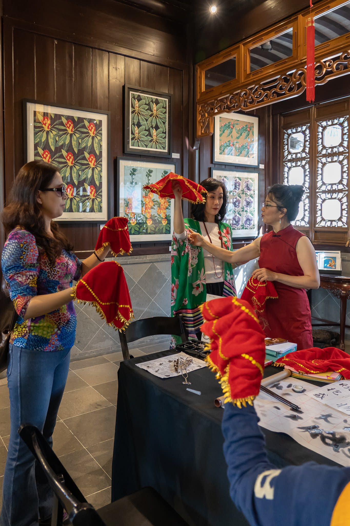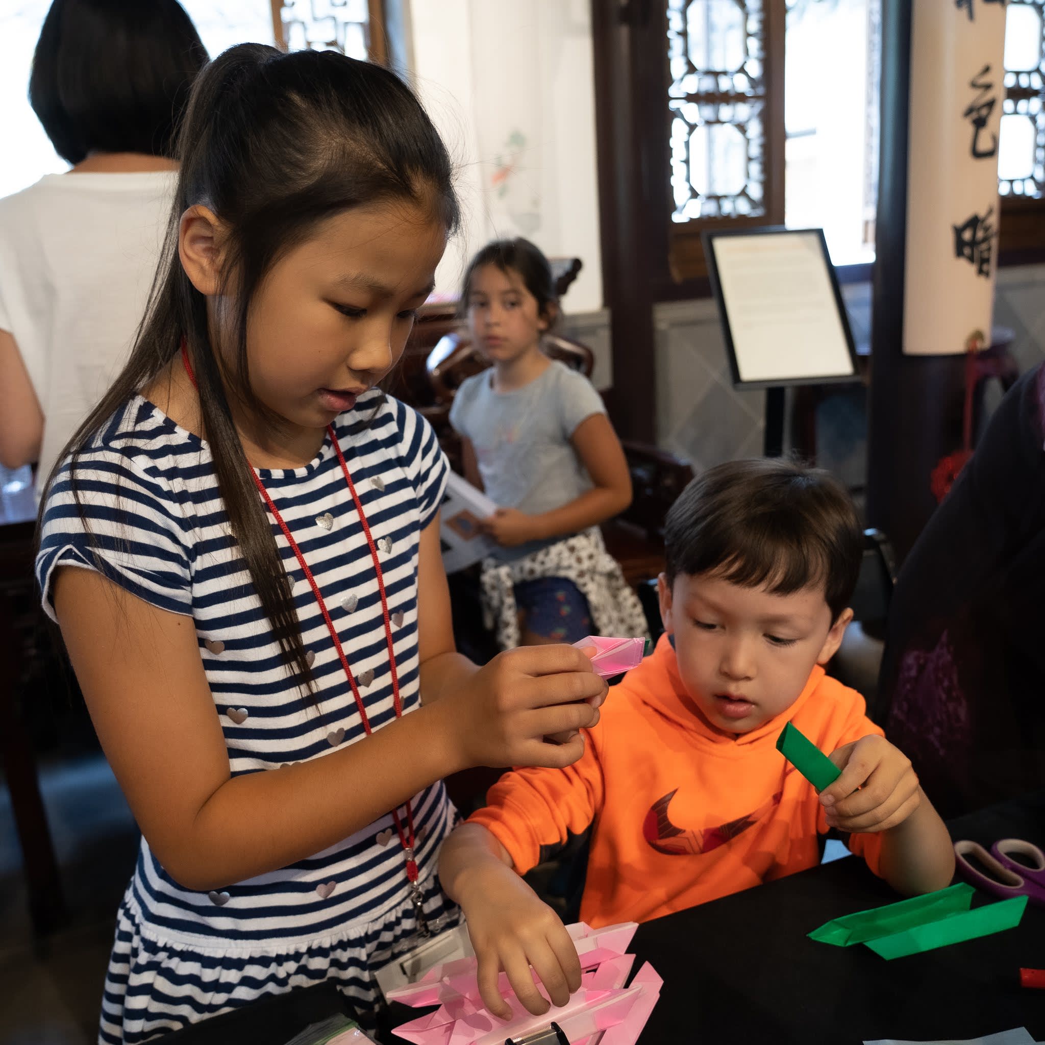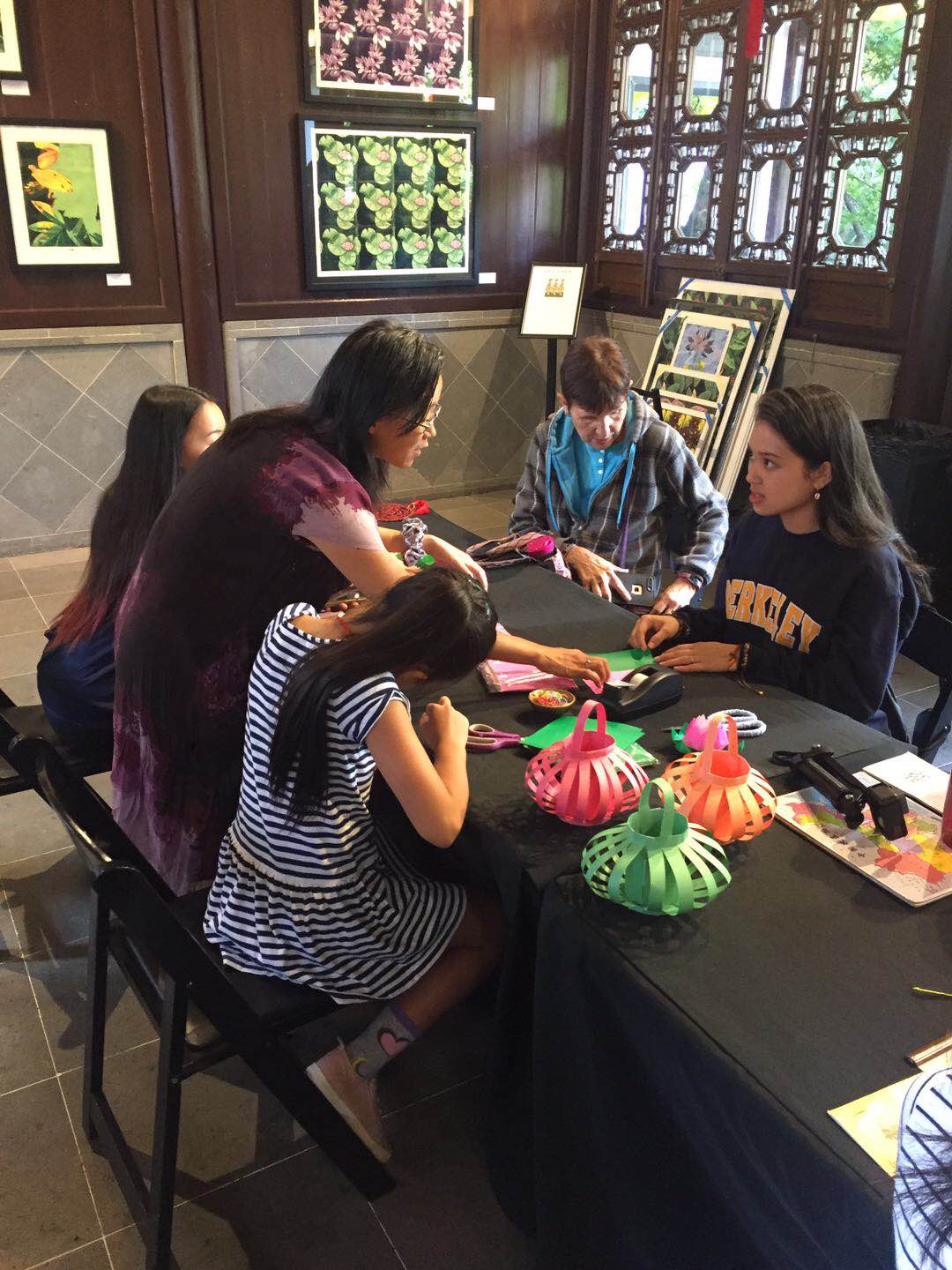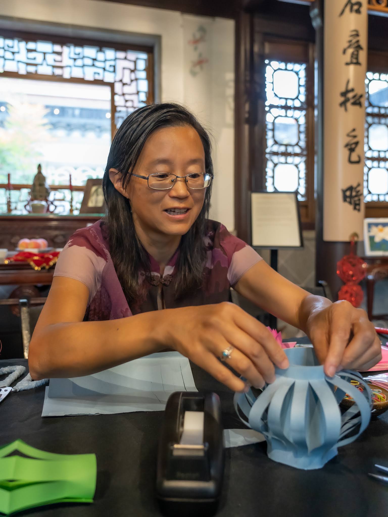 分享一小段今天汉语角的趣事:一位来波特兰参加convention的Kentuky女士说离开了boring的展会,没想到不经意转到兰苏园,it’s such an amazing place, 品尝了🥮,刚巧Wei 昨晚做了苏式蛋黄月饼,和她分享做法,聊到当地没有咸蛋黄卖,建议酒精盐巴自己腌制哈,really made her day! [Grin] 还有一家四口讲着娴熟的普通话,低头听着还以为就是华人,原来只有太太是,据说白人先生和两个混血兄妹在家里日常交流就是普通话,@Peiwen Zhu 🏡 波特兰地产经纪人 娃想学中文的这里看过来 [Tongue];另外两位美国孩子会一点点中文交流,那一刻父母的表情上难掩着小骄傲[Grin]。今天汉语角的亮点绝对是小明和孩子们的“剪纸才艺班”,大人小孩都积极参与,游客们带着自己的作品离开,看着都美滋滋哒,绿叶粉荷花做出来真精致,@xiaoming(晓明) 提前在家折叠了三包配件带过来, 一定花了不少时间!