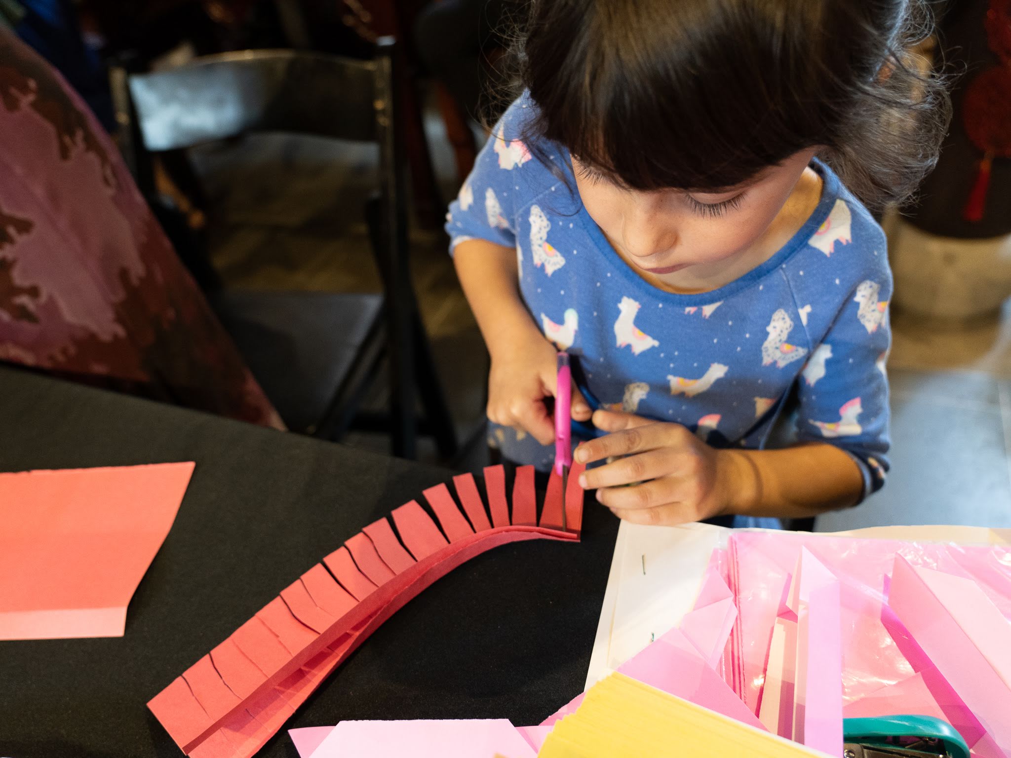 【穿红色旗袍的小姑娘】有张照片上有一位穿红色小旗袍的白人小姑娘 身后站着的是她的爸爸妈妈 小姑娘是Woodstock Chinese immersion 的小学生 她基本把我们的活动尝了个遍 手工 转手娟 毛笔字 碰巧我们手边刚好有些识字卡 我就让她念字 小姑娘念字的时候有不少围观游客 你可以从游客的眼光中感受到对小姑娘的赞许和羡慕 身旁的爸爸妈妈也露出自豪的微笑 (旁边游客在知道小姑娘在Woodstock 上中文班后也趁机向小姑娘的爸妈打听Woodstock 中文班的信息😀)识完字后我告诉她基本上全对了 小姑娘兴奋地给了我个high five 转头跟她妈妈说下周的中文小考她不担心了[Tongue] 希望她的中文老师别考太难哈[Chuckle]