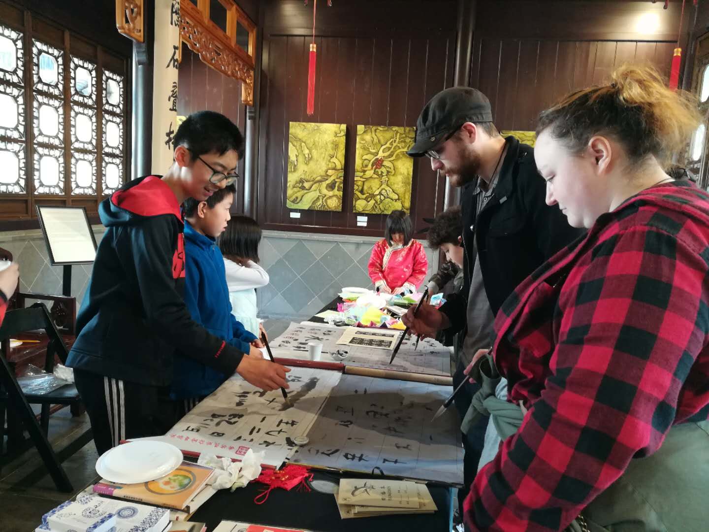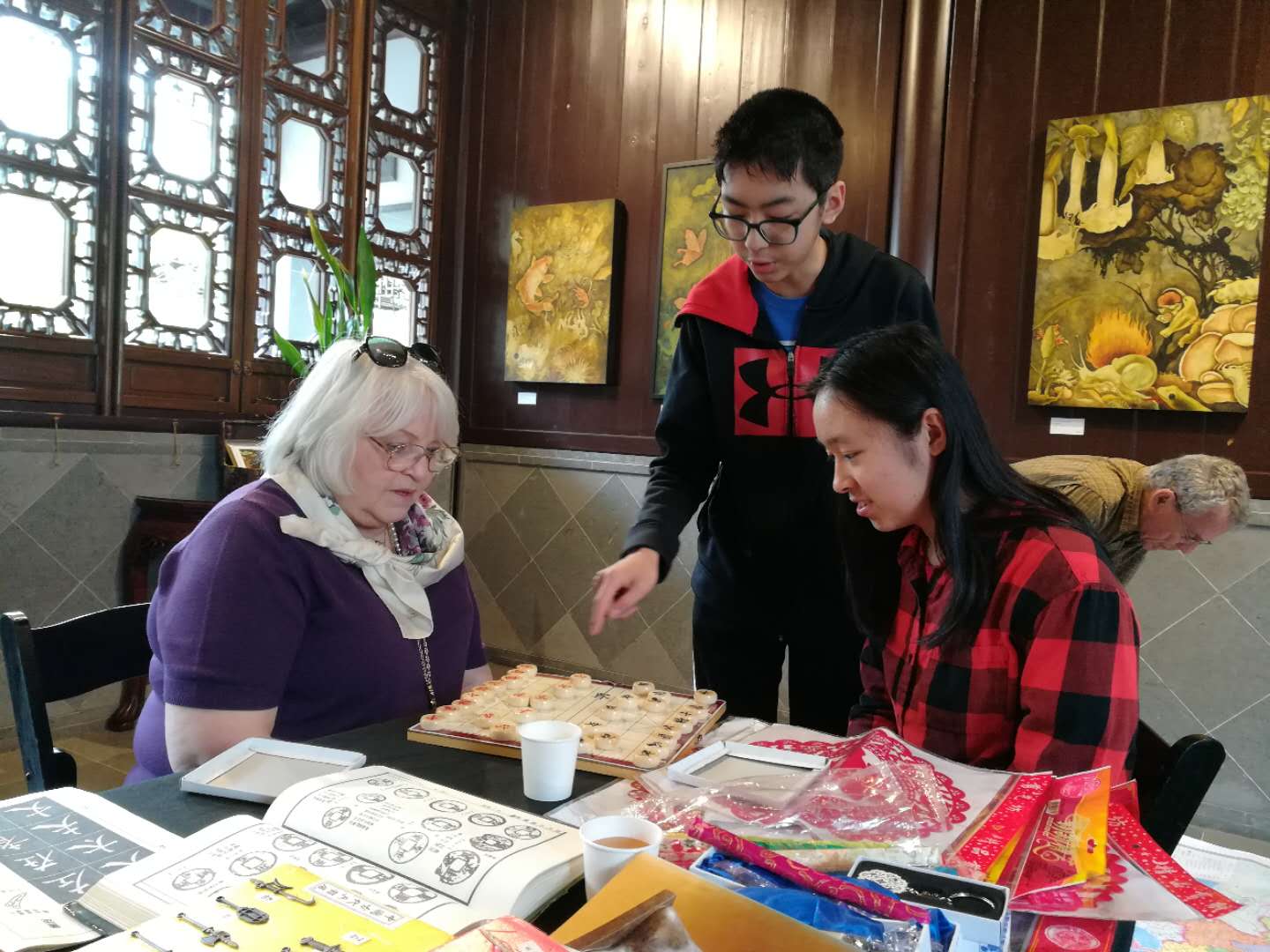 写毛笔字、下象棋、玩中国跳棋、剪纸、折纸、介绍中国地图、介绍古代兵器、介绍/品乌龙茶…这个志愿者活动真是很有意义。谢谢能有这样的机会去参与!@Nancy @西北兆 谢谢组织者!