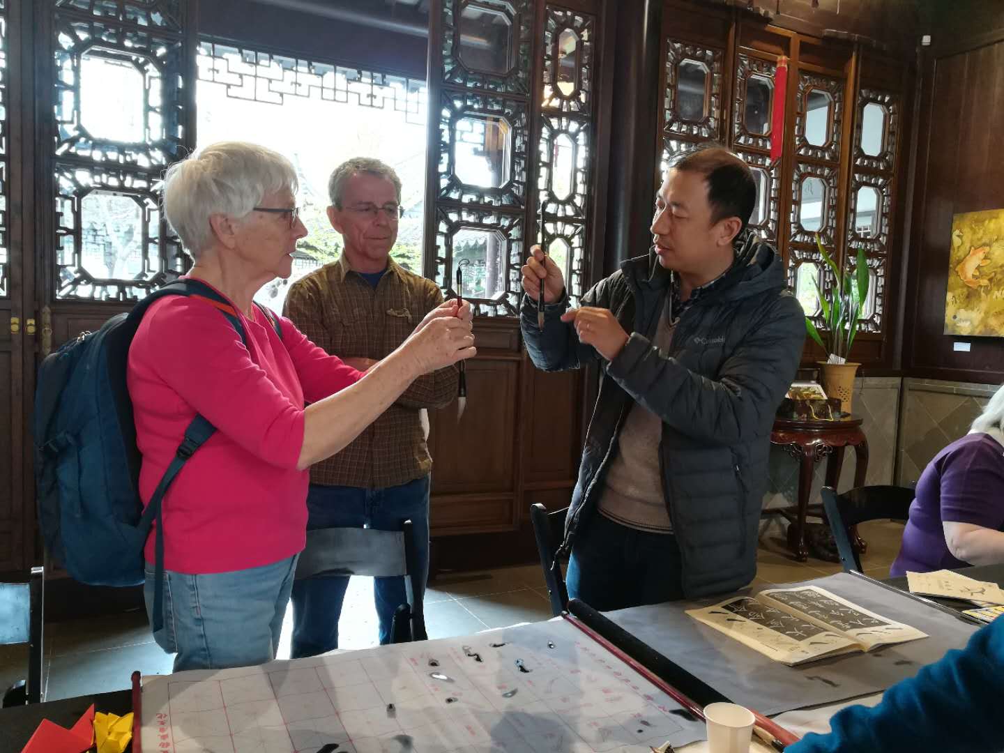 @西北兆 今天我们义工集合了三家之力,带去的活动内容丰富多彩。今天游客很多,热情很高,一直到接近四点才得以收工,将近3个小时人流几乎没有断过。我们八个人发挥各自所长,充分利用和游客交流的机会,互相授意,互相学习,意犹未尽。游客开心,我们也开心
