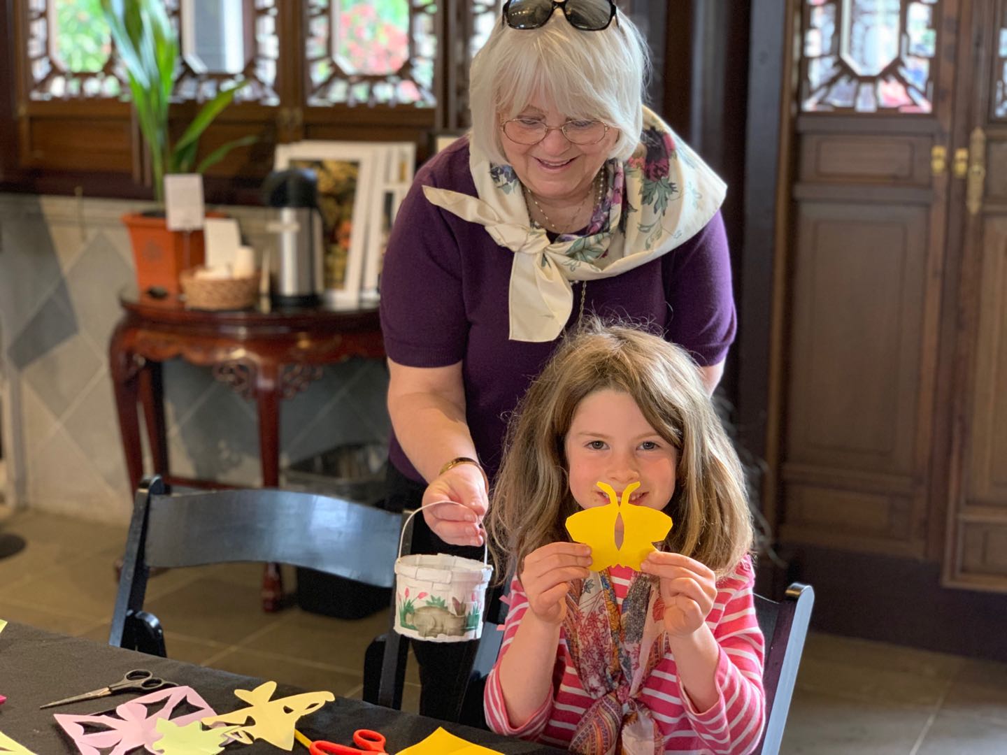今天在兰苏园做义工,我们一共去了三个家庭,三个大人,五个孩子。天气晴朗,兰苏园里花繁叶茂,游人如织,一直到3:40仍然有一些游客流连忘返,积极参与我们的活动