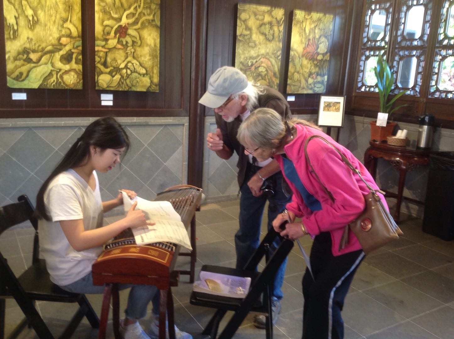 今天参加在兰苏园举办的每周一次汉语角活动的是@在路上 群友一家。从照片上可以看到不少温馨的场面。我们华人多才多艺世人皆知,但多是停留在传说中。这一家人在今天这样的场景下把琴棋书画表现个淋漓尽致,娱乐了游人,幸福了自己。今天园内园外的华人都是满满的正能量,感谢有他们,因为他们的参与,再一次把华人的正面形象传给了更多的人。