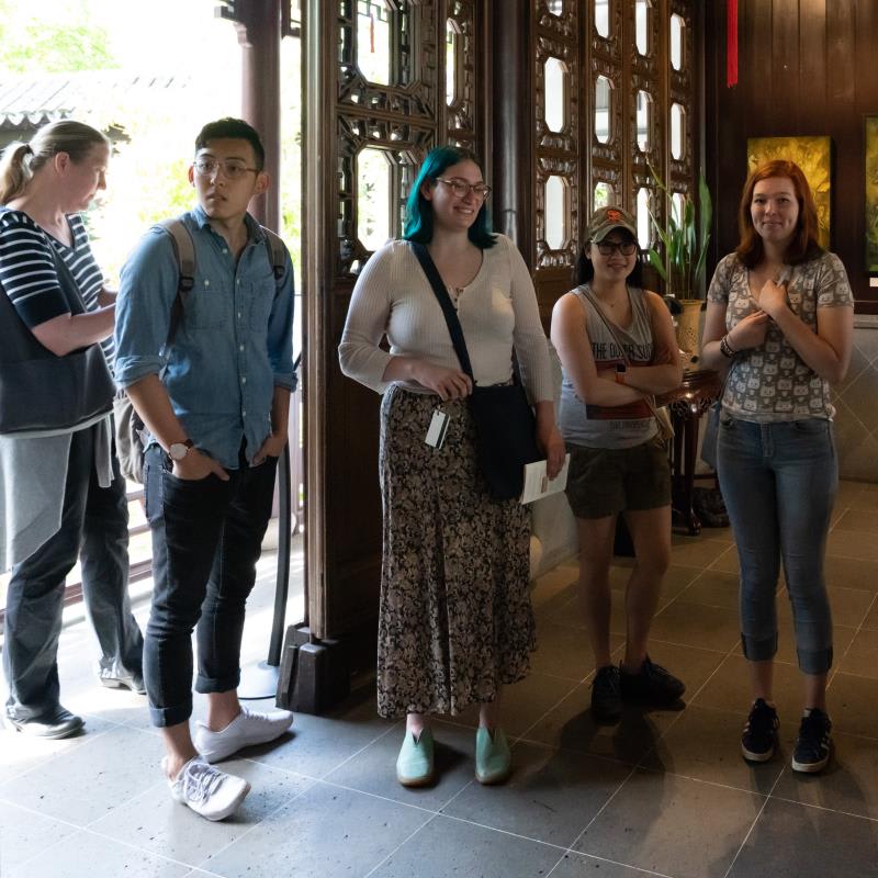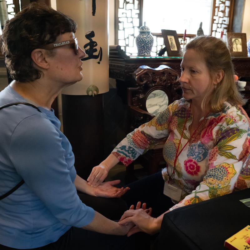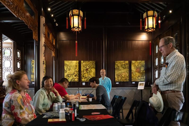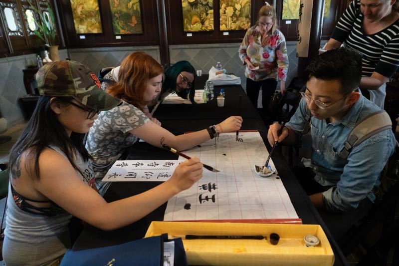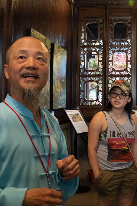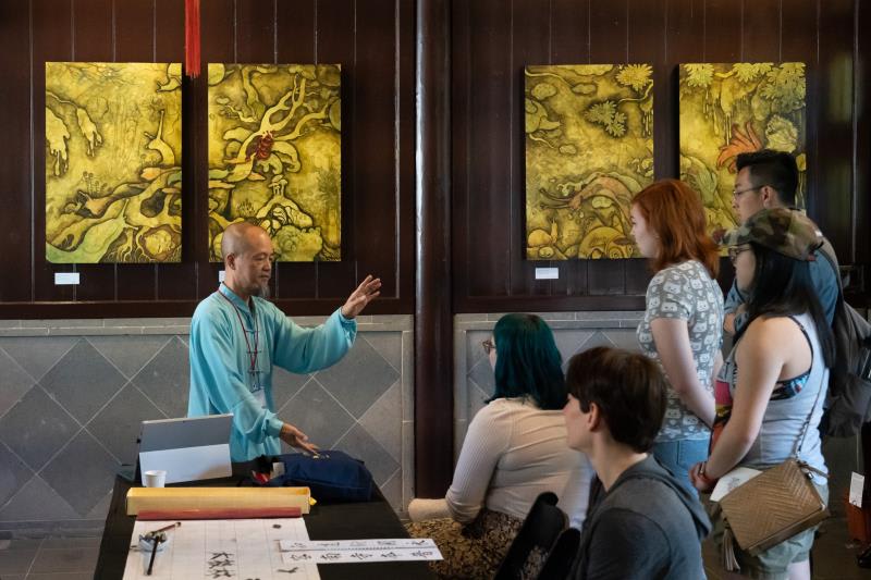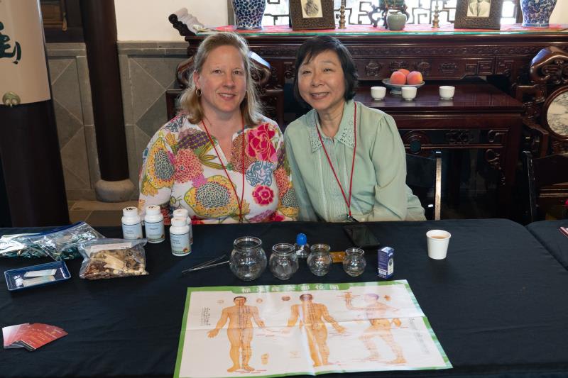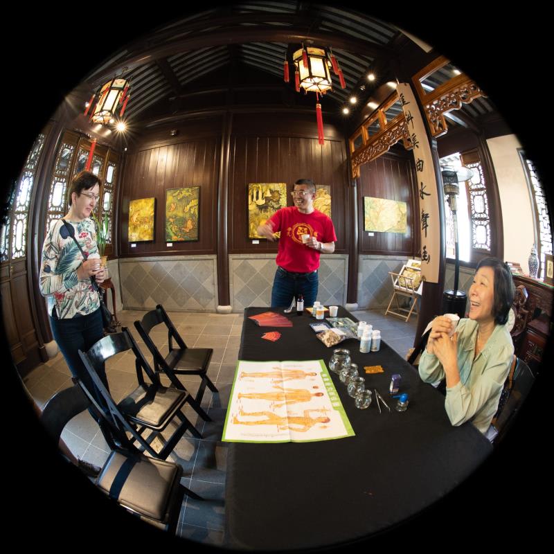 昨天的汉语角活动尝试了太极,中医和书法组合,效果相当的不错,可惜了周虹老师过于谦虚,没有即席演奏《梁山伯与祝英台》,说是这次用来找感觉。结束的时候,周老师表示感觉很好,约好下个月“组团”。给周老师这么好的感觉除了雕梁画栋的庭院外,应该是来自于太极林大师和毕业于OCOM的Julie中医与游人的互动。