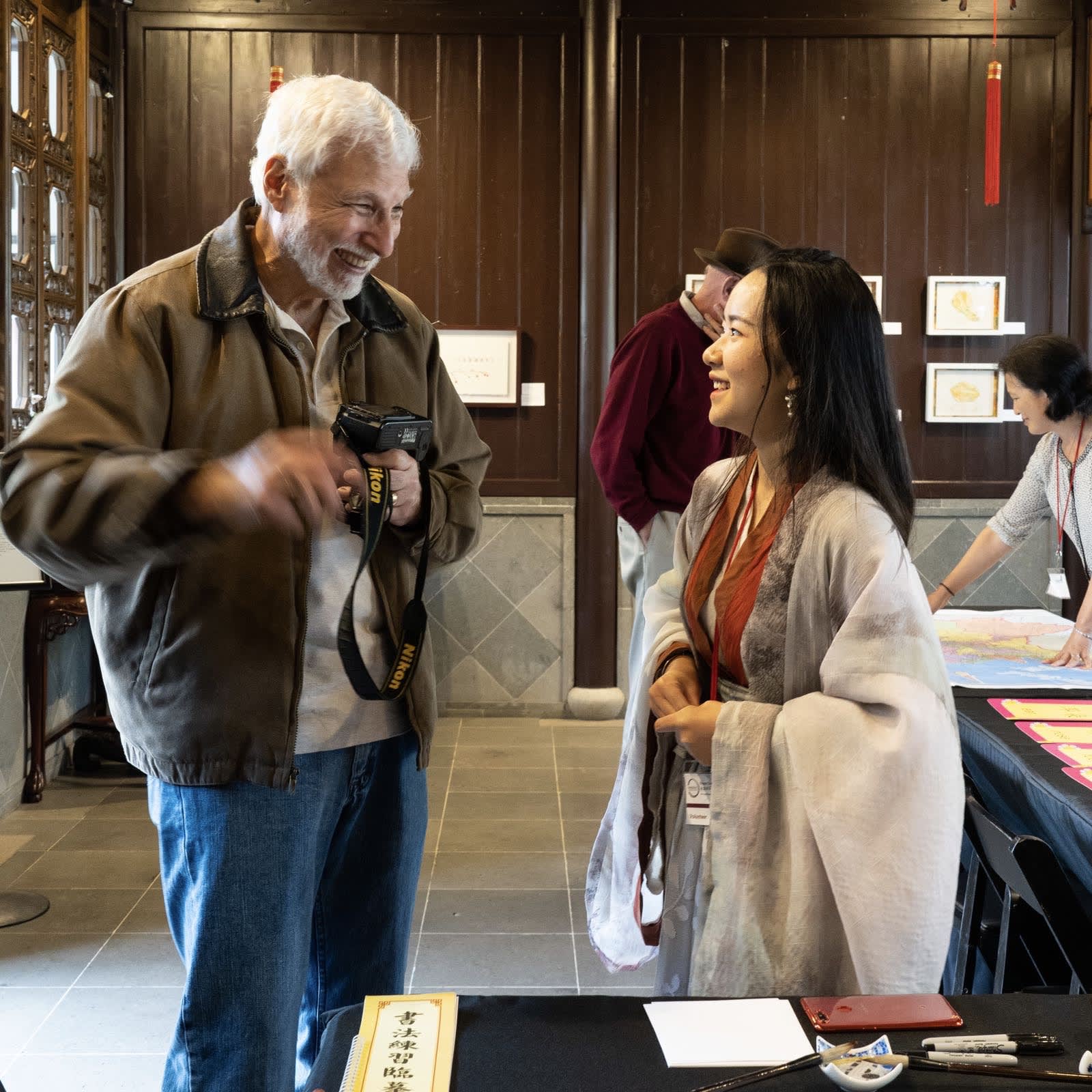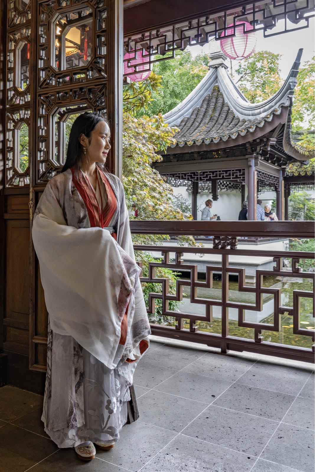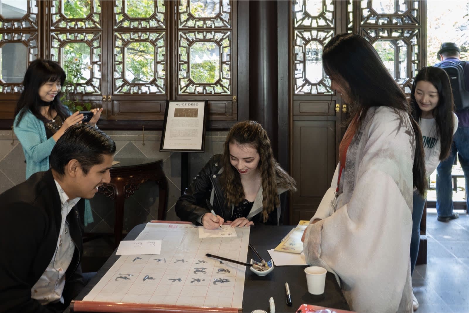 上个星期二在兰苏园的汉语角活动再现古风,身着汉服的来自PSU的@Shirley-珺超同学给兰苏园的景致注入了生命的活力,自然也成了老张的镜头中的焦点人物。据说这个下午有近两百游客留步在汉语角,Shirley和同去的@Lulu同学和@林迎来送往,不仅游客们有机会了解了中国文化,大家作为志愿者也是收获满满。下面是Shirley的感想,