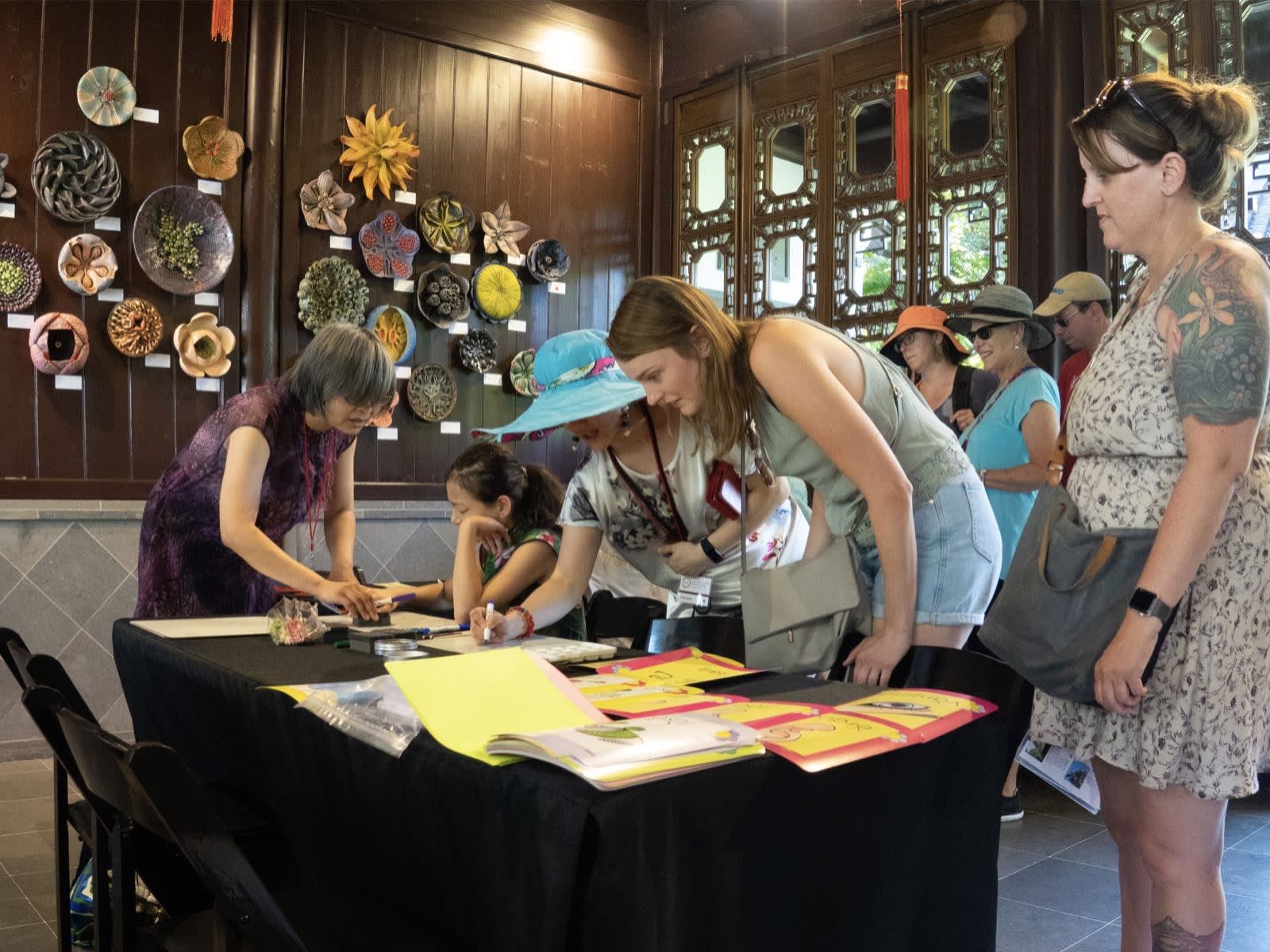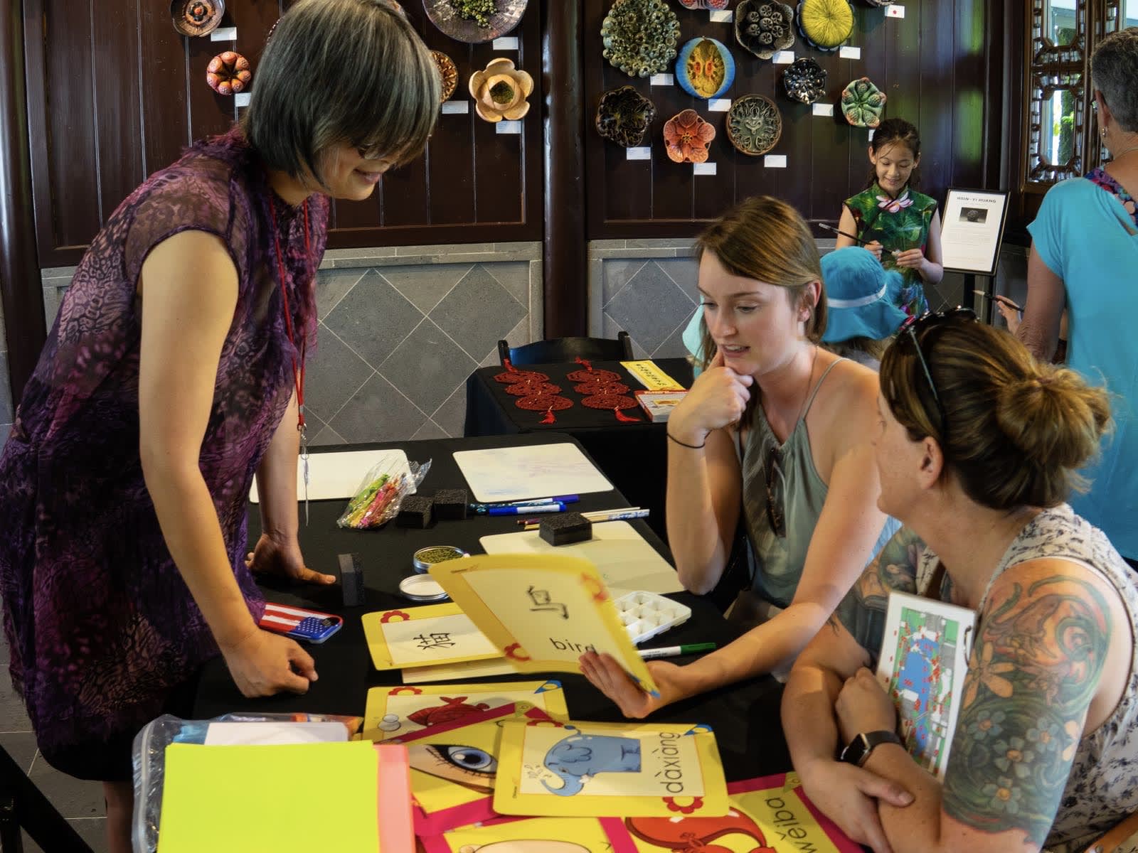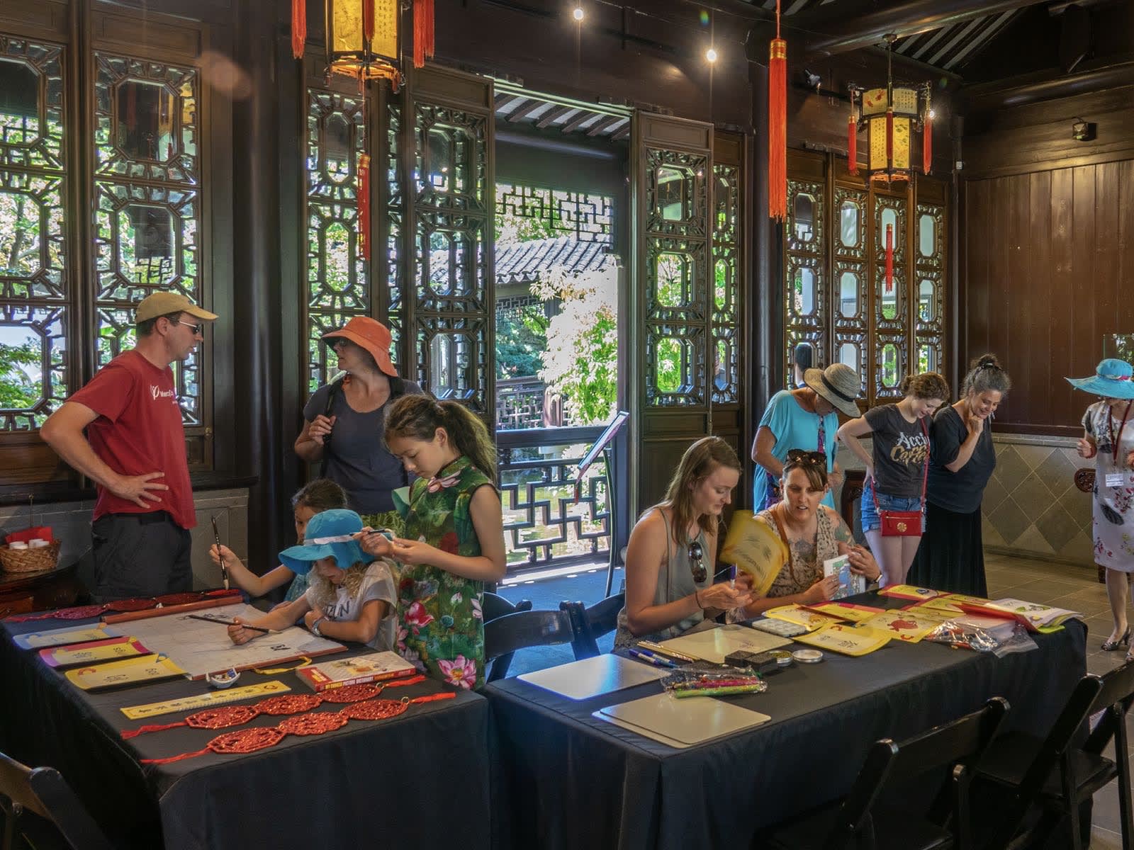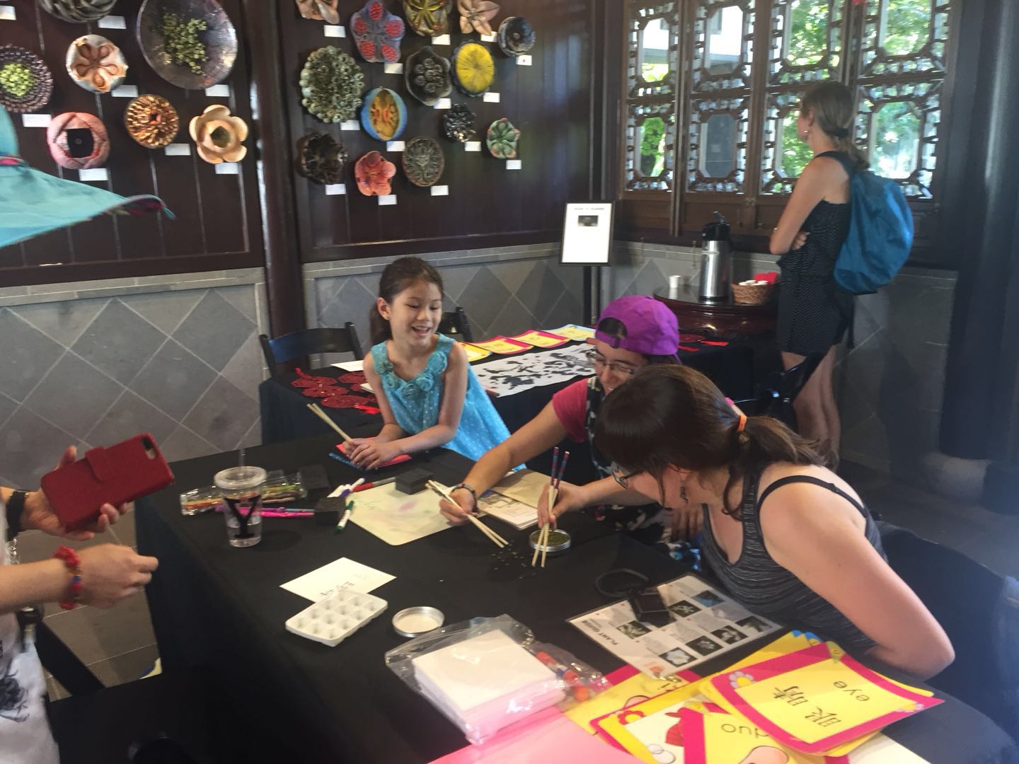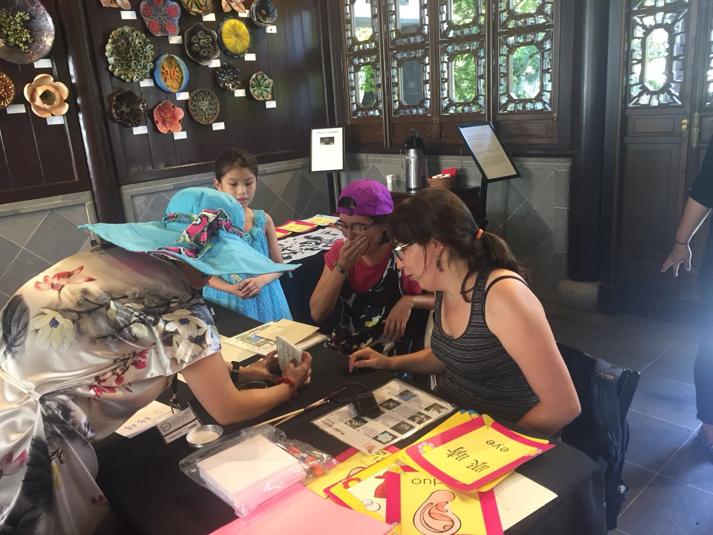 从照片上可以看得出来现场的人流,淼莲介绍说,整个下午不停的有人进来,到4点了一直没法儿收摊儿。因为外面的停车时间最多两个小时,已经加了一次钱又超时了,加上快5点了要堵车了,最后没办法让孩子们把门关上才能有机会收拾东西。Fion以前从来没去过兰苏园,本来想结束后借机会逛逛,也因为担心5点下班后堵车太厉害,没逛成。