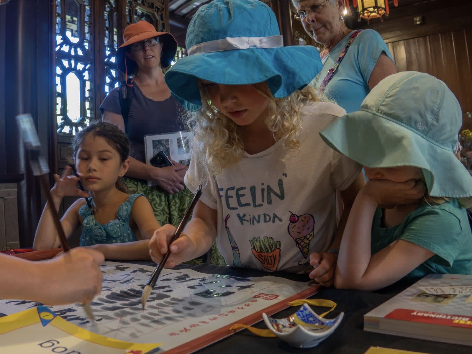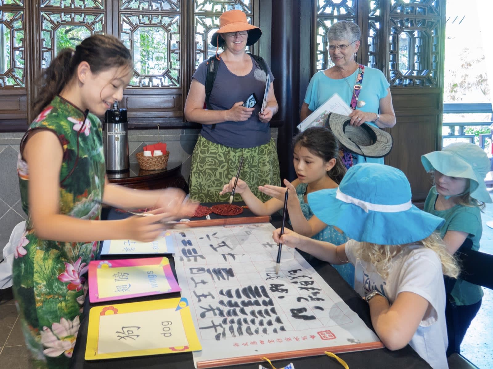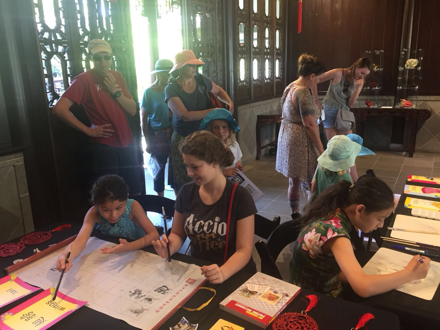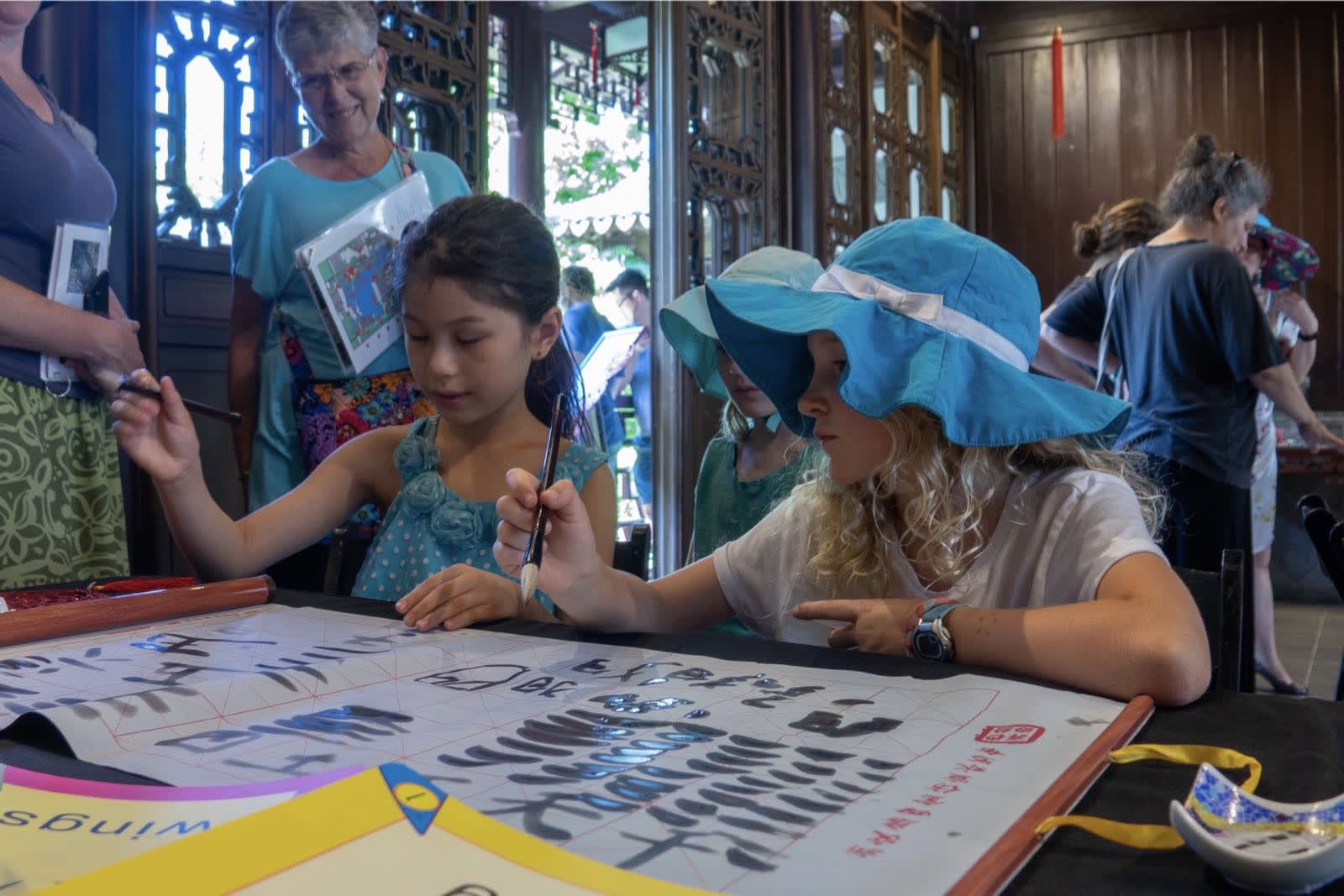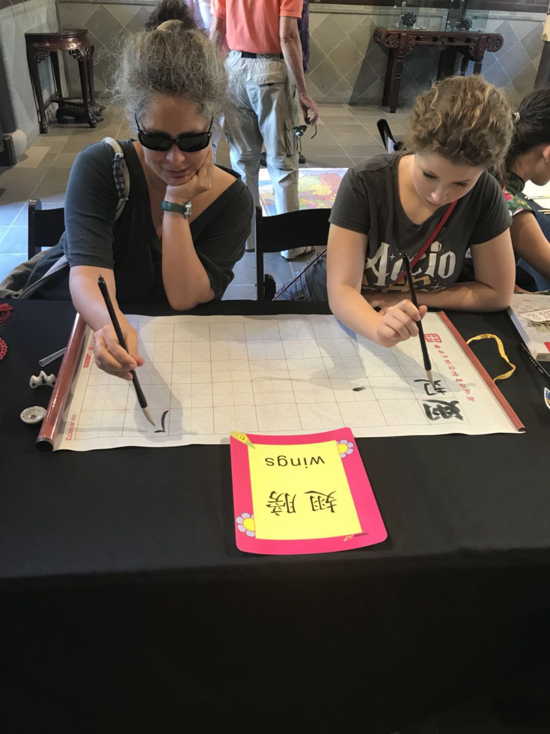 我们的志愿者们每次都会带去一些独特的活动,这次Fion拿了景泰蓝筷子让大家练习用筷子夹绿豆,人人都跃跃欲试,说心里话,这个技术活即便对我们华人来说都会有不小的难度,但是现场大家,尤其是结伴逛园子的朋友或情侣,一边挑战着这古老的习俗,一边尽情享受着不同文化带来的快乐。事后志愿者群群友们纷纷称赞这个点子,都同意今后这项活动和水画笔应该成为保留节目。