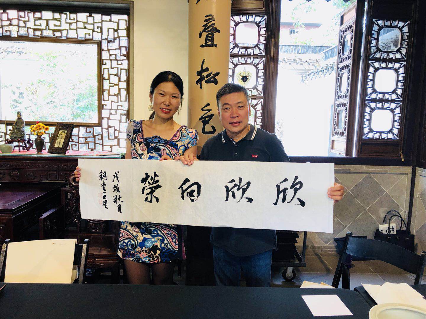 事后张欣表示,“很高兴参加此次志愿者活动,我没有铭牌。不好意思。谢谢组织,很高兴认识大家并且向外国朋友介绍中国文化。他们热情都很高。谢谢王星大师的墨宝。收获太多了。以后有机会继续做志愿者。” “谢谢组织这么有意义的活动,希望继续下去。那位加州来的得到王老师墨宝的“高贝通”说要让自己的家人和朋友再一起回来。他来了两次要跟王老师照相。会说一些基本的中文。貌似经过了这次,学习中文的热情又提高了。”