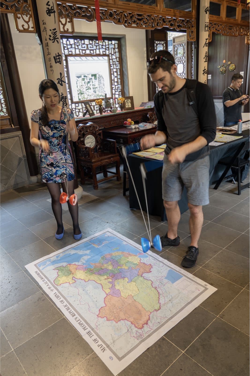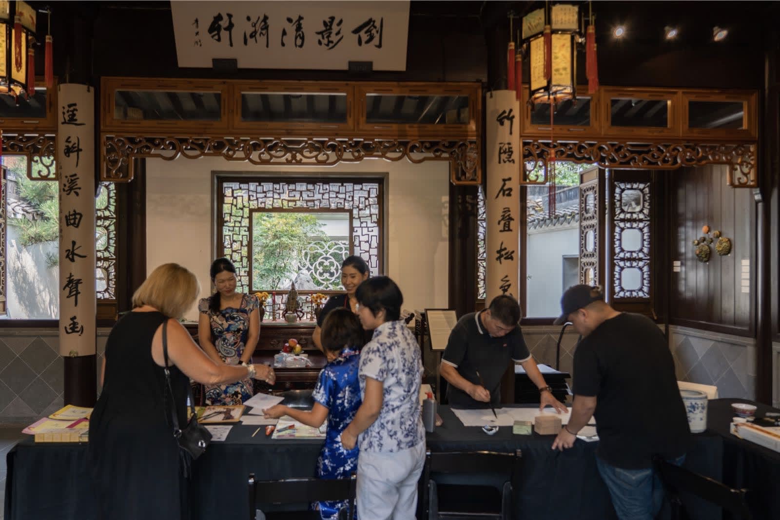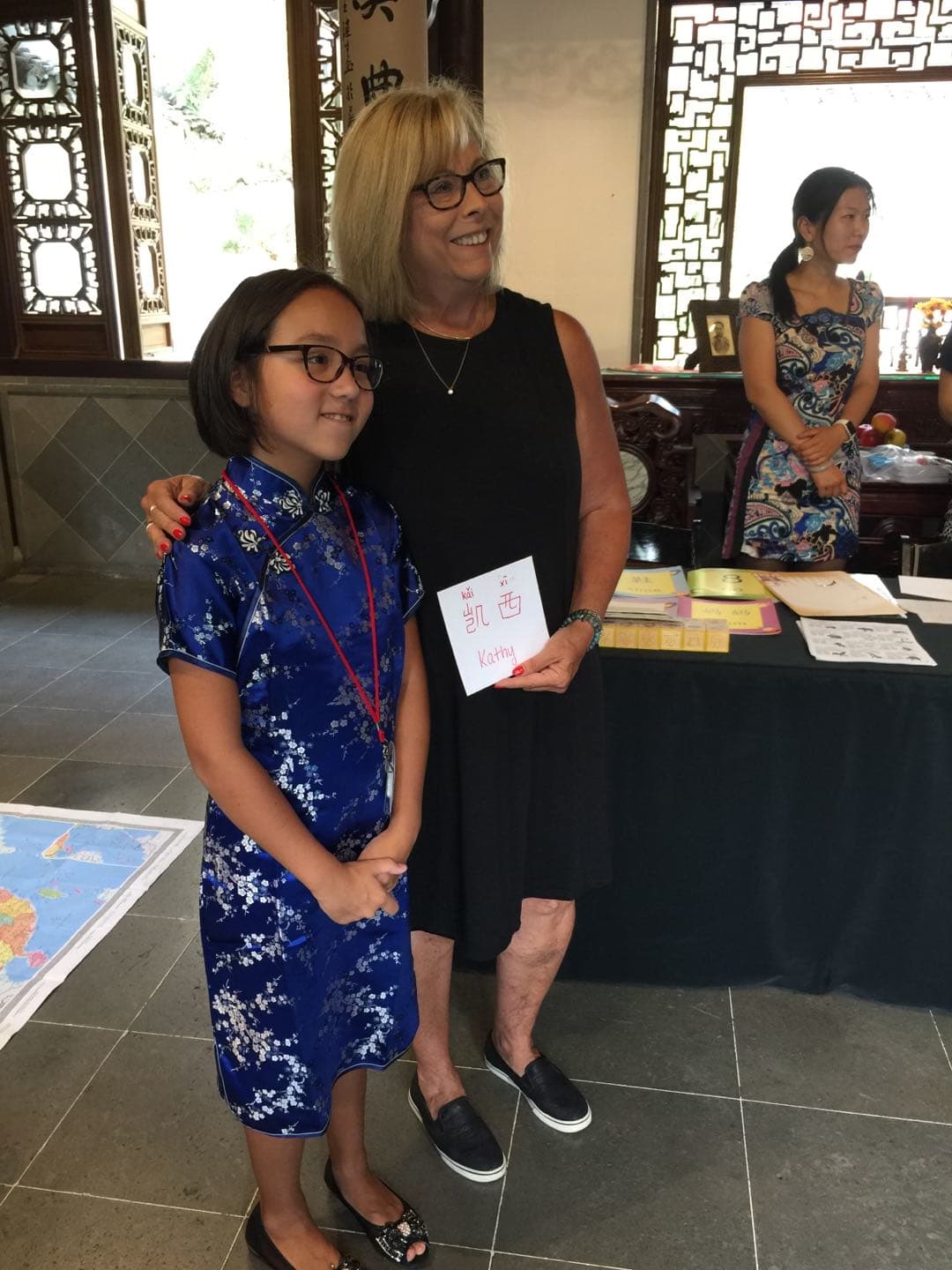 带着女儿一同做志愿者的王丽也是收获满满,写道,“今天非常高兴参加兰苏园汉语角的志愿者活动,王星老师的现场书法吸引了众多游客。还有人亲自学写毛笔字。中国地图一如即往的受欢迎,我们还用中文给游客写名字。更有从外州来的中国游客,非常羡慕我们波特兰有这样的活动。希望孩子多了解中国文化。我女儿非常惊讶这么多外国人可以讲流利的中文。希望我们的汉语角越来越兴旺!”