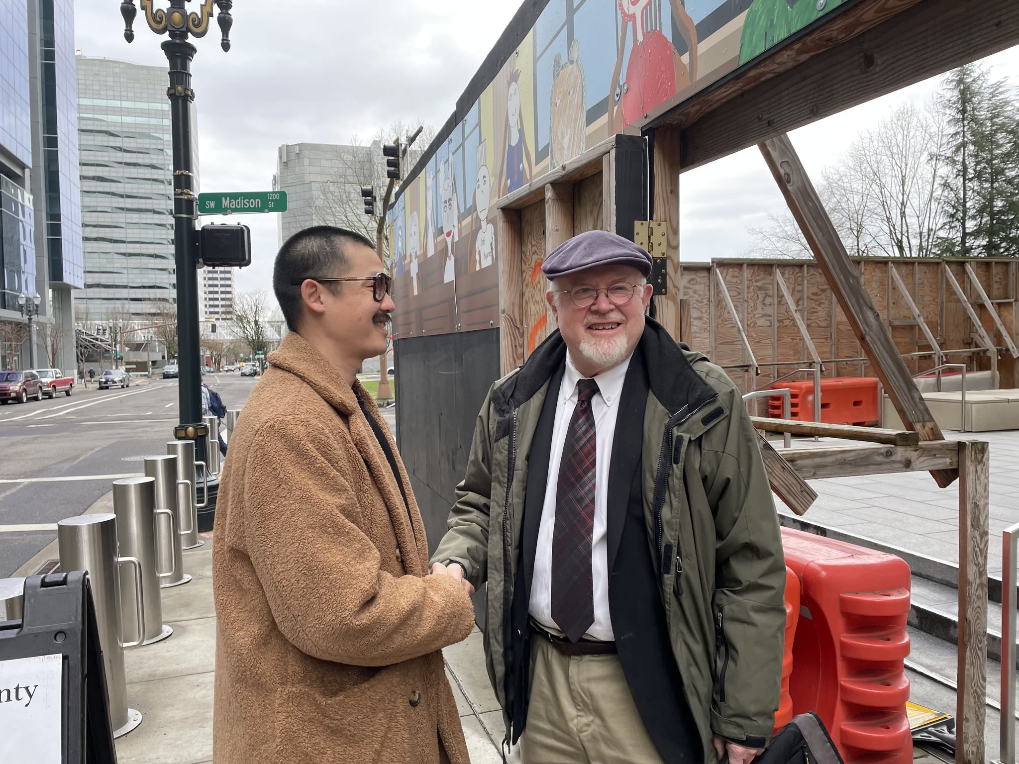 中国城我们经常举办活动的地方旁边有一个华人小伙子开的收藏体育用品店,叫Laundry PDX,几年下来我们混得很熟,他人热情也很仗义,在中国城算是能维持开张的极少数正常商铺中的一个,后来知道他的家人也是几代移民,而且祖辈成绩斐然。没想到前两个月见到他,情绪很低落的样子,一问才知道自己惹上了官司,旁边的戒毒所的顾客常年骚扰,使他无法忍受而试图通过抗争保护自己的生意和店面,没成想反被告,若来一身的官司,不时出庭应对。听到此,我的嫉恶如仇的本性又迸发了出来,跟他说我们会介入,整个社区会和他站在一起。起初他没当真,只是对我的表态感动了。没想到后来发生的一切,其中包括我们的社区法律顾问挺身而出,在多年不上庭的情况下,还是决定免费做他的律师,花费大量的时间,并在今天在法庭上为他争取到了最好的结果。Chris当庭和我们拥抱,表示今后会毕生是华人社区的一份子,并说这是他一生中最受感动的一段时间。