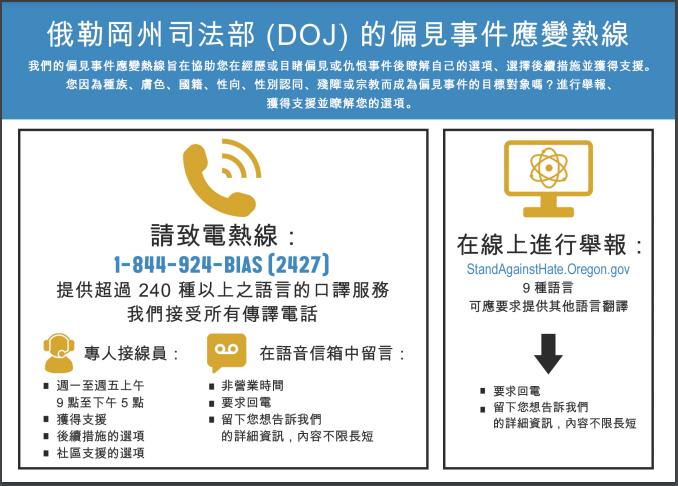 今天和州司法部开了一个会,又一大扇门向我们社区打开了。实际上种族歧视暴力事件热线是知道的,但我自己一直以为只是给州政府报个数,而当警察都可以对华人说”don’t care”的情况下,还会有这个心情帮助政府做数据收集吗?没想到自己是大错特错,最初的热线可能也只限于收集数据,但从去年开始州政府拨巨款为受害者提供直接帮助,范围很宽泛。例如说,孩子们在学校受到bully,他们可以帮助联系学校和校区,甚至协助学生转学。今天早上有小业主抱怨受到歧视,如果因此受到经济上损失,可以申请补贴。前不久有华人被人开车跟踪一直到家门口,并遭受种族仇恨性质的谩骂,这种情况下,当事家人因此需要接受心理咨询,可以得到免费30次,可以自找咨询师。。。您需要做的,就是拨打他们的热线或在网上填写表格。需要的话,OCC可以协助您。如果有具体问题,他们会在文化节设立摊位。过去在很多时候社区觉得无能为力,现在则不同了,在越来越多的情况下,社区能帮助到您,无论是司法正义还是切实解决遇到的困难。