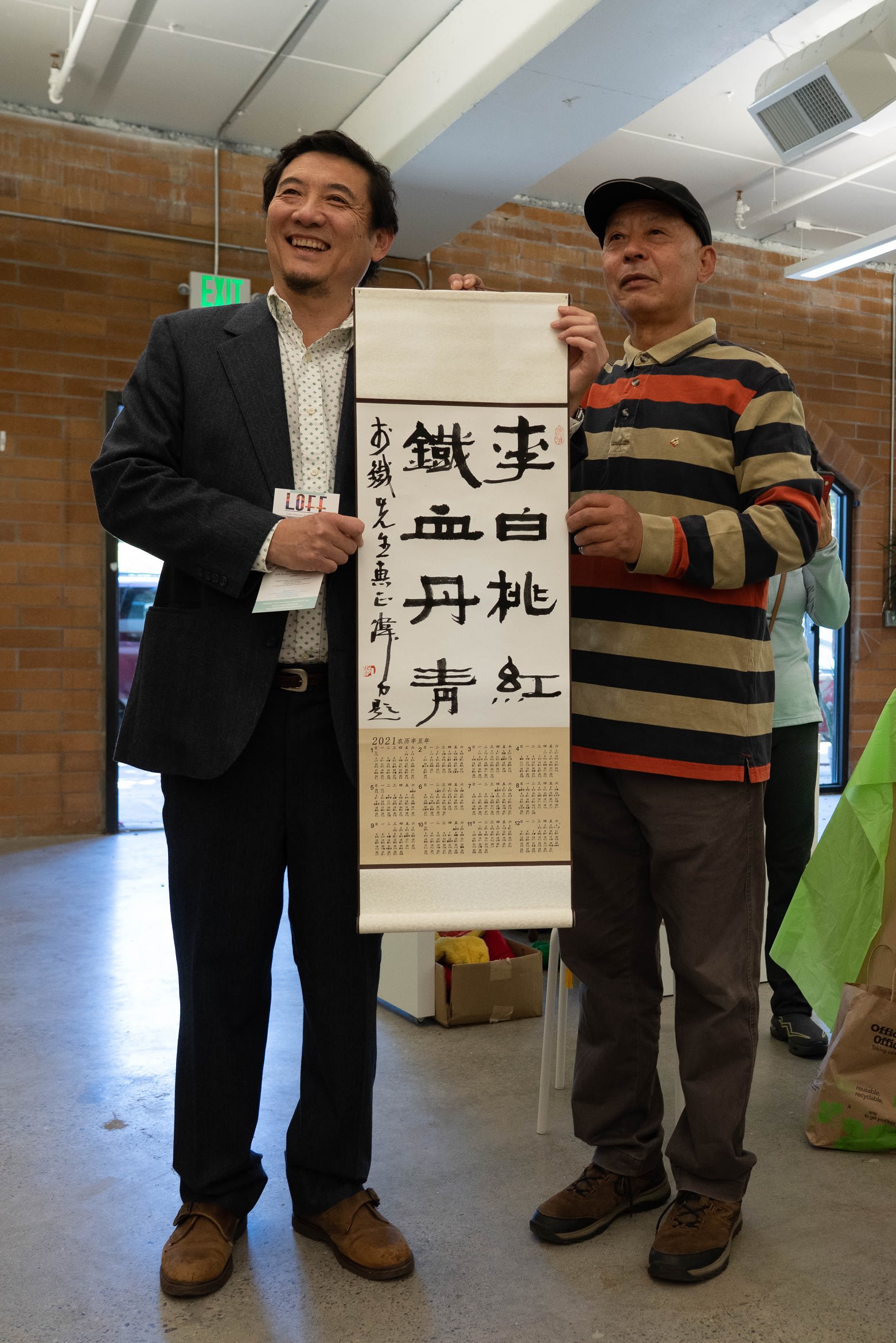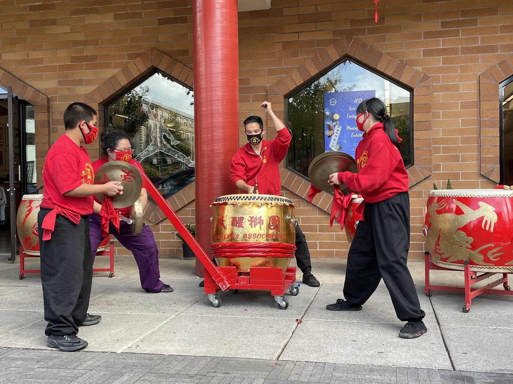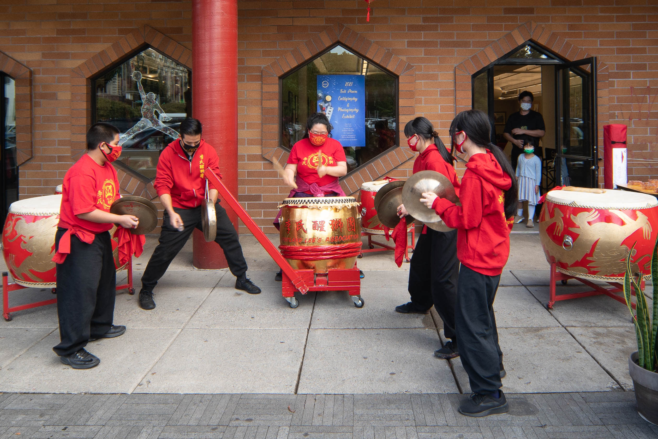【城东城西华人相聚中国城–庆中秋】也是中秋望月书法摄影展第三天,同样是作为庆祝中秋活动,两个活动重叠在一起,自然是热闹了许多。本来中国城今年要举办大型庆祝活动,无奈疫情的原因而不得不取消了,但是,我们觉得无论如何,对我们华人如此重要的节日总要做些什么,所以,就有了这几天的安排。中华会馆作为今天活动主办方之一,帮我们邀请到了李氏公所舞狮队,并在现场派发月饼。