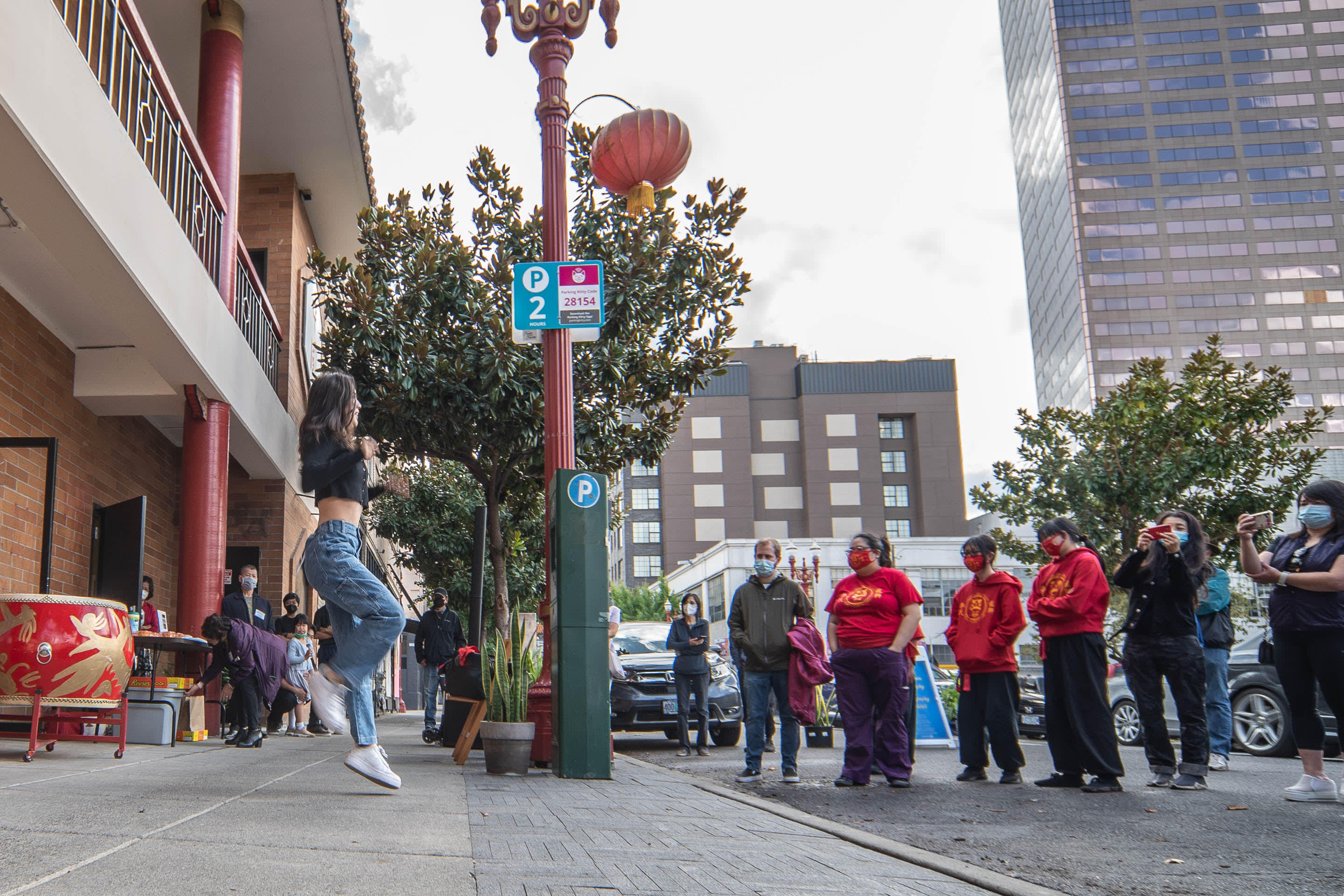 今天活动的主题是One Community,由OCC打鼓队和李氏公所舞狮队的鼓手们PK,期间有文化节大出风头的Phoenix再做激情表演。演出从牌楼一直延续到兰苏园门口,大家都非常的开心,一时间觉得往日中国城的繁荣景象又回来了。