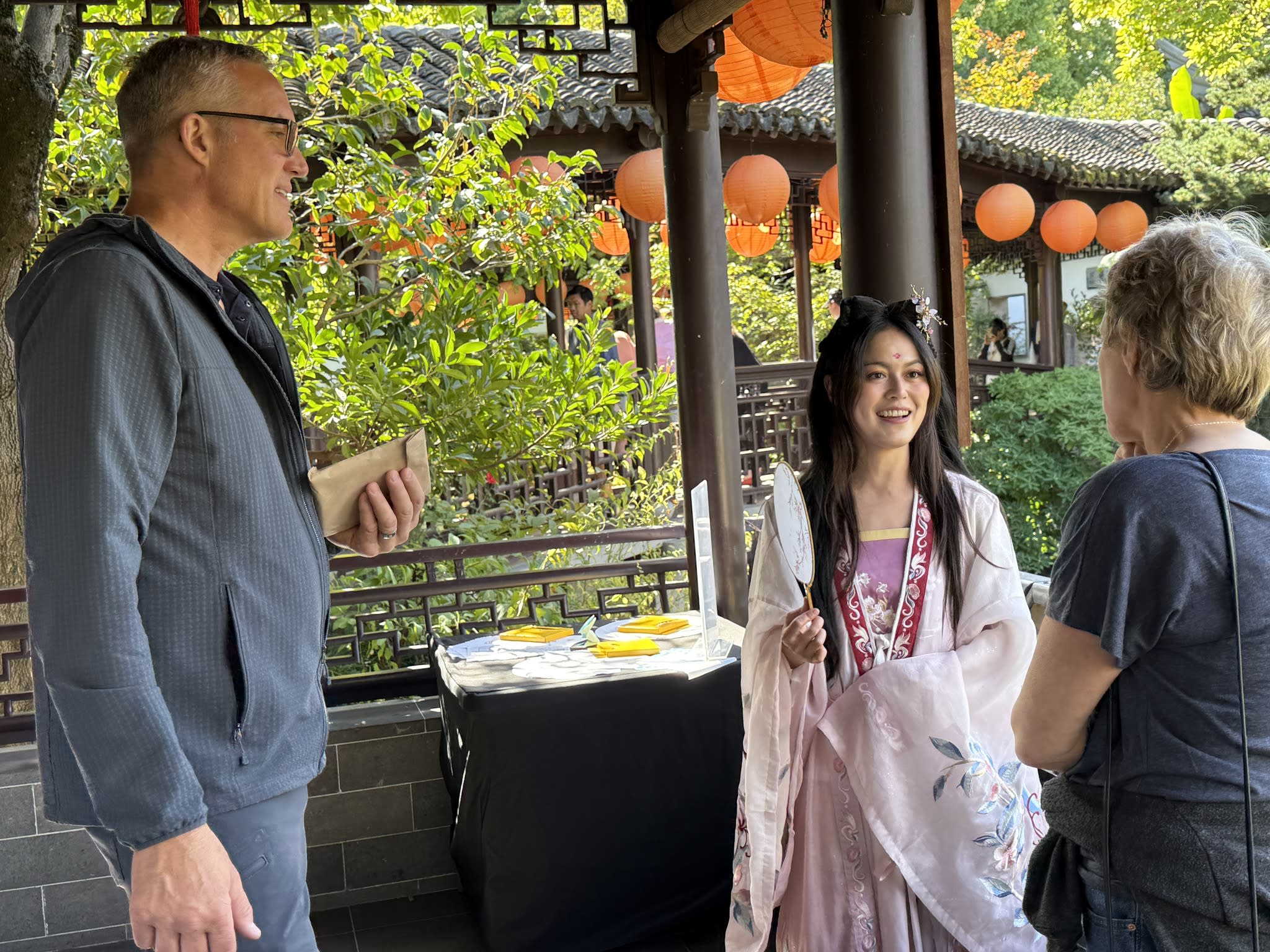 9/28/2025 真的很令人感动,三天的活动没有出现开天窗时段,我们都知道这是大家背后默默付出的结果。除了在兰苏园看到的令人惊艳的嫦娥形象,更要感谢刘大姐为此倾注的大量心血。兰苏园的中秋活动内容丰富多彩,作为华人社区,我们不是旁观者,而是通过积极的参与经受住了考验。为我们的义工们深感骄傲。