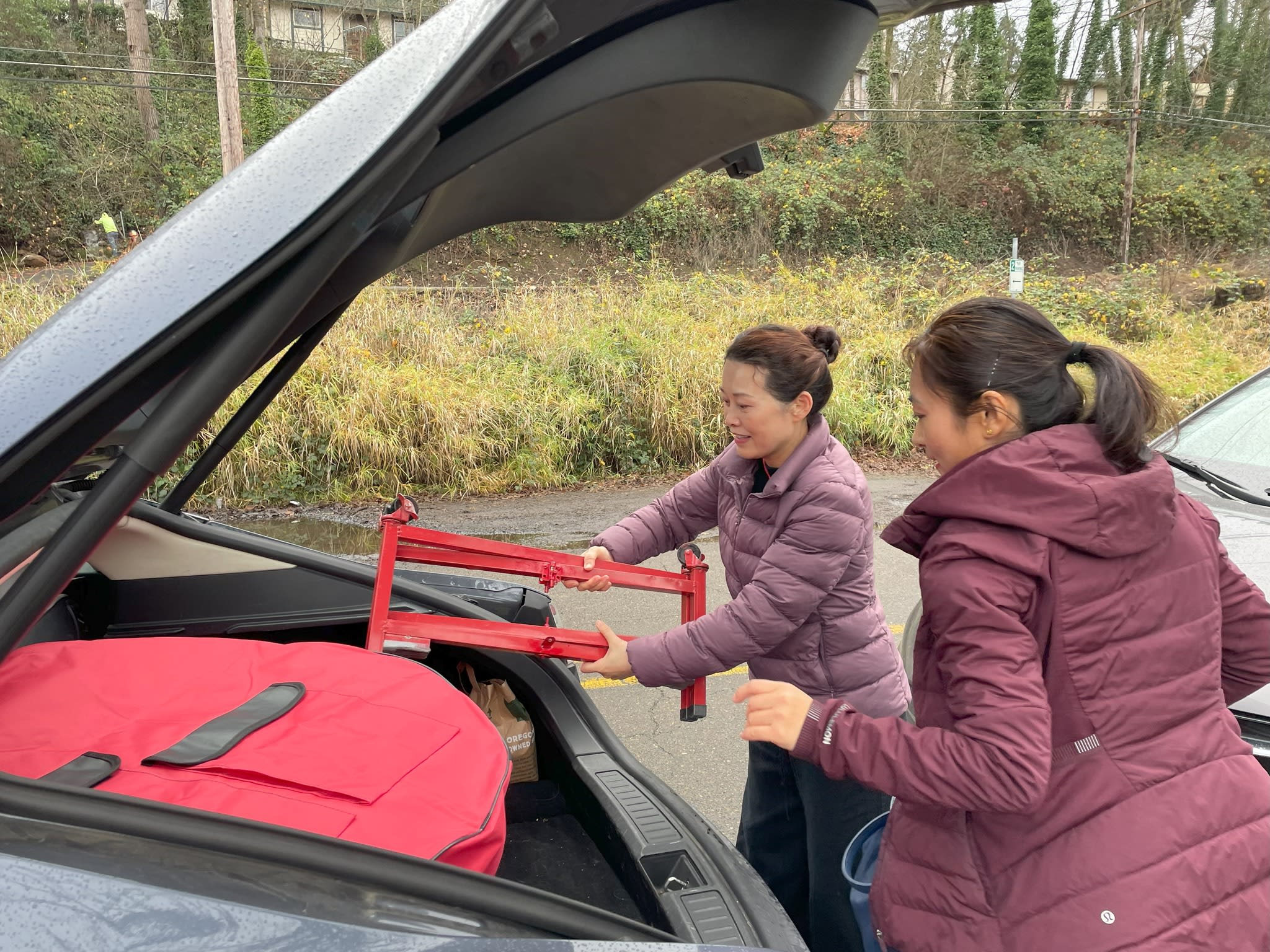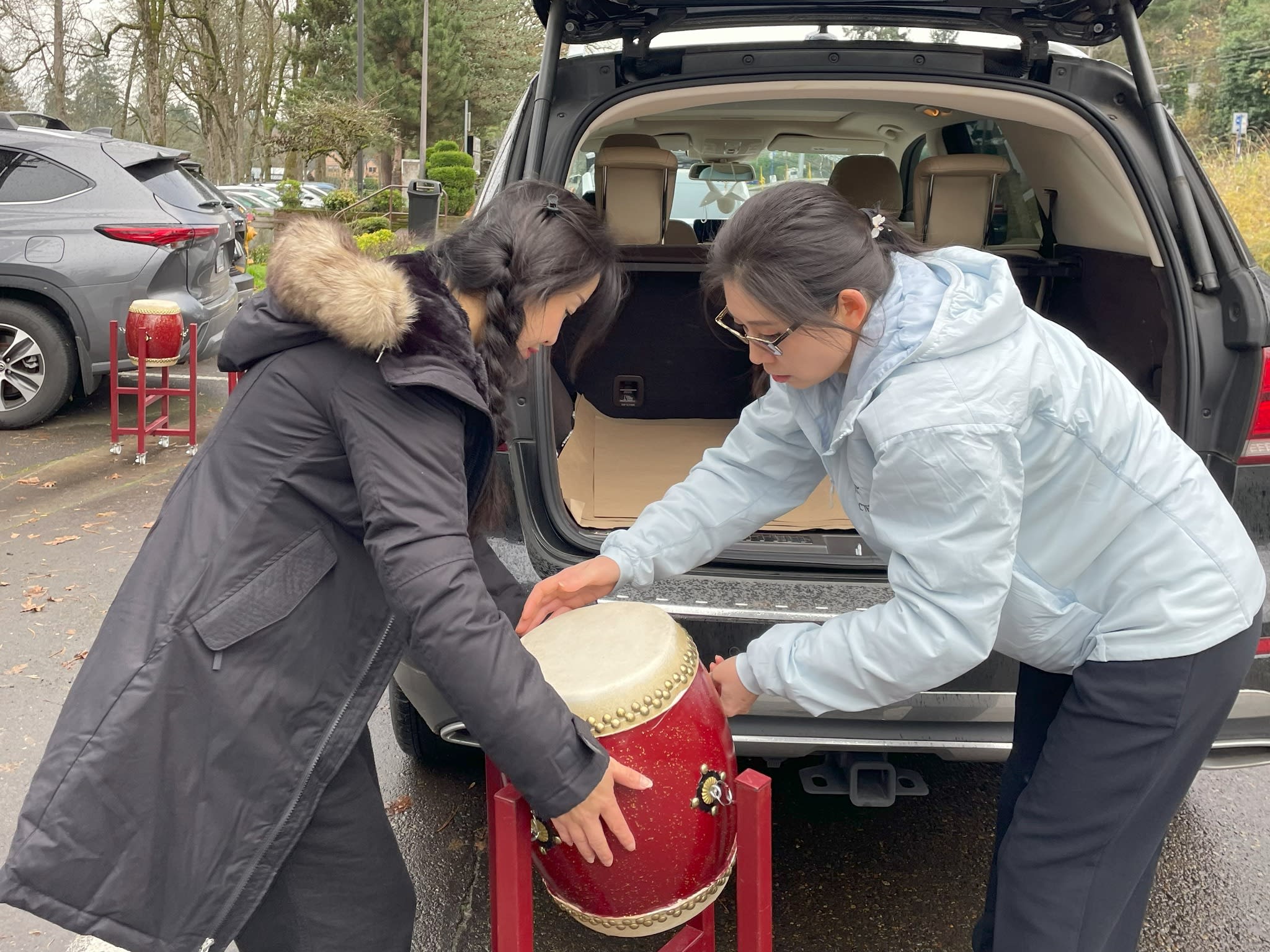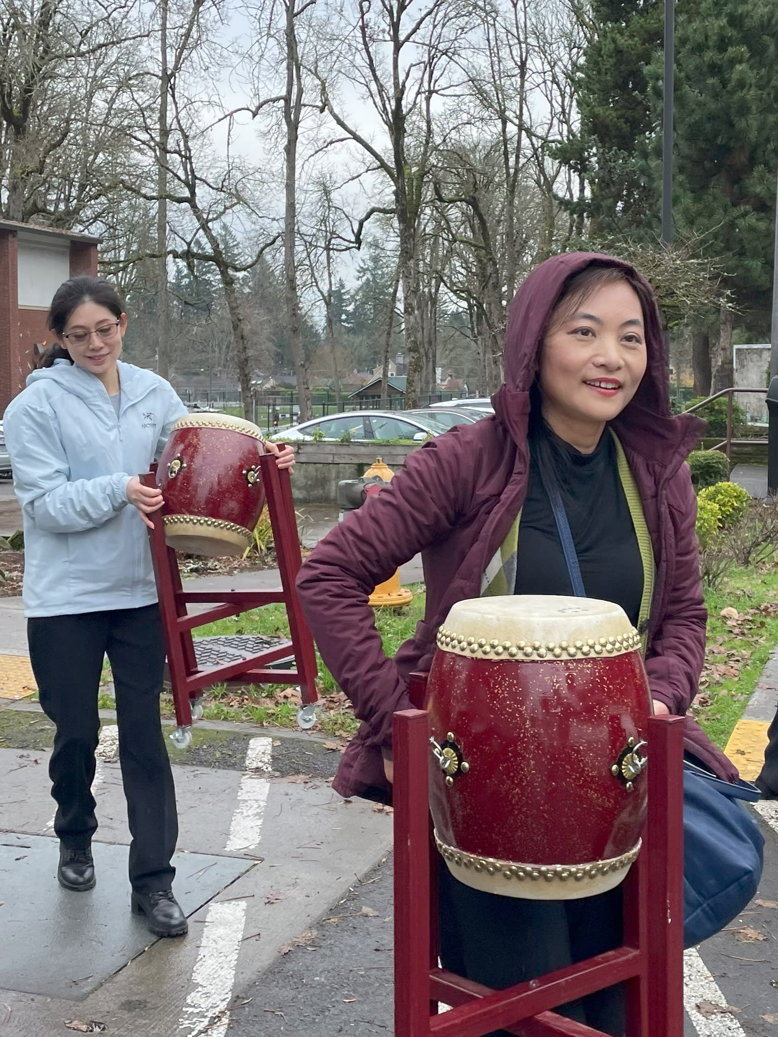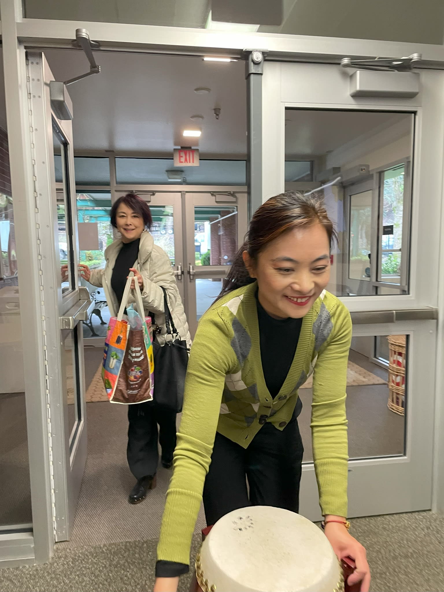 今天木兰大鼓队来到位于 West Linn 边上的 Bolton 小学,给那里的两个中文班的老师和学生们表演中国大鼓。大鼓队为了给孩子们提供一次留下深刻印象的文化体验,平时不上班的队员几乎悉数到场。表演的是刚刚排练完成的春节曲目,欢快喜庆,深受孩子们的欢迎。应同学们的要求,队员们连打了两次。表演前后,队员们邀请孩子们轮流上场,跟着学习打鼓动作,体验打鼓的乐趣。平时只能看,现在拿起鼓棒自己敲打大鼓,孩子们各个欣喜若狂。活动结束后,同学们都不舍得离开,和鼓队队员们依依惜别。