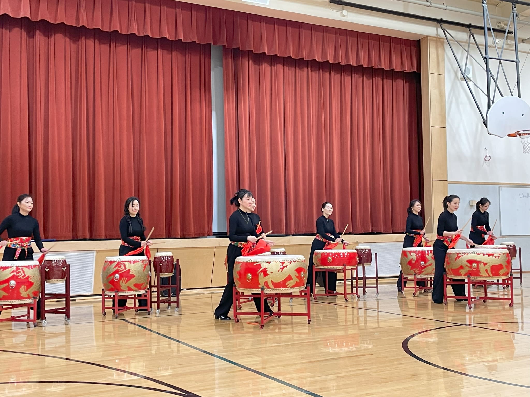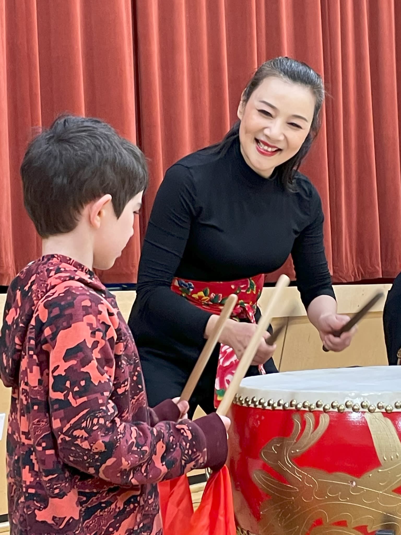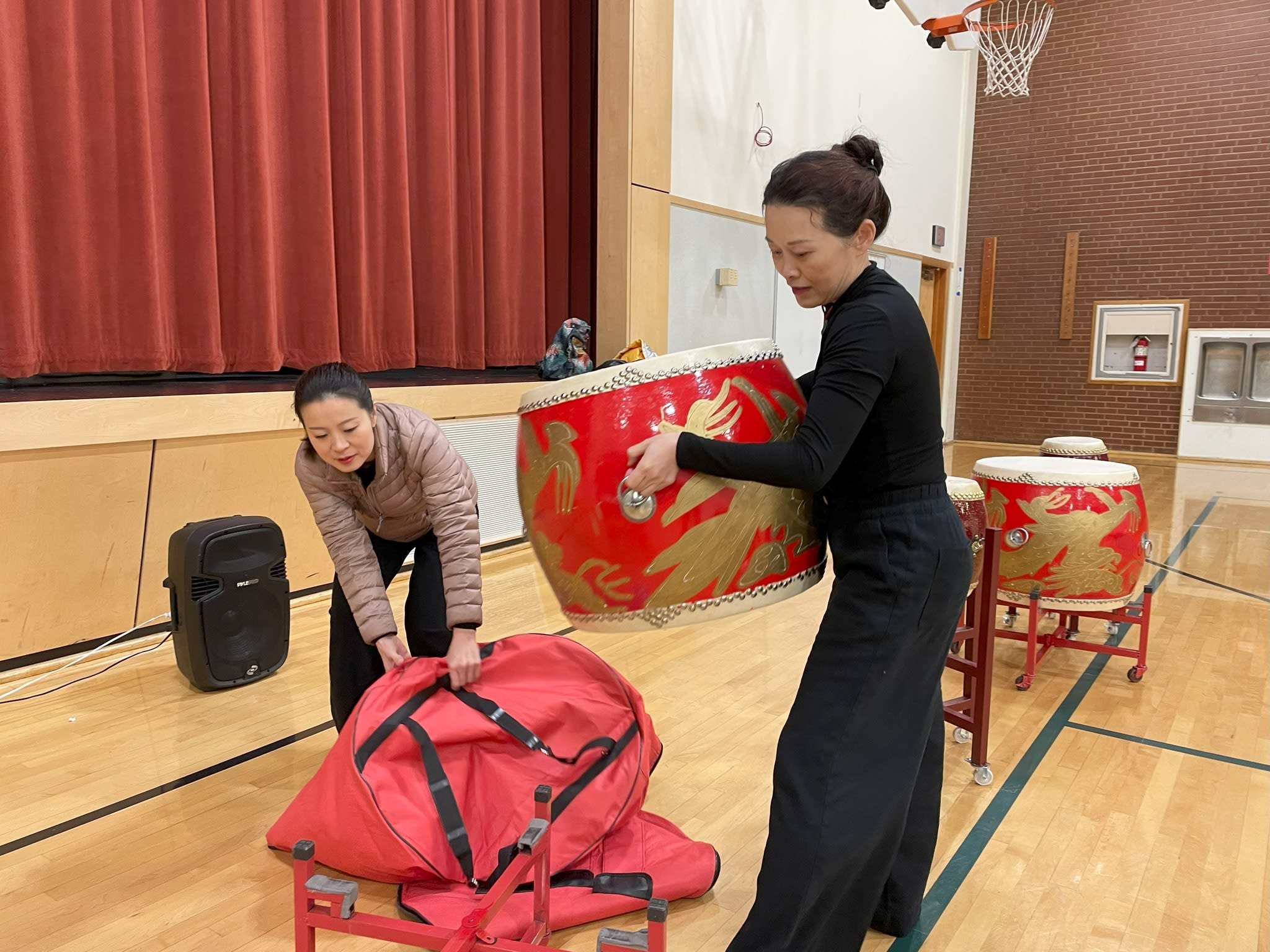 The holiday season performance debut at Bolton Primary School yesterday was a tremendous success. The students in the two Mandarin classes had the chance to learn and play drums with our Mulan Drum team members. The team also prepared a new program specifically for Lunar New Year celebrations, and it turned out to be a big hit with the students, who even asked for a second performance.