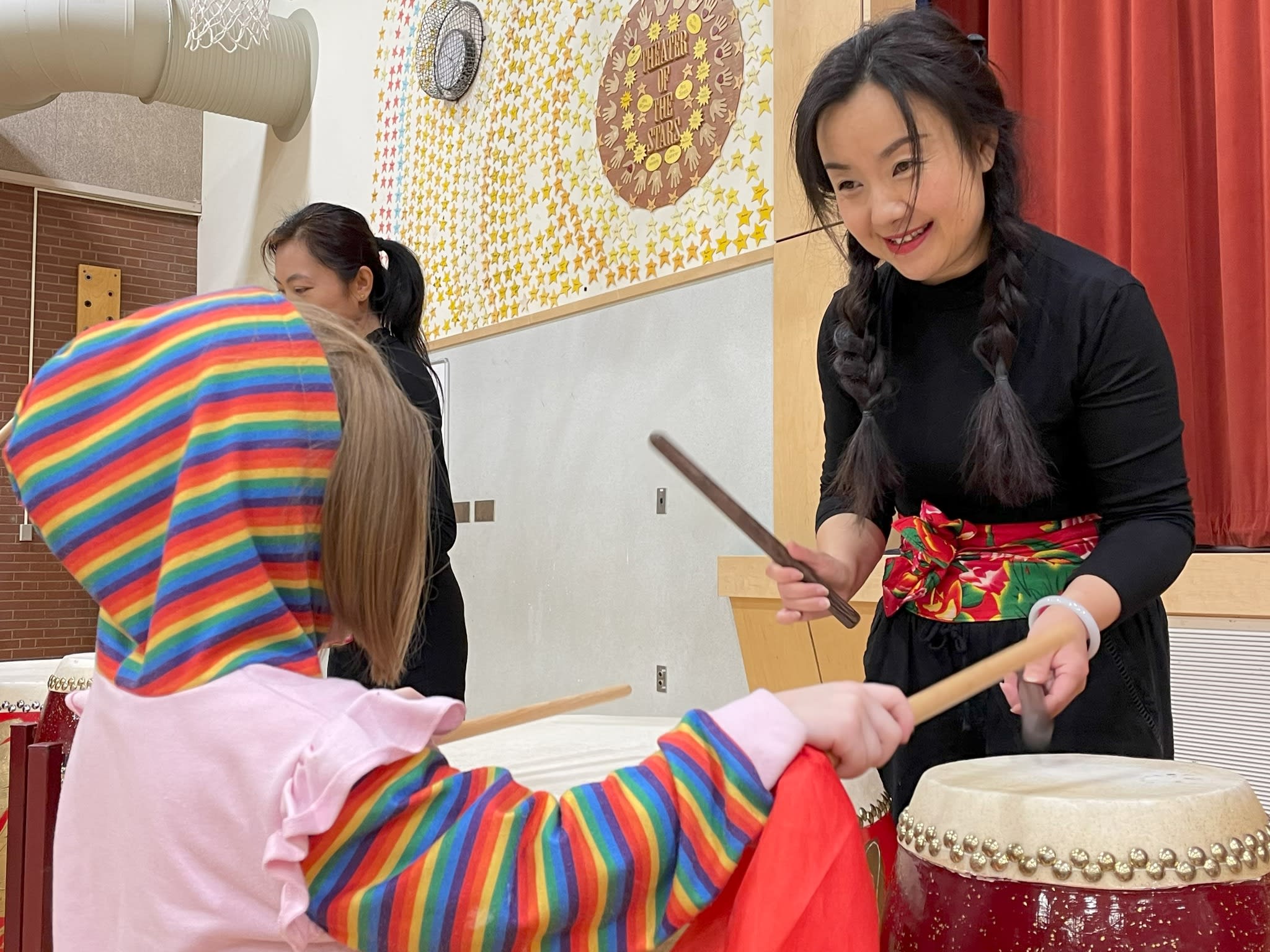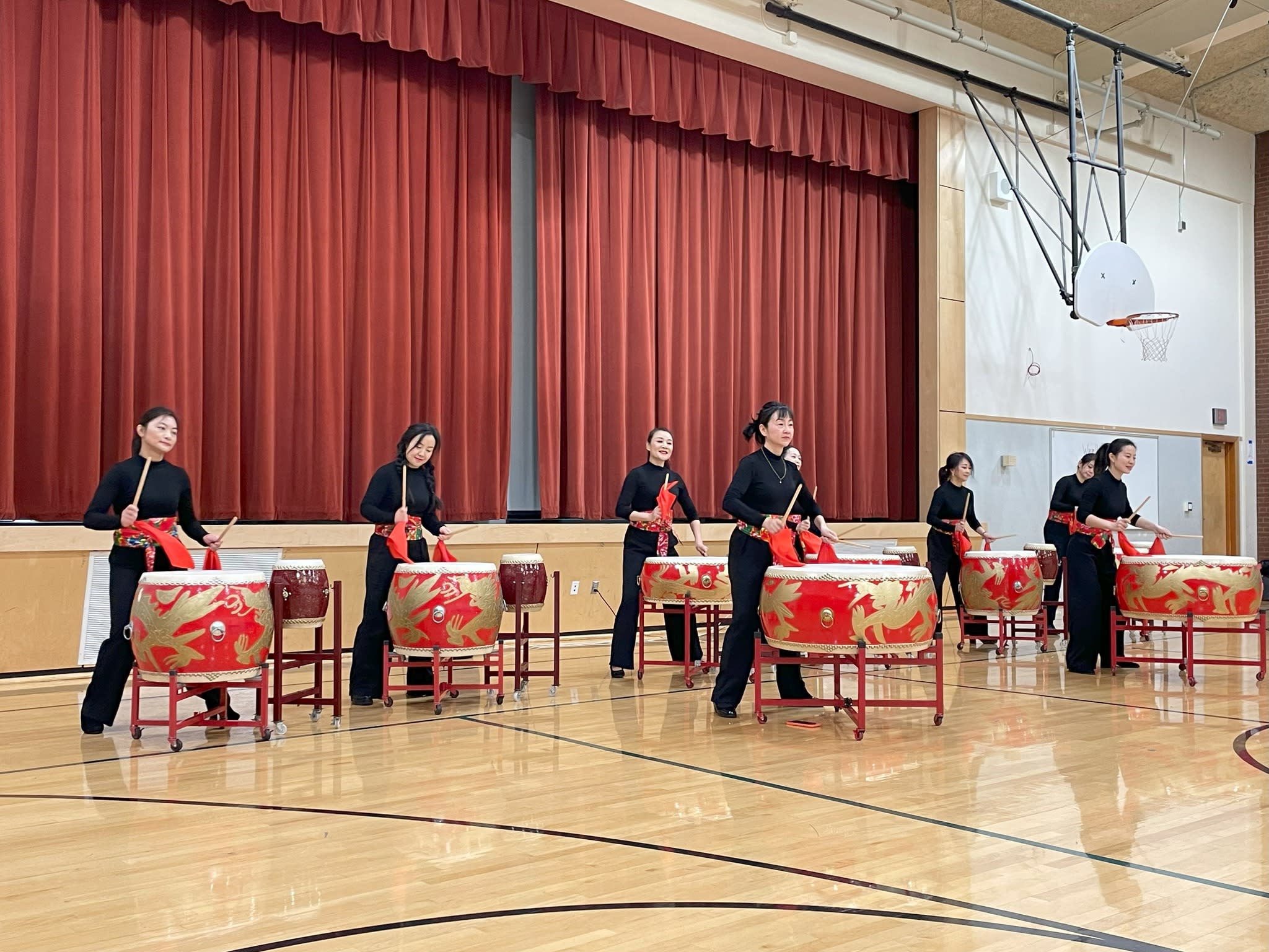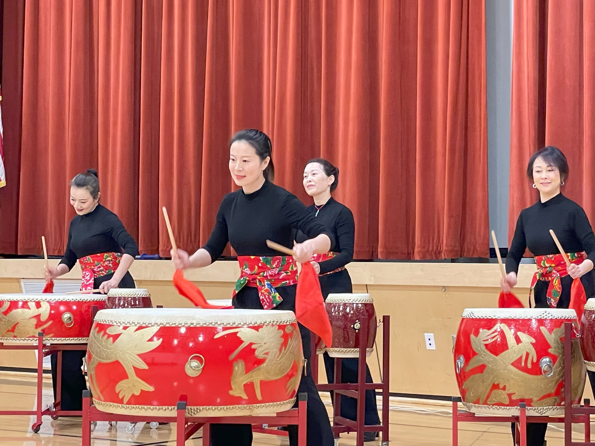 The holiday season performance debut at Bolton Primary School yesterday was a tremendous success. The students in the two Mandarin classes had the chance to learn and play drums with our Mulan Drum team members. The team also prepared a new program specifically for Lunar New Year celebrations, and it turned out to be a big hit with the students, who even asked for a second performance.