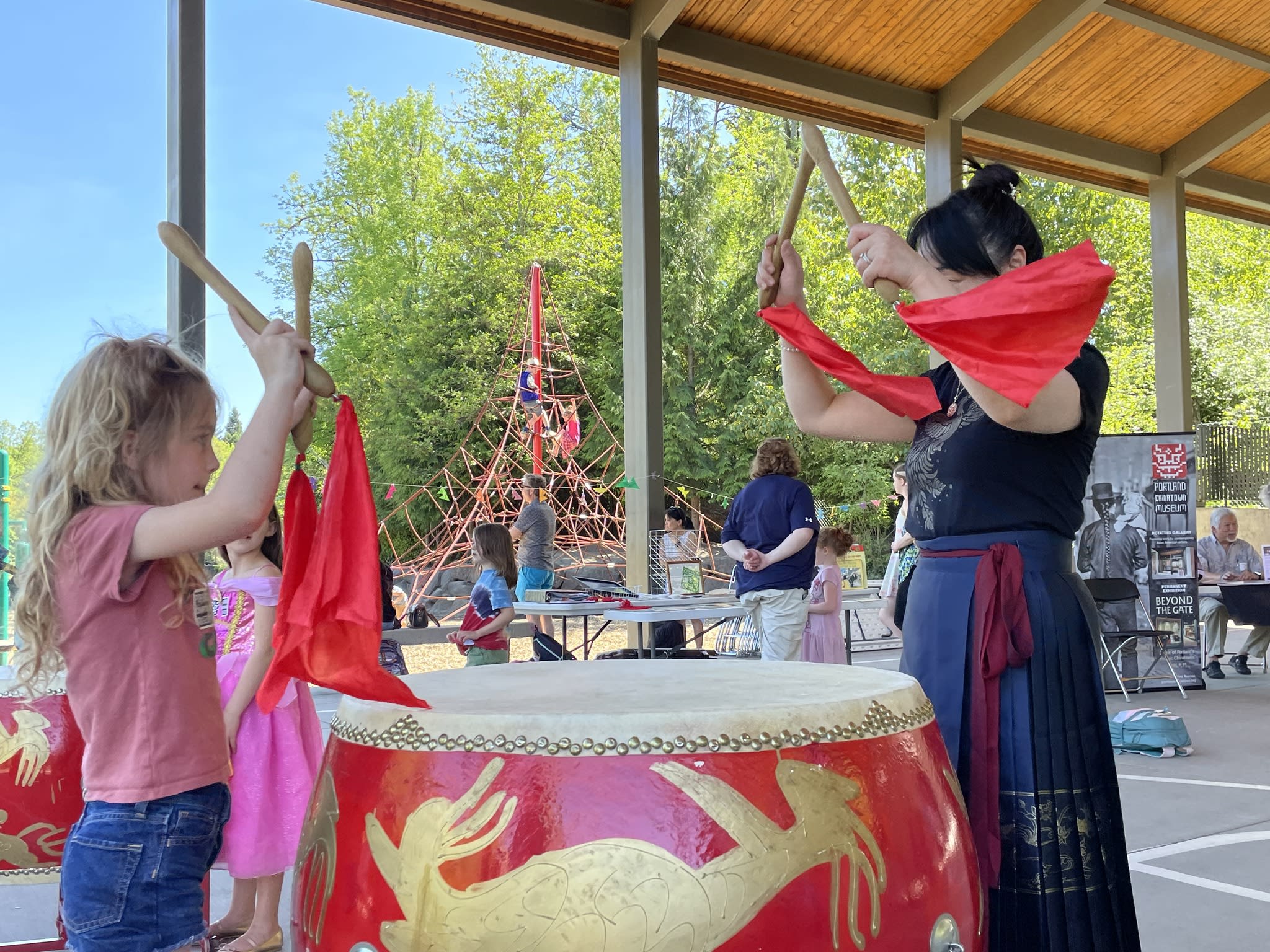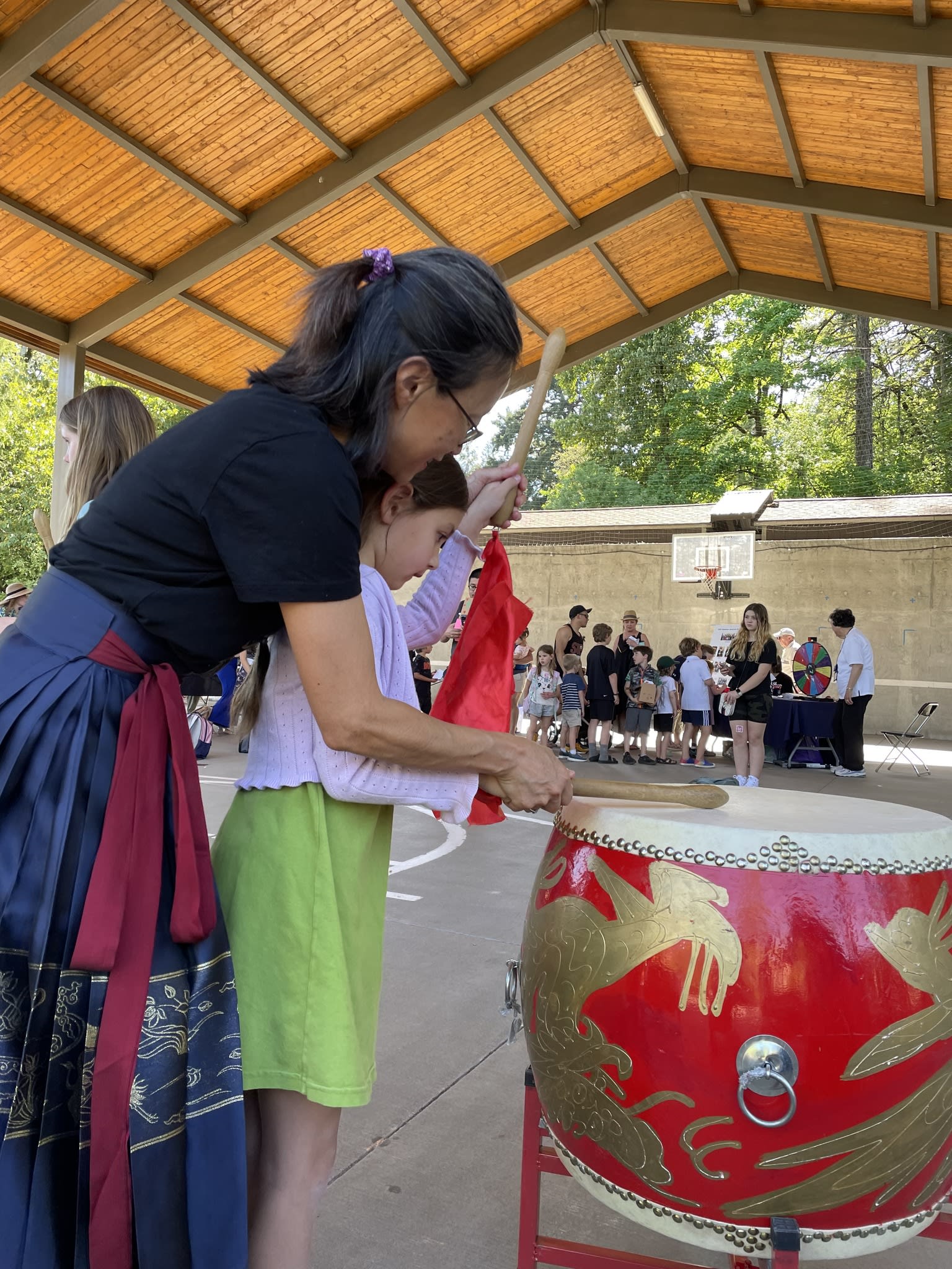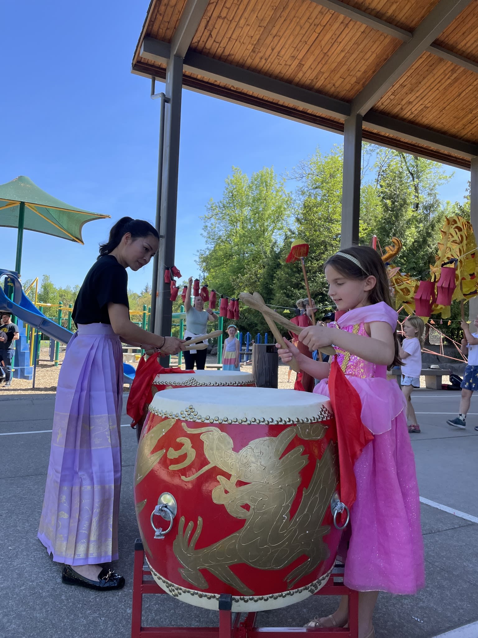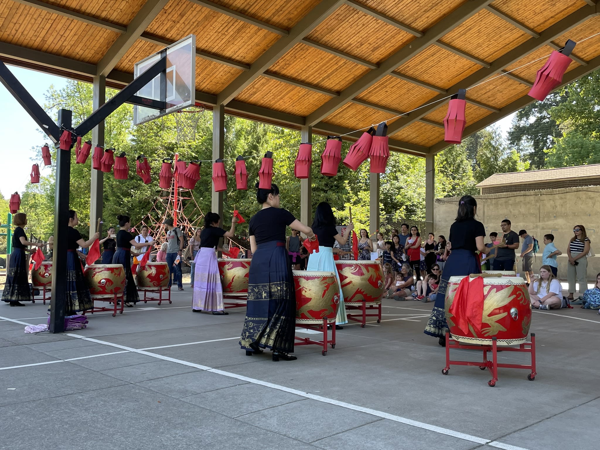 Our Mulan Drum Team and Jade Dance Team participated in the first AAPI event at Riverdale Grade School, which was organized by the Riverdale School District. We had a fantastic time and enjoyed spending time with the kids who had just completed the school day. Later, despite the small audience, our dance team students performed with the same level of quality and professionalism as they would on a larger stage. The audience were impressed to see the dancers perform their splits on the concrete floor, without any hesitation. Hats off to them!