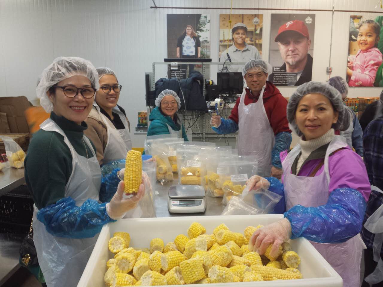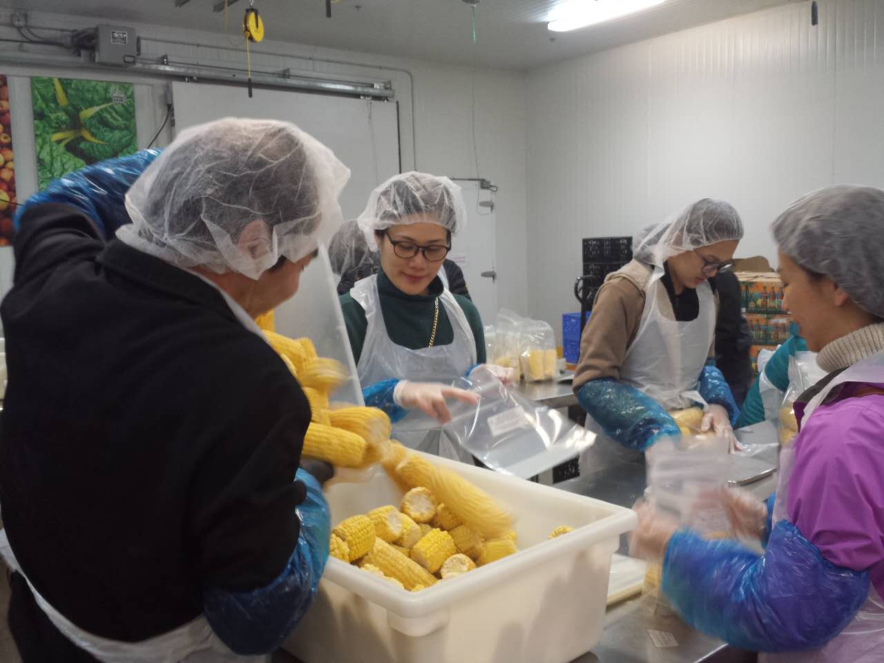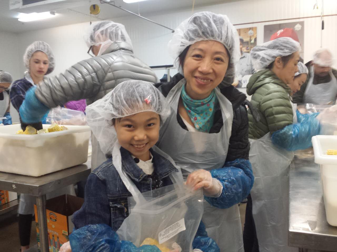Nancy这几天突然生病,还是坚持到现场帮助大家Checked in,因为要处理食物,她不能进到操作间,但是已经看到她满头的虚汗。有Nancy的鼓励,大家似乎干得非常的投入,结束的时候,负责的义工说比她预估的提前了15分钟完成了所有食物分袋。