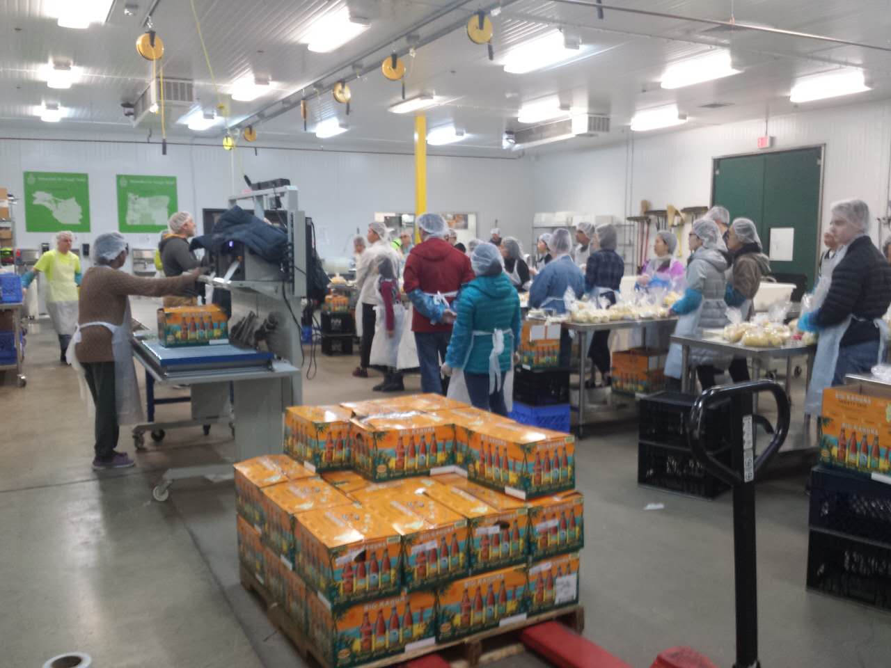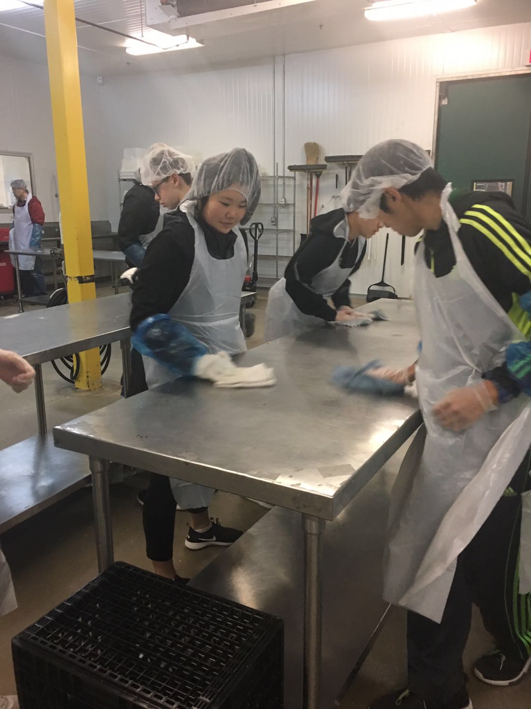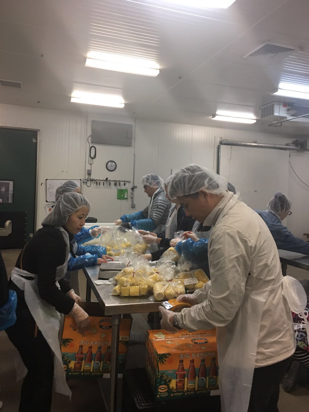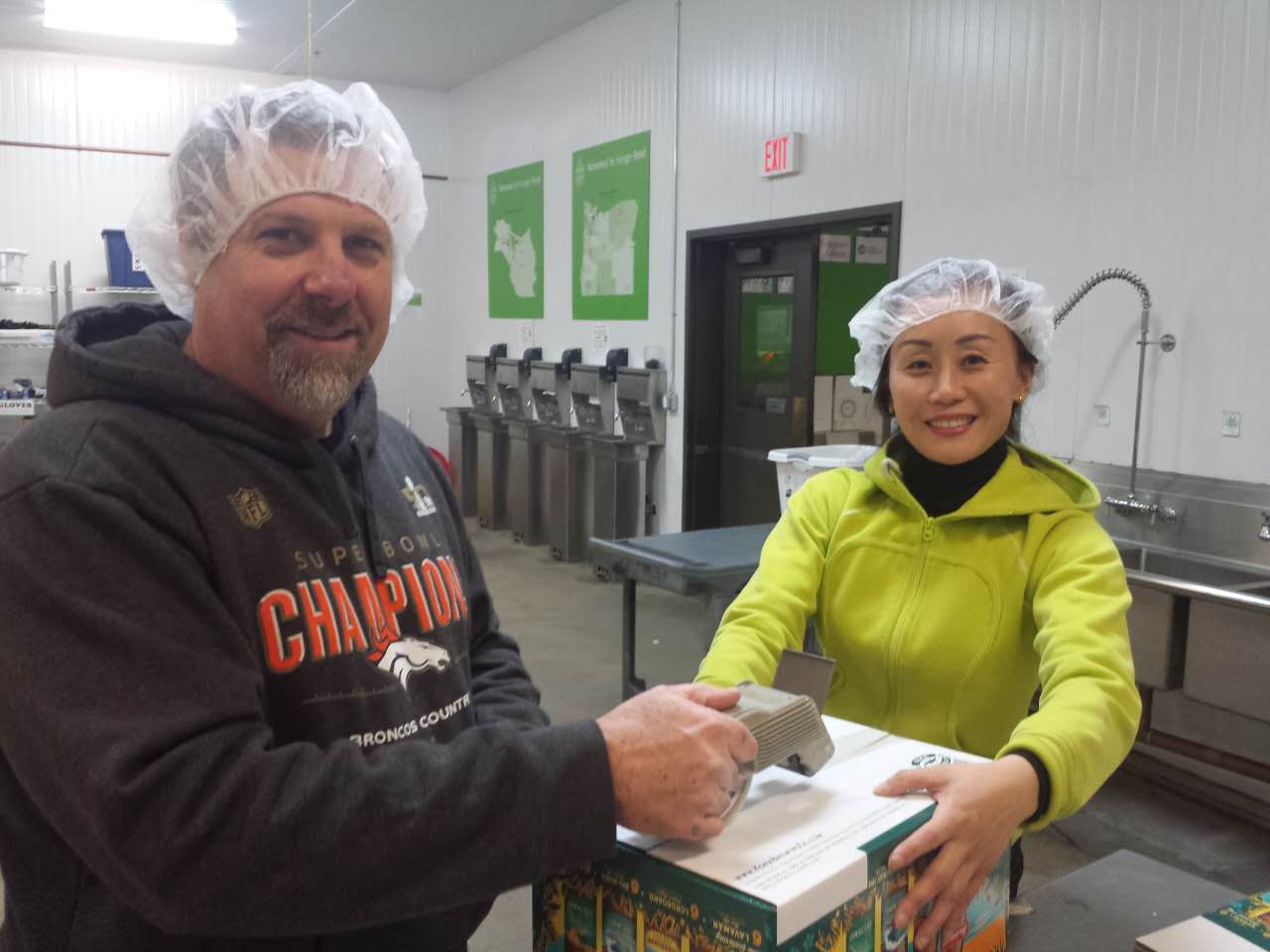 Nancy这几天突然生病,还是坚持到现场帮助大家Checked in,因为要处理食物,她不能进到操作间,但是已经看到她满头的虚汗。有Nancy的鼓励,大家似乎干得非常的投入,结束的时候,负责的义工说比她预估的提前了15分钟完成了所有食物分袋。