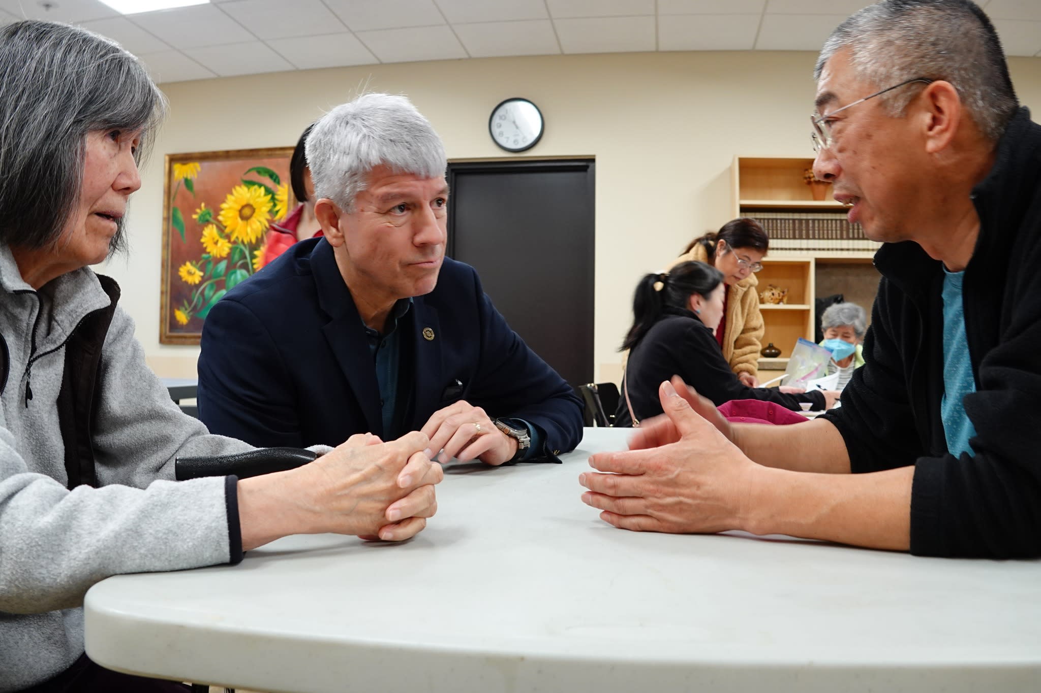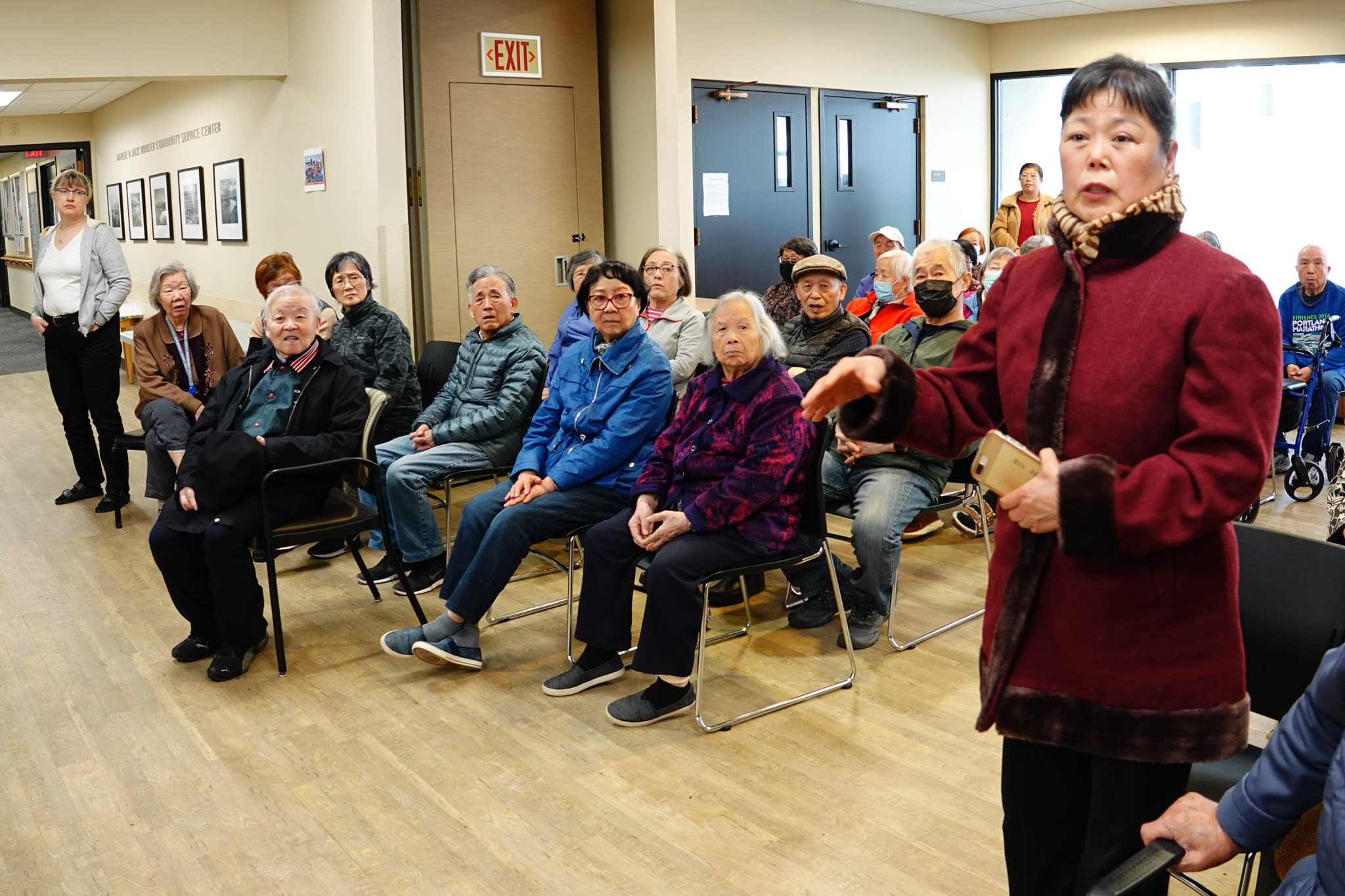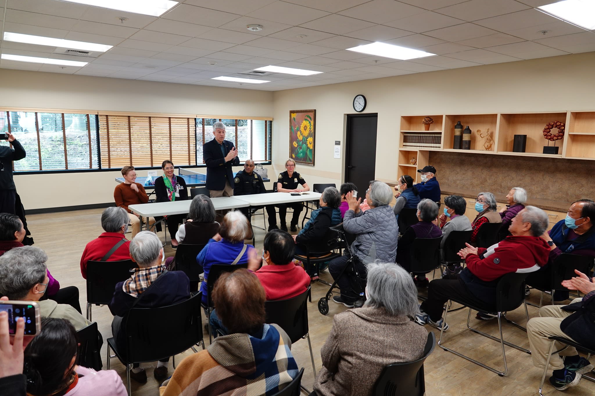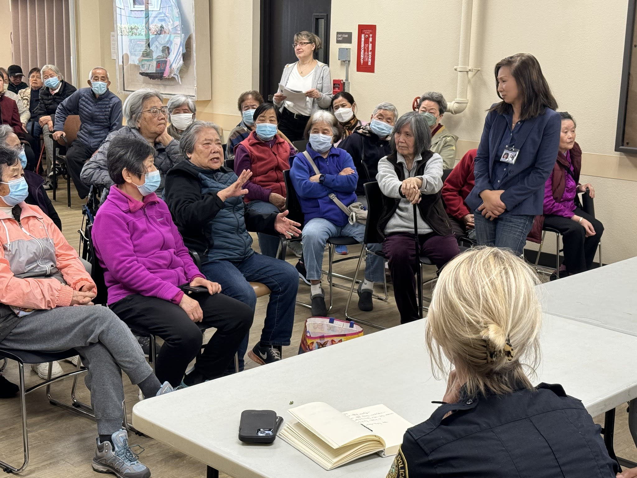 今天上午,波特兰警局的高级官员如期前往市中心的12街,拜访了华裔长者并举行了座谈会。这个想法是在看望梁先生之后由警局提出的,但他们没有预料到大家的参与热情如此高涨。不仅有六七十位老人出席,而且大家都积极参与了讨论。令人钦佩的是,尽管话题棘手,老人们讲话时仍然保持了风度。他们的发言逻辑清晰,并不完全是为了自己甚至是为了华人社区考虑。警局官员对老人们的理性表现给予了热情的回应,表示愿意与市中心分局讨论加强老人公寓周边和去Safeway购物途中的警力。