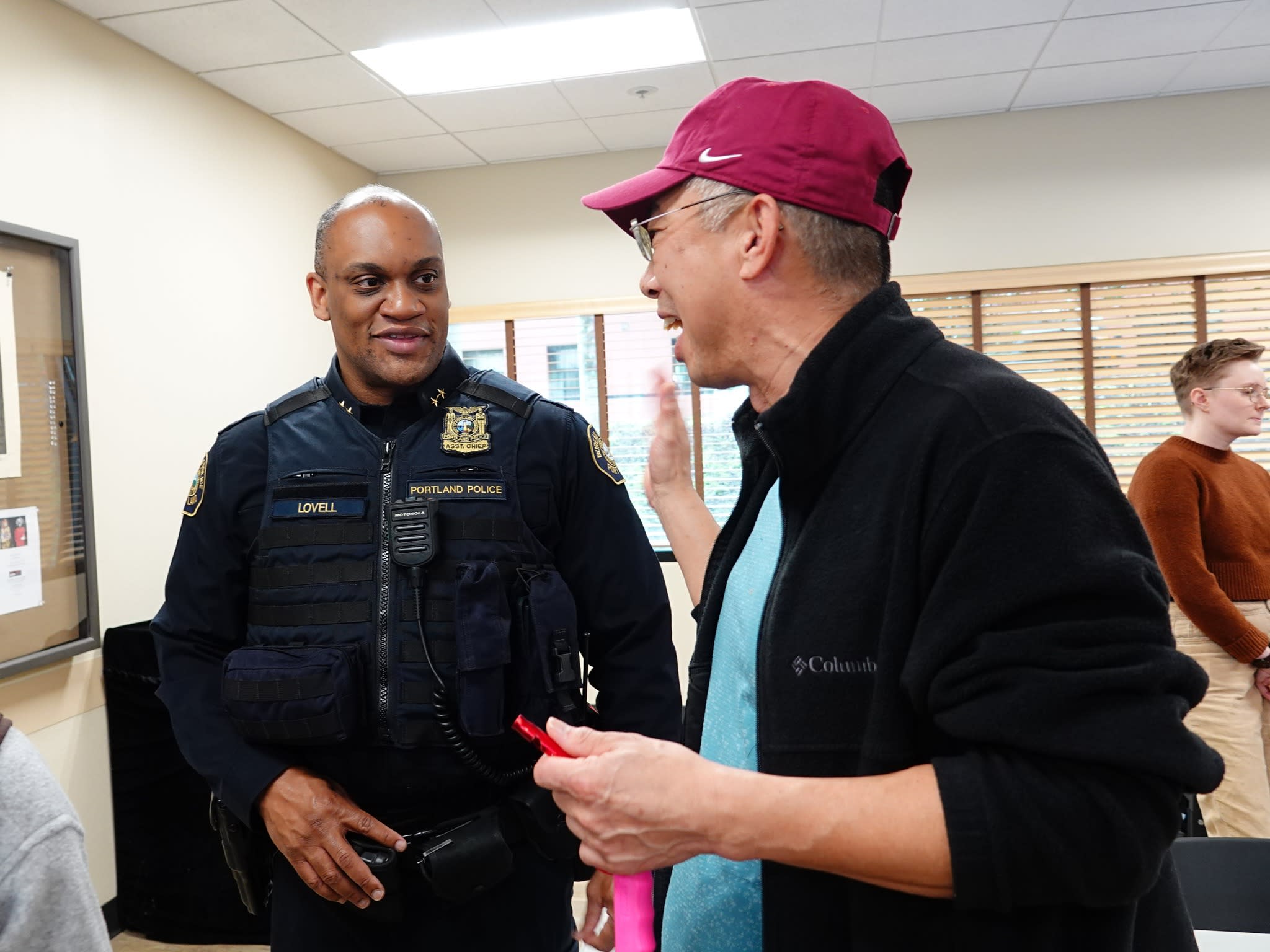 Today, Chief Lovell, Mr. Robert King, Chief of Staff, Officer Natasha Haunsperger, and two victim advocates from the Portland Police Bureau visited a senior apartment downtown and engaged in a highly constructive dialogue with Chinese American seniors regarding their safety concerns following recent brutal attacks on residents. Chief Lovell pledged to enhance police visibility in the area. OCC has distributed safety whistles bearing the community hotline number and unique IDs to provide better support in their native language, along with volunteers from their community.