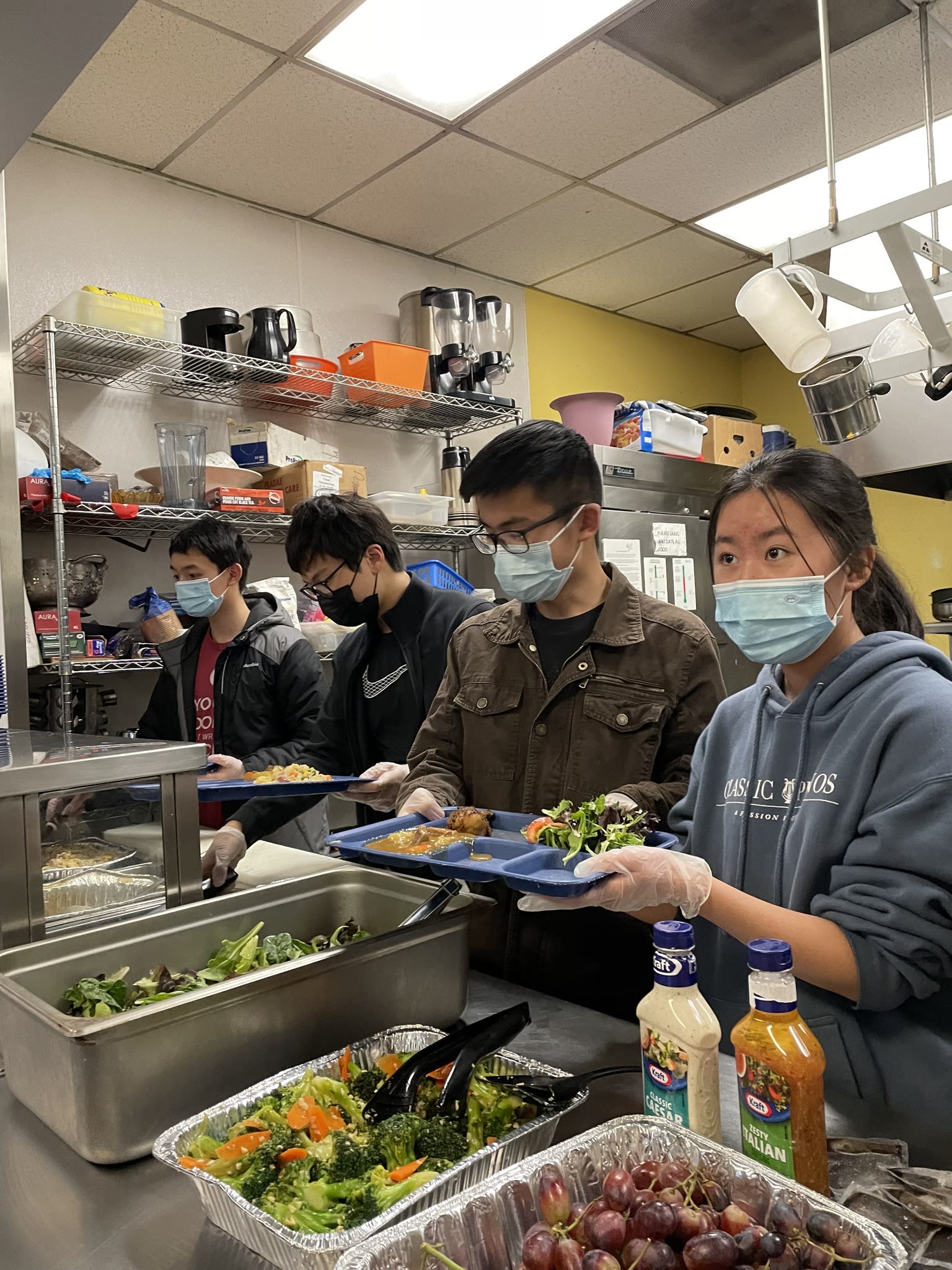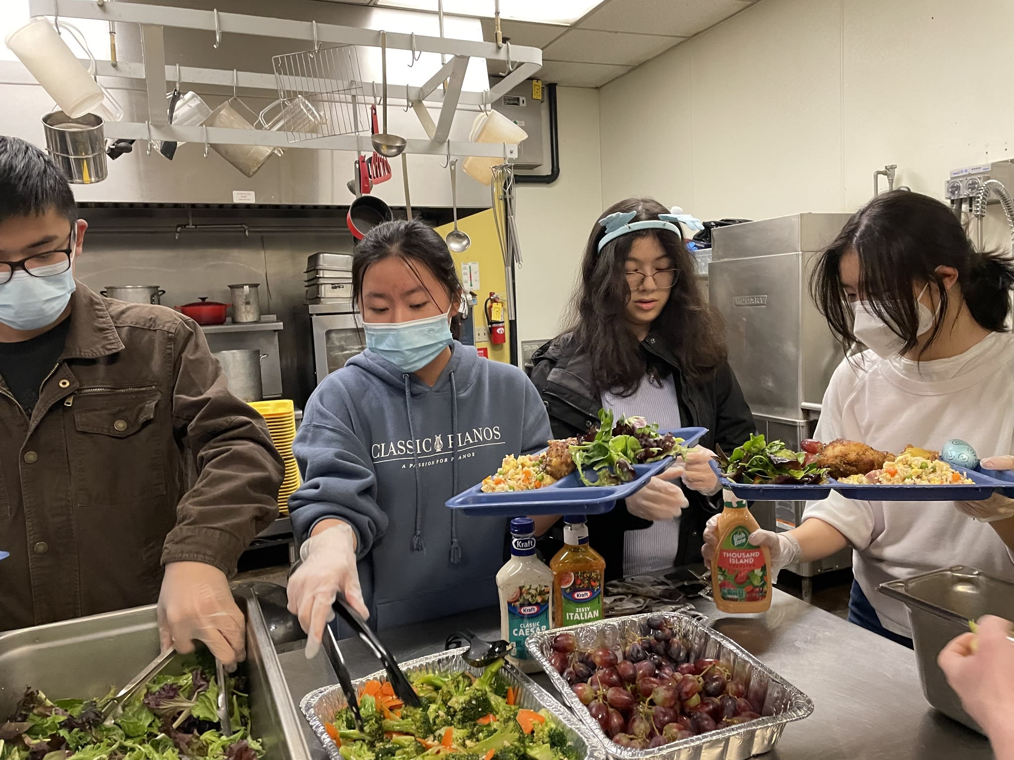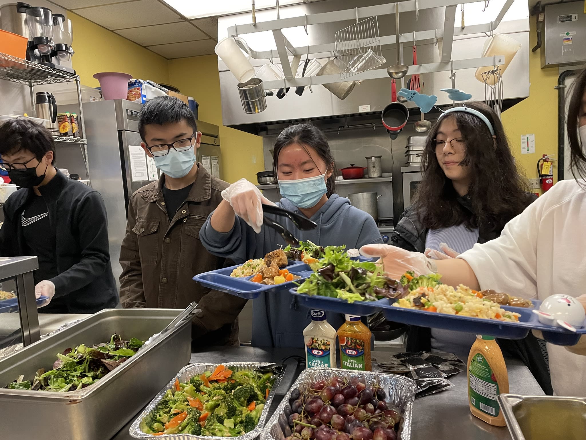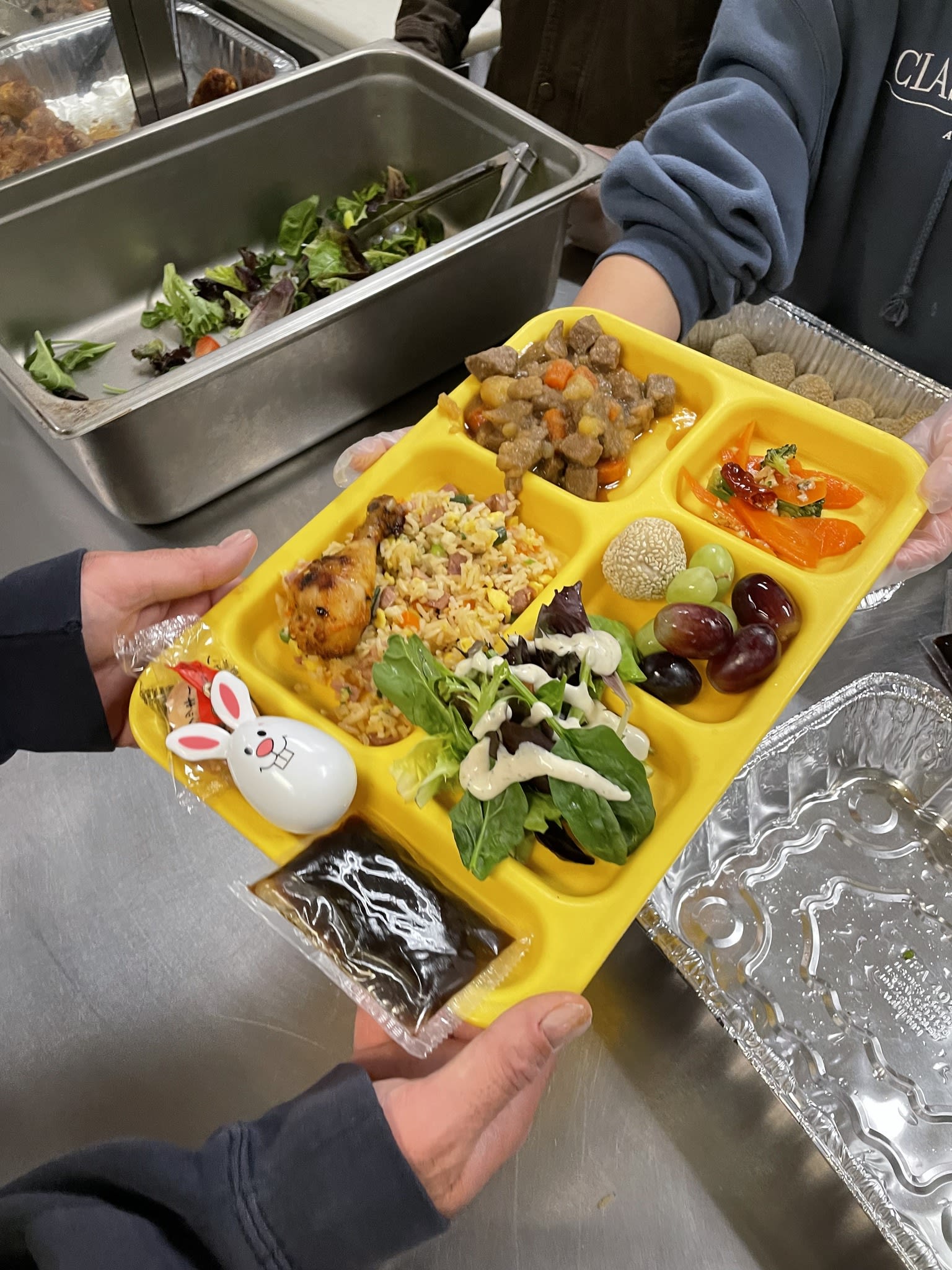 It was another unforgettable evening. Ten families from the community took the turn to prepare delicious and healthy Chinese food for the residents in the Clark Center. Seven high school students were there serving food and had the opportunity to talk to the residents. Once again, the dishes could not fit the counter. The students had to deliver the sesame balls, fortune cookies and the Easter eggs to the people sitting at the tables.