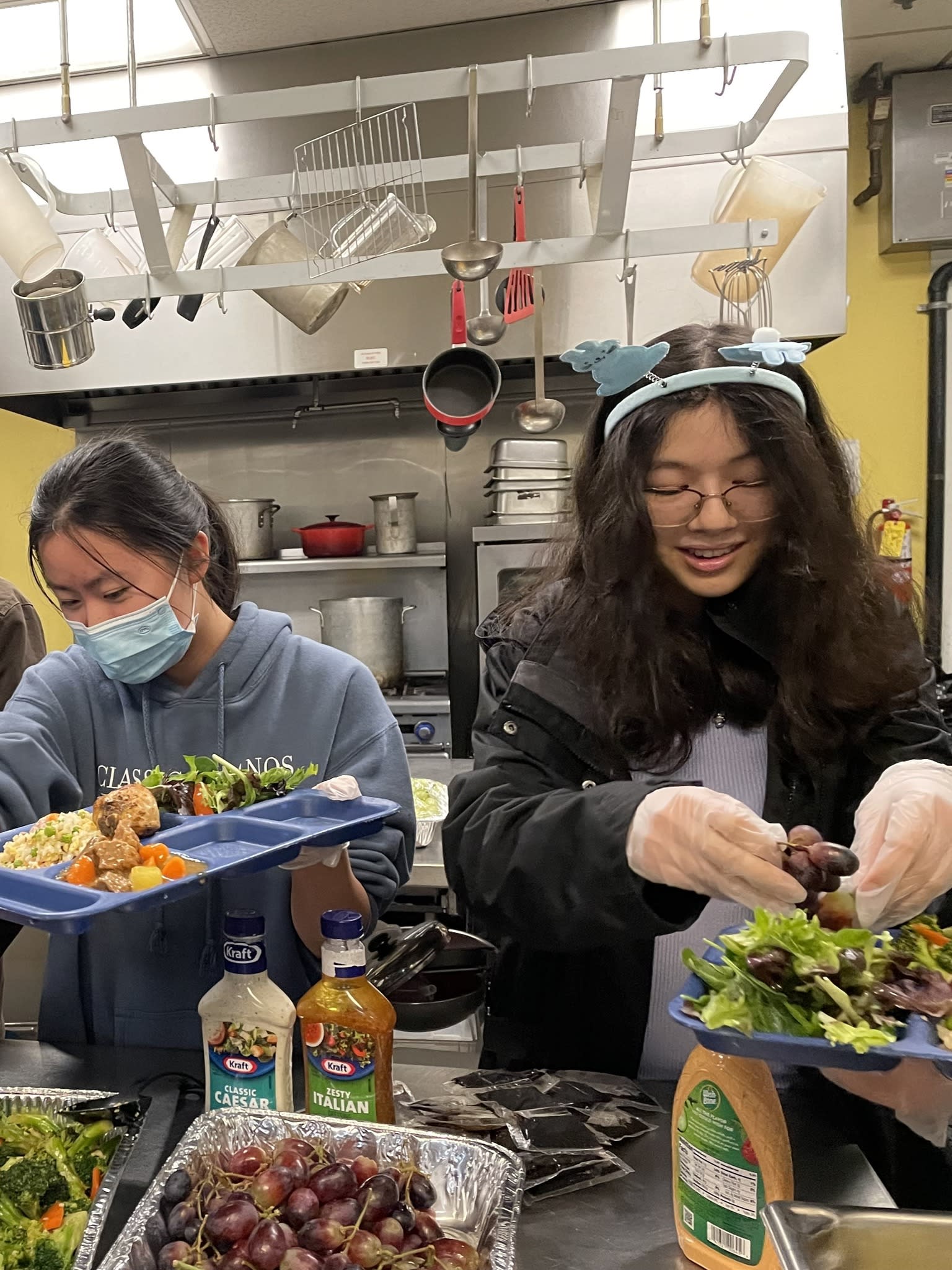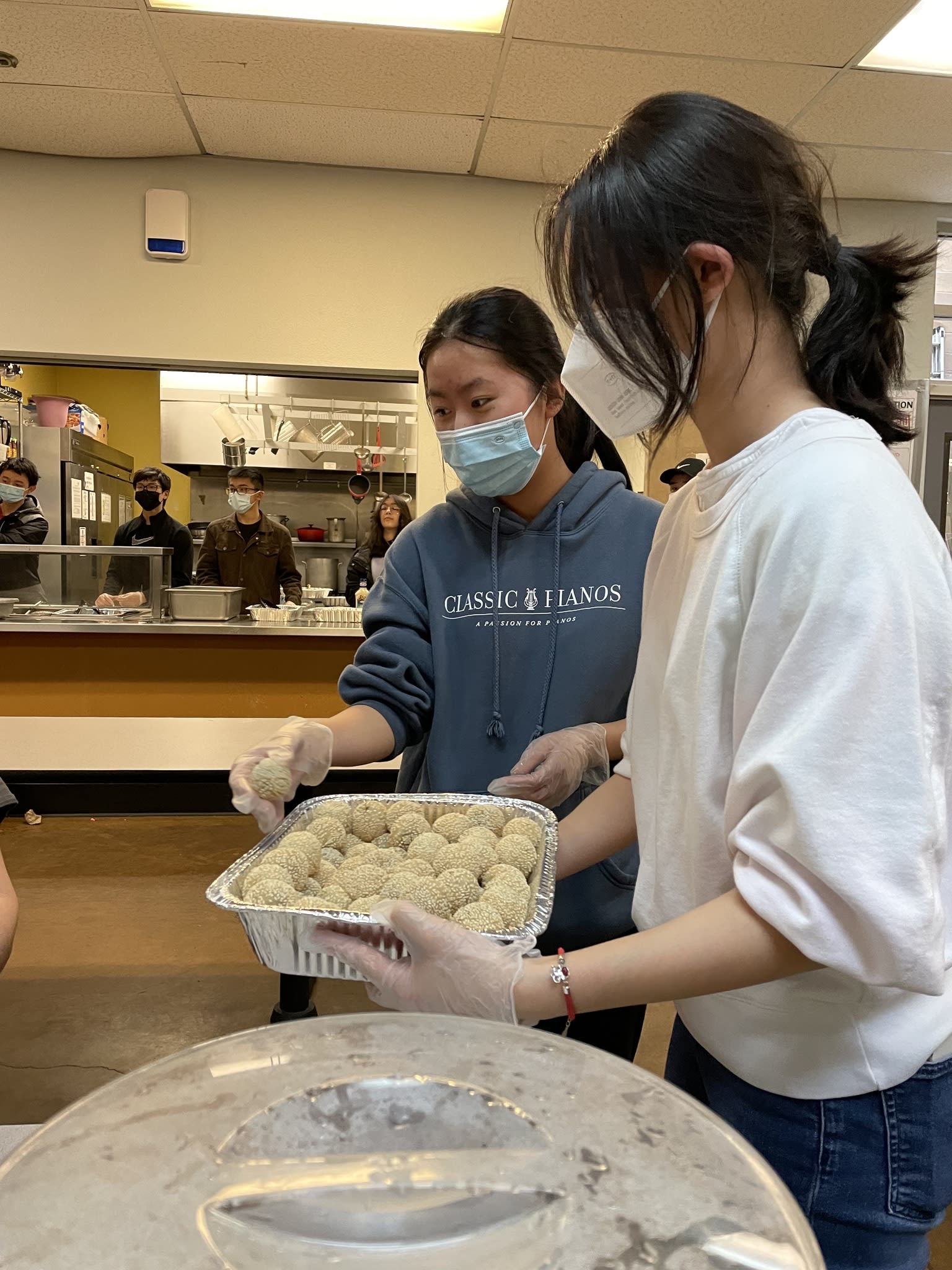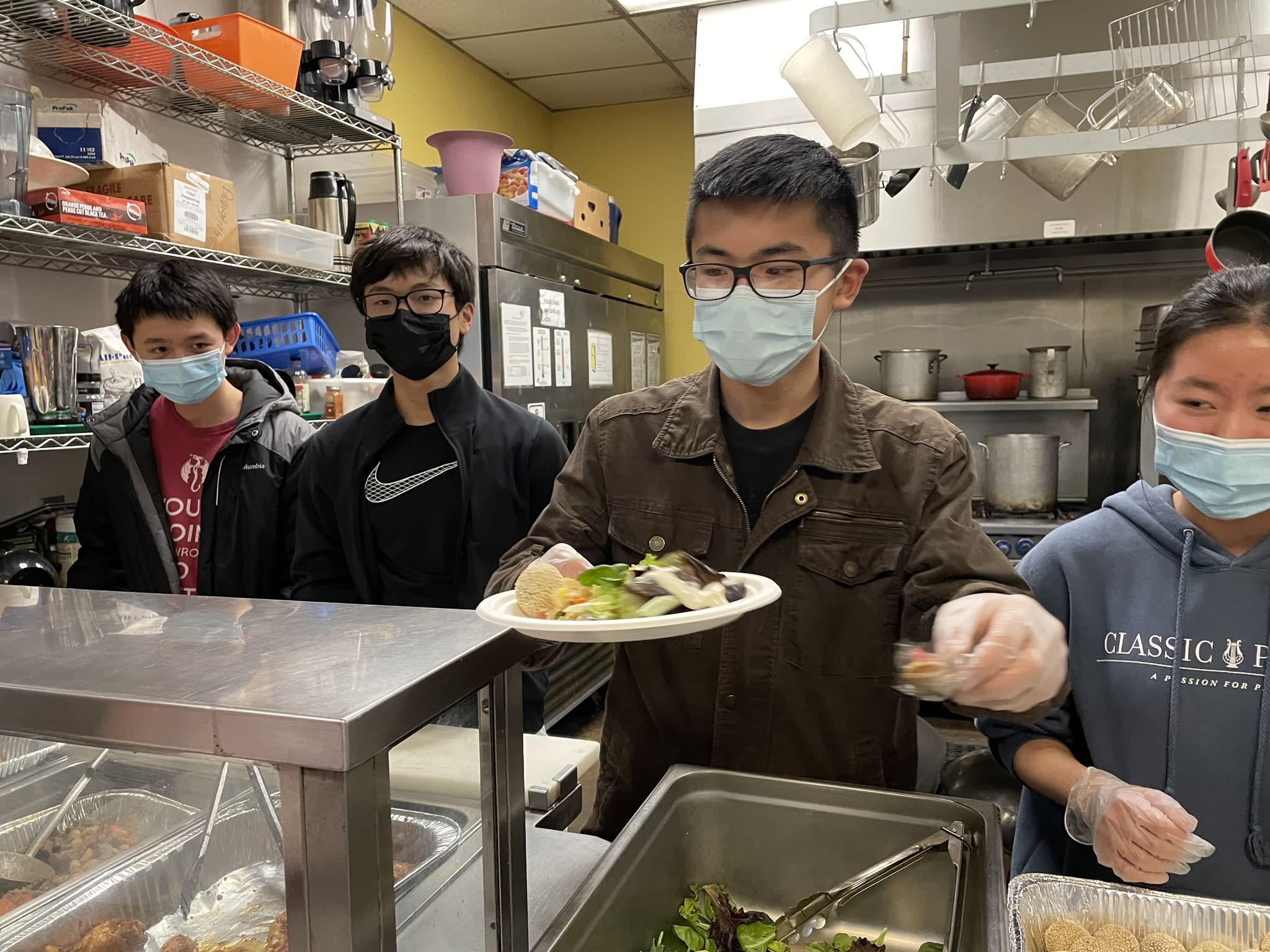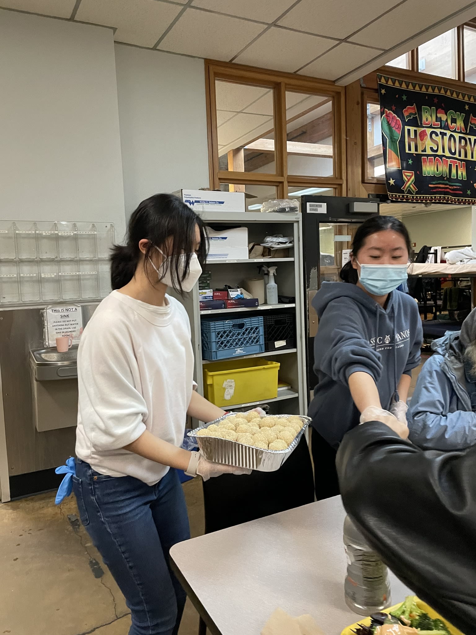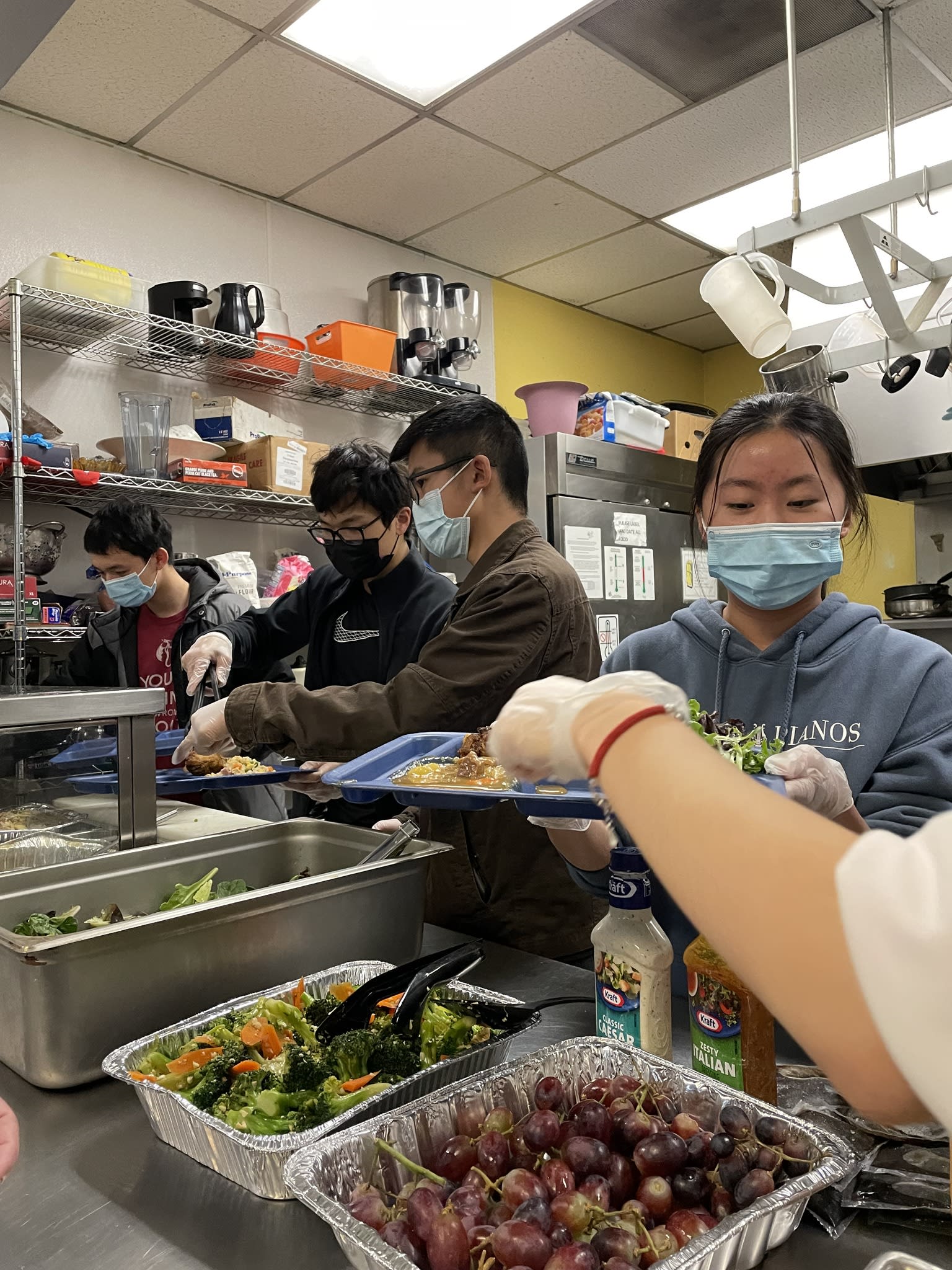 It was another unforgettable evening. Ten families from the community took the turn to prepare delicious and healthy Chinese food for the residents in the Clark Center. Seven high school students were there serving food and had the opportunity to talk to the residents. Once again, the dishes could not fit the counter. The students had to deliver the sesame balls, fortune cookies and the Easter eggs to the people sitting at the tables.