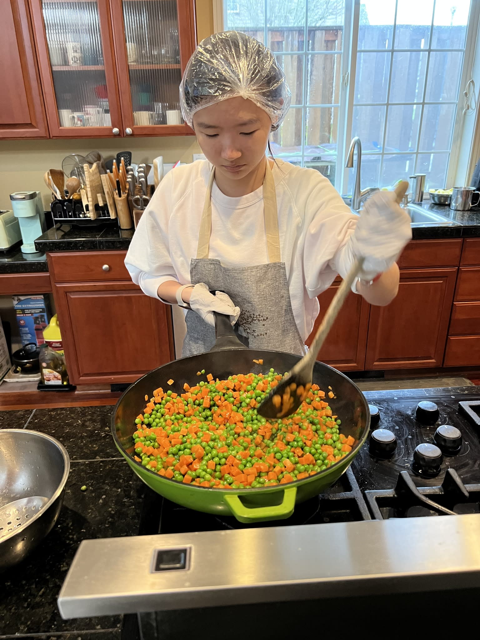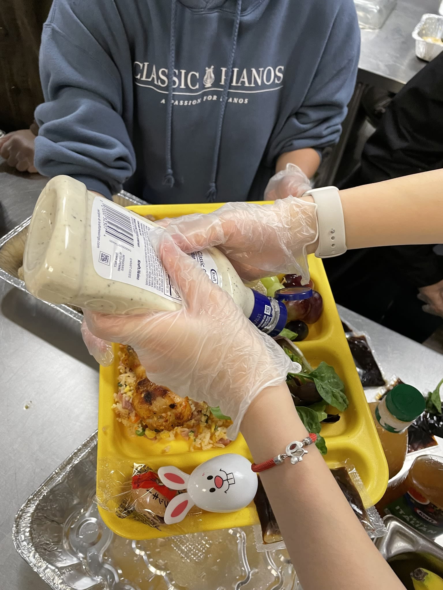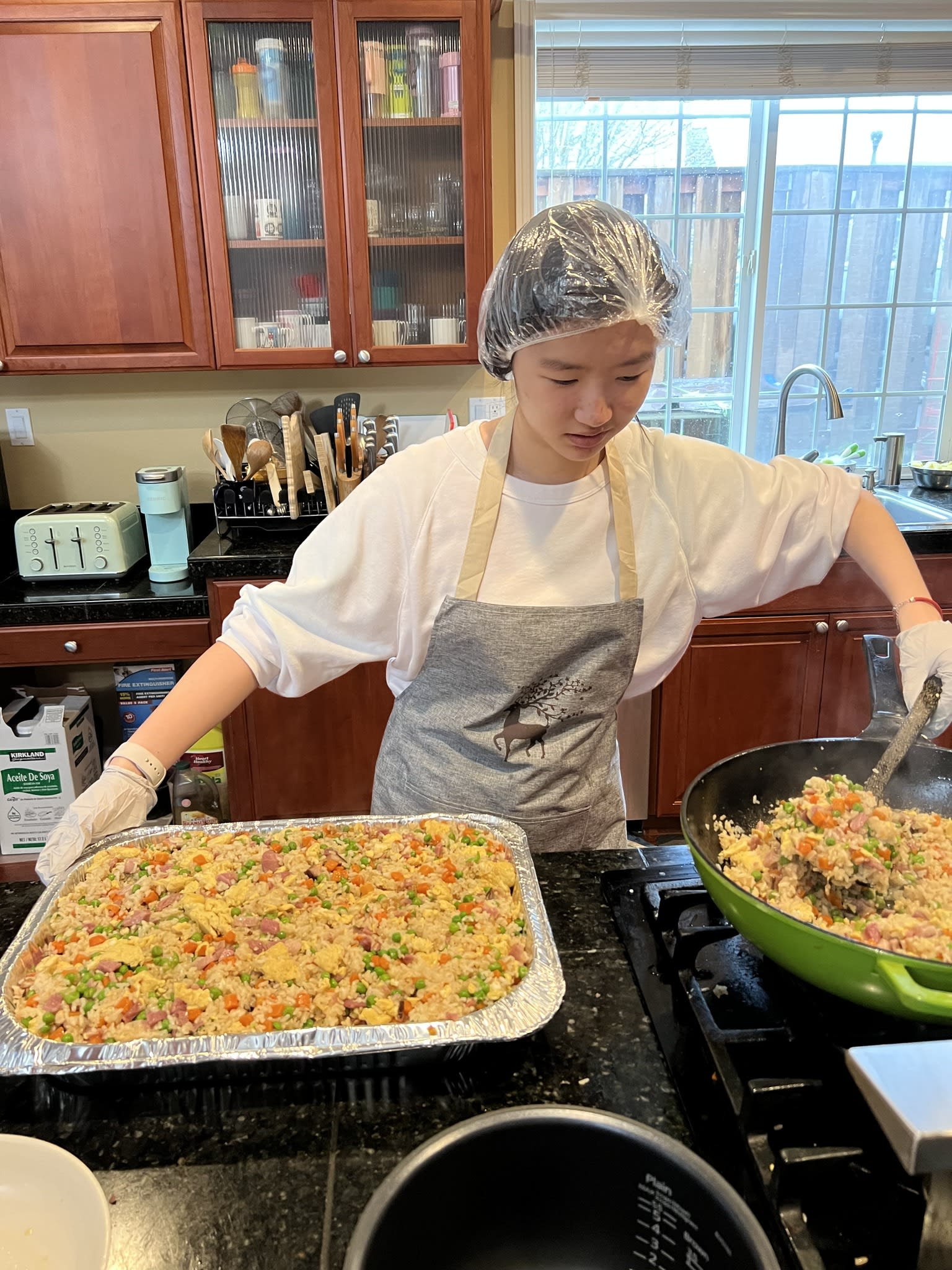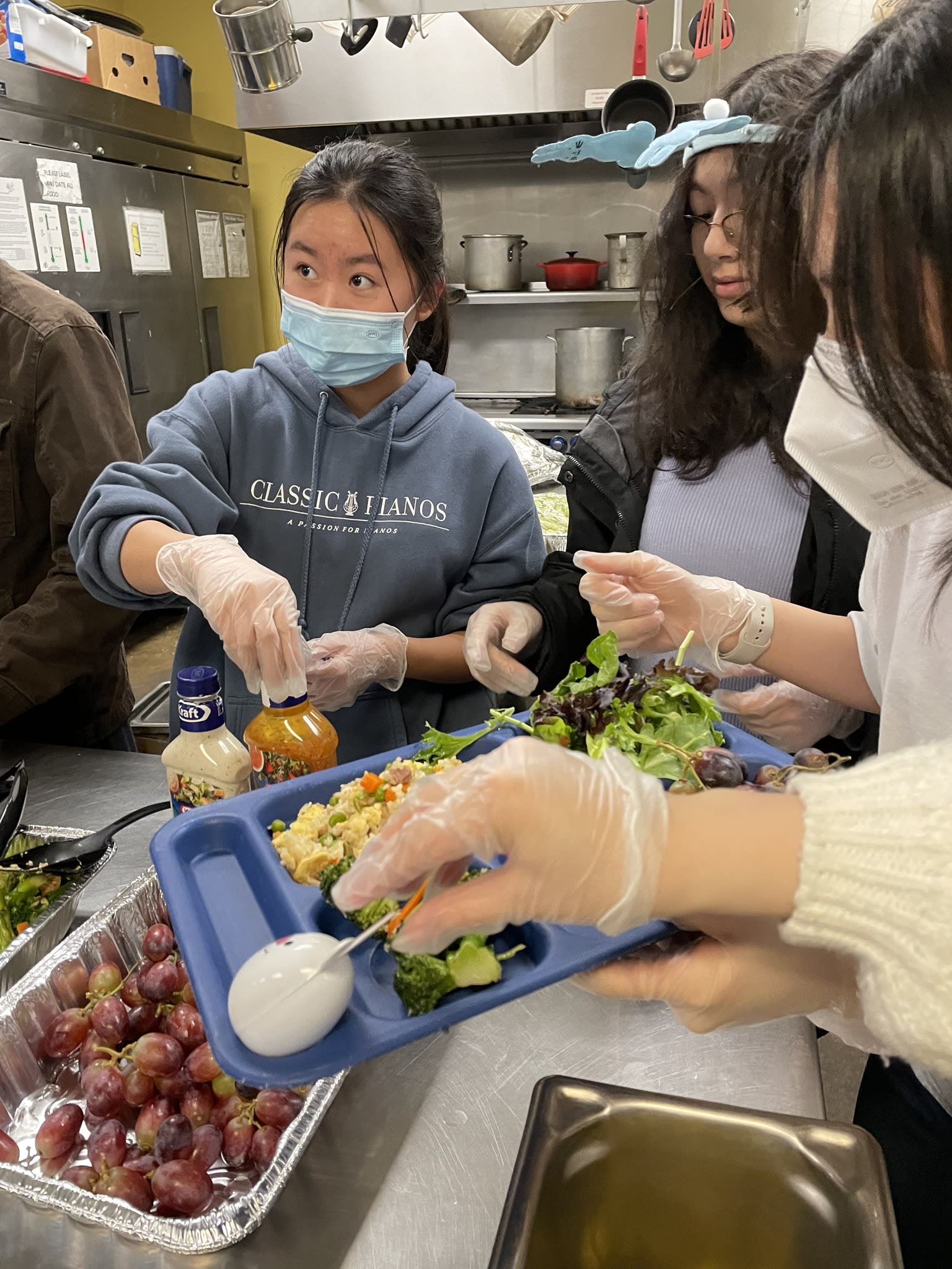 It was another unforgettable evening. Ten families from the community took the turn to prepare delicious and healthy Chinese food for the residents in the Clark Center. Seven high school students were there serving food and had the opportunity to talk to the residents. Once again, the dishes could not fit the counter. The students had to deliver the sesame balls, fortune cookies and the Easter eggs to the people sitting at the tables.