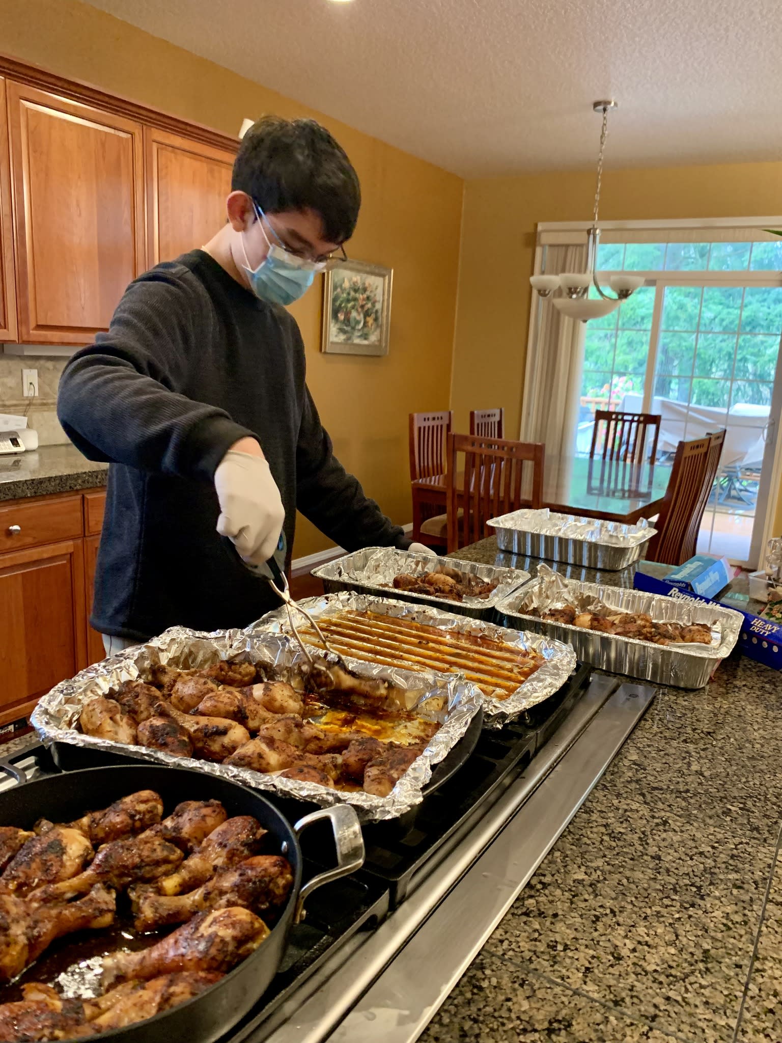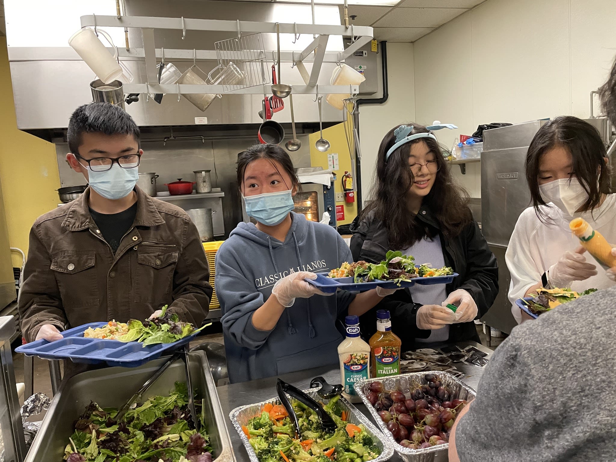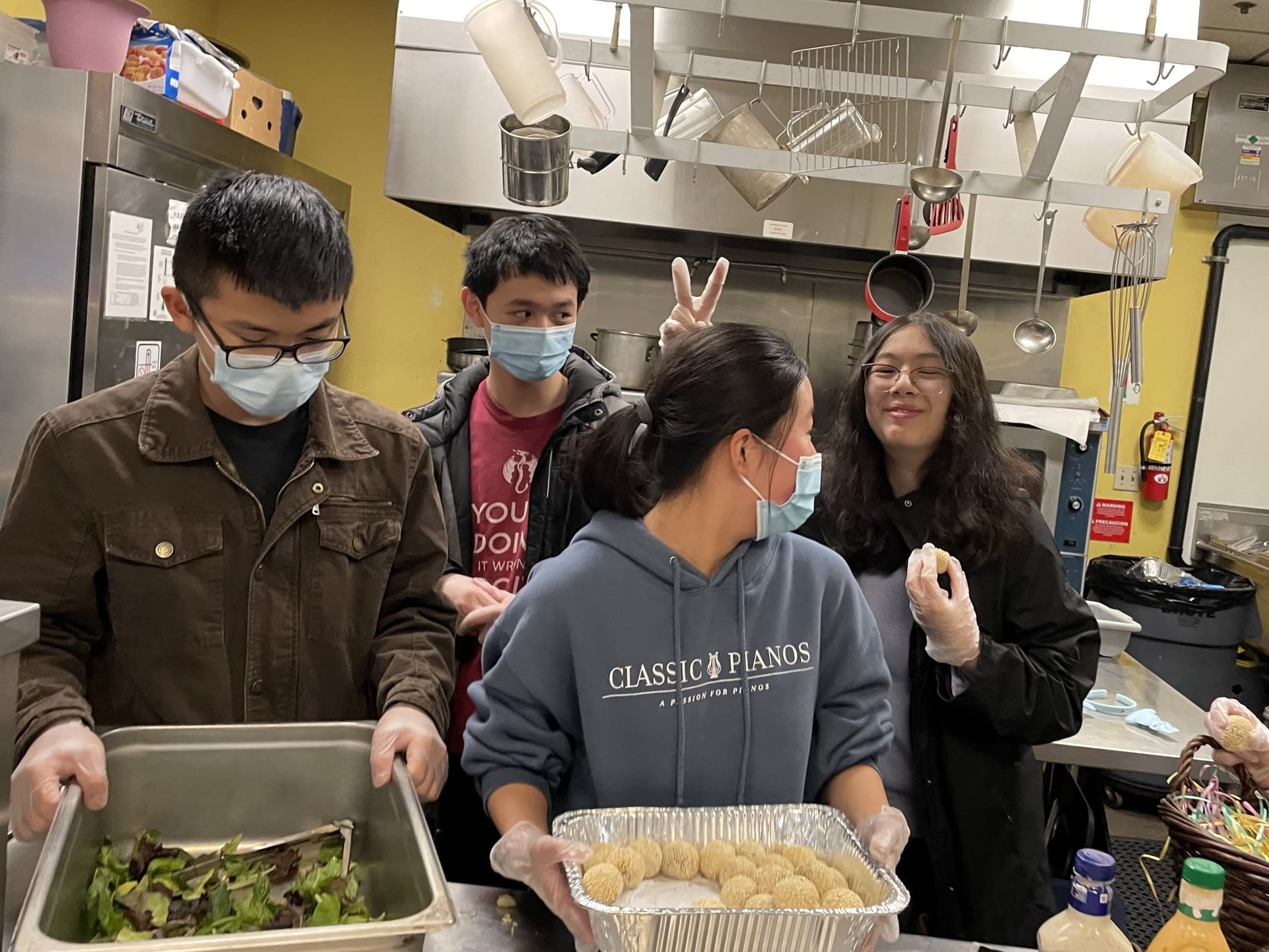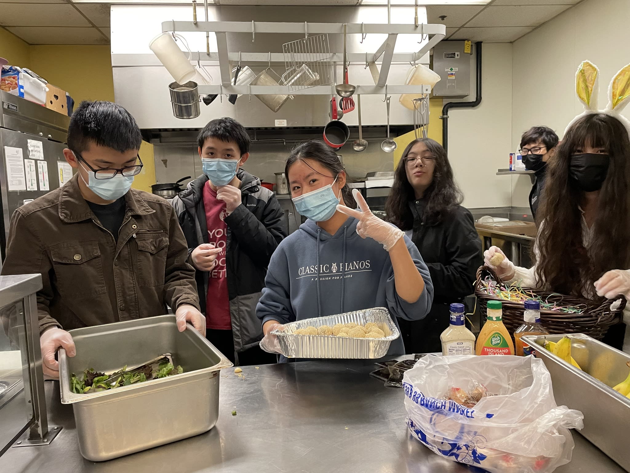 今天是每月一次在庇护所提供晚餐的日子,一共有10个家庭参加,家长做后盾,让孩子们亲自动手准备食物,结果又是一顿美味大餐,从炒饭,土豆烧牛肉,烤鸡腿,生熟蔬菜,到芝麻球,幸运饼干,因为正赶上复活节,还特意手工制作了复活节彩蛋。7位中学生有幸在庇护所派饭,和那里的居民亲切互动。“好吃,太好吃了”,情不自禁的话语不断传过来。实话实说,看着盘中丰富的菜肴,相信已经赶上了我们节日家中的晚餐。说得好,『德不孤,必有邻』,将心比心,我们是在用爱回答生活中的挑战,展现出来的是我们社区的智慧。