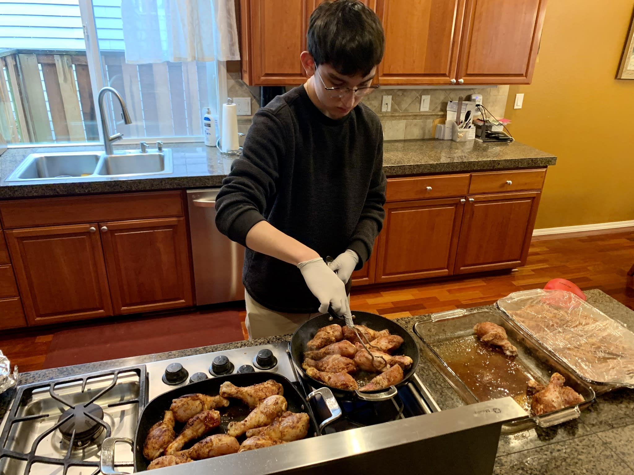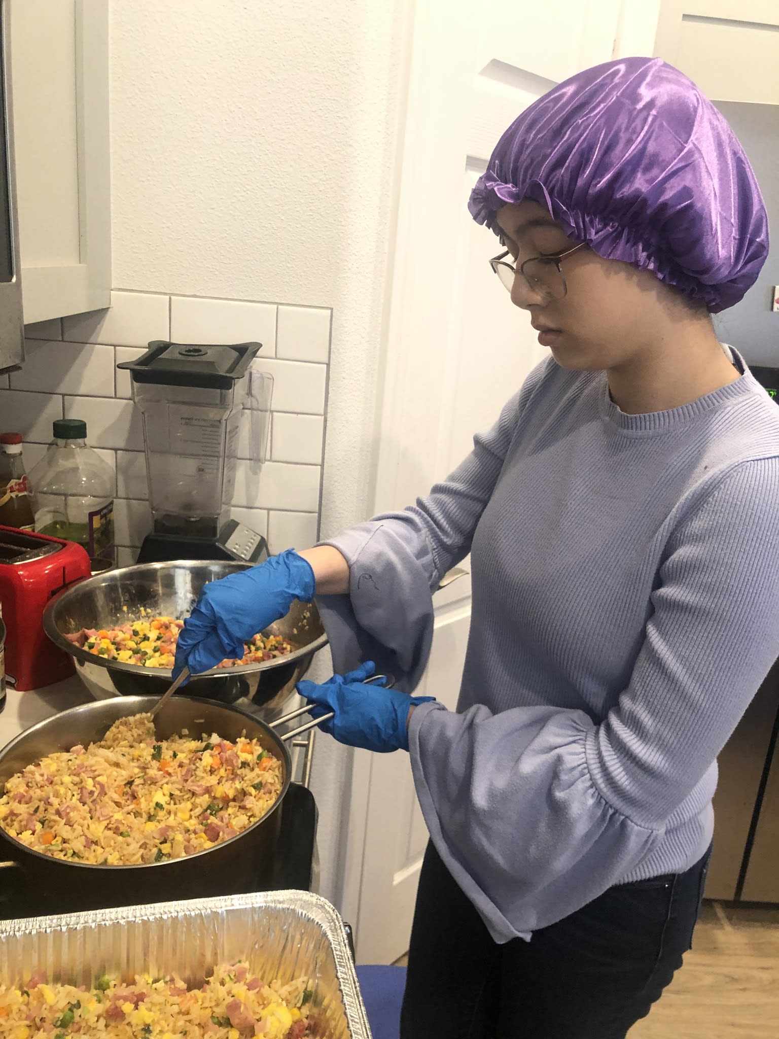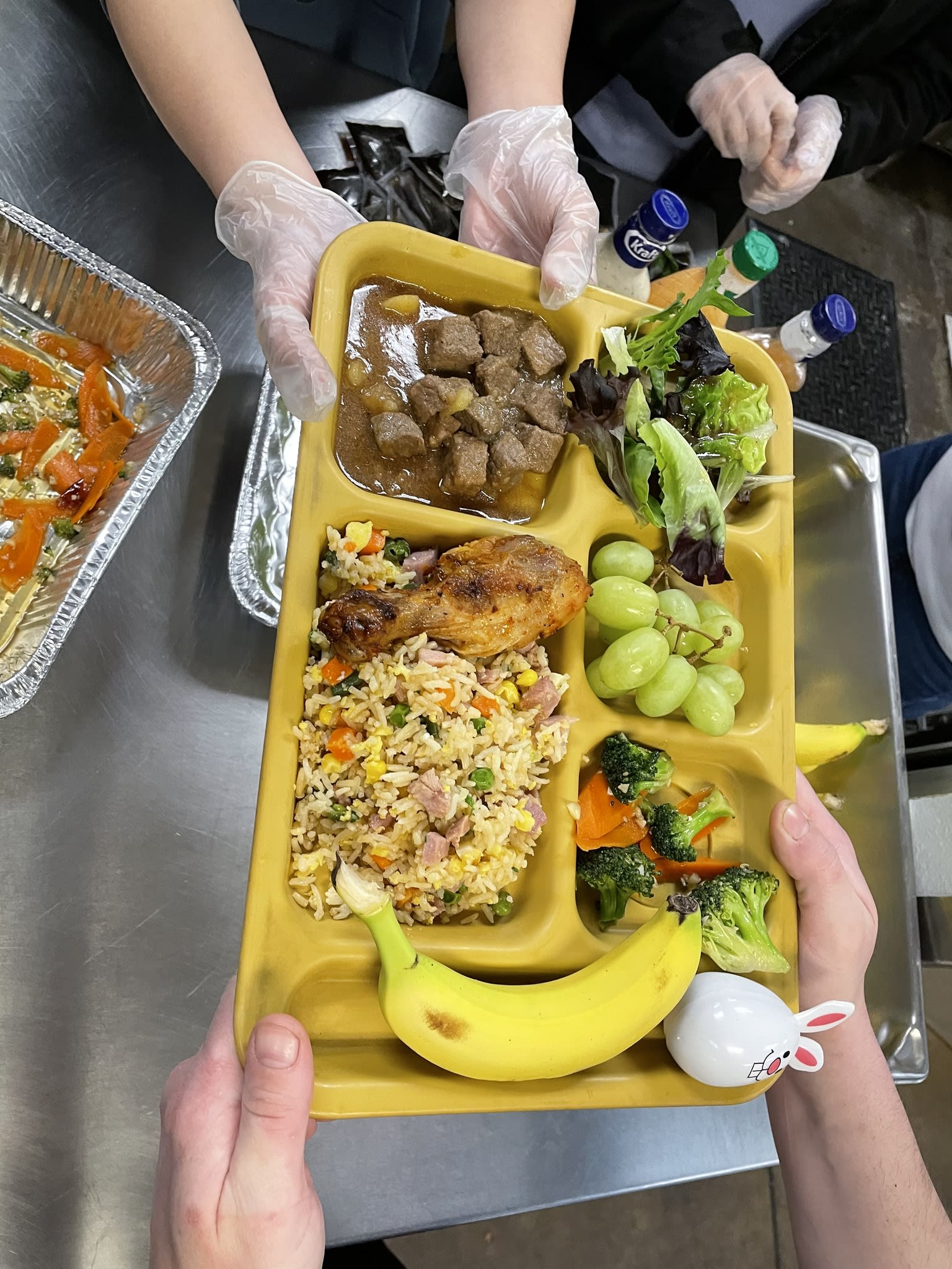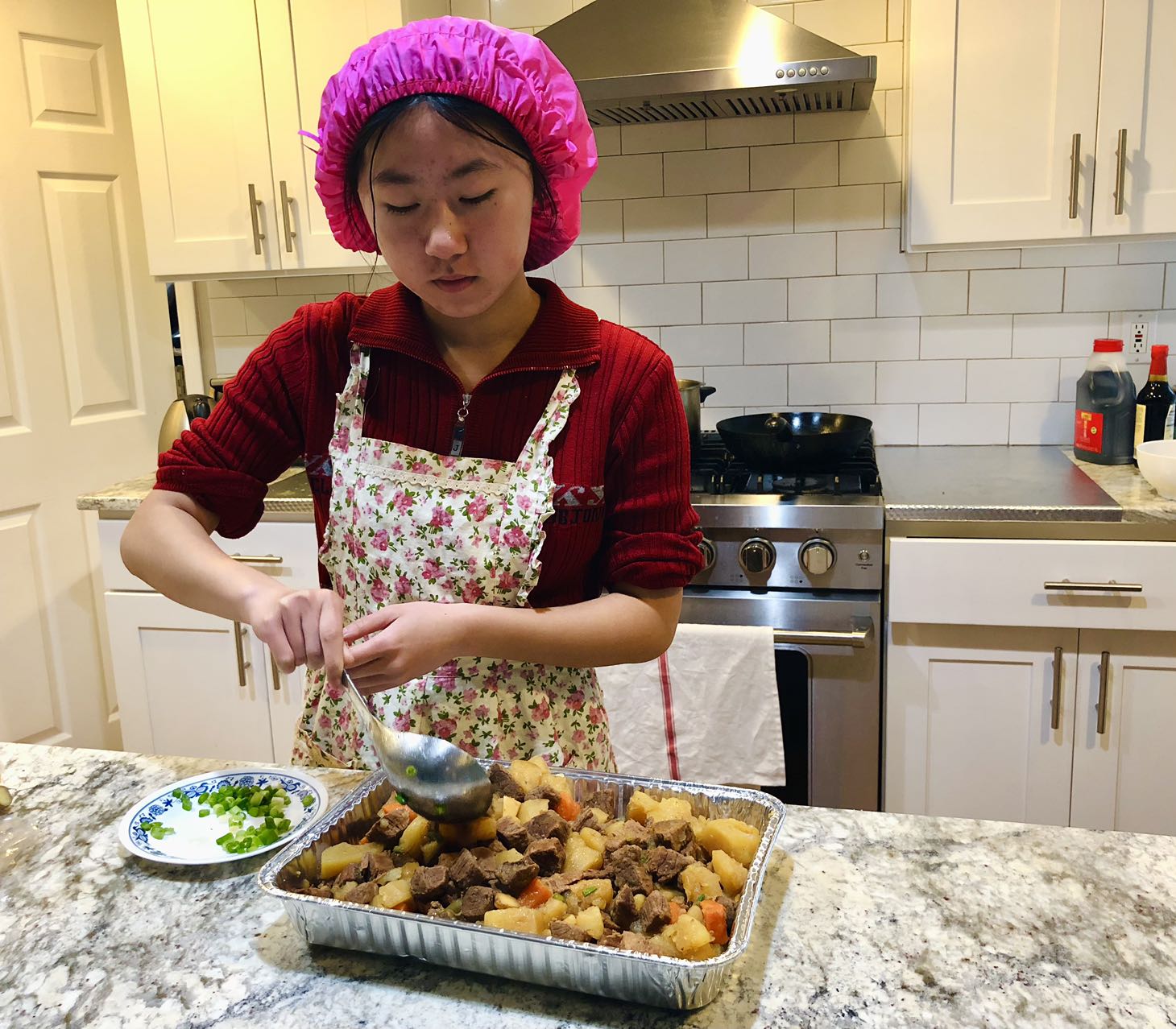 今天是每月一次在庇护所提供晚餐的日子,一共有10个家庭参加,家长做后盾,让孩子们亲自动手准备食物,结果又是一顿美味大餐,从炒饭,土豆烧牛肉,烤鸡腿,生熟蔬菜,到芝麻球,幸运饼干,因为正赶上复活节,还特意手工制作了复活节彩蛋。7位中学生有幸在庇护所派饭,和那里的居民亲切互动。“好吃,太好吃了”,情不自禁的话语不断传过来。实话实说,看着盘中丰富的菜肴,相信已经赶上了我们节日家中的晚餐。说得好,『德不孤,必有邻』,将心比心,我们是在用爱回答生活中的挑战,展现出来的是我们社区的智慧。