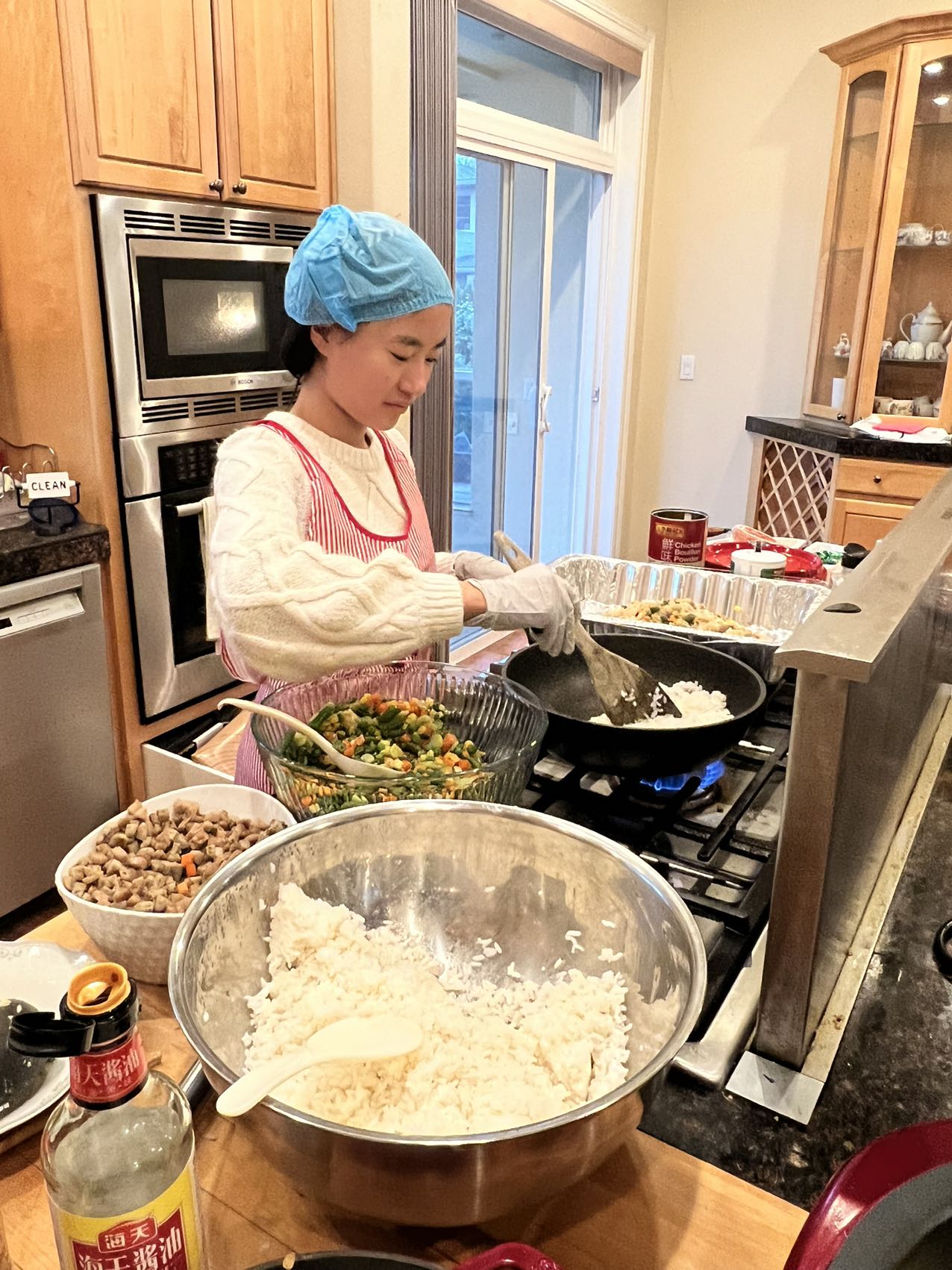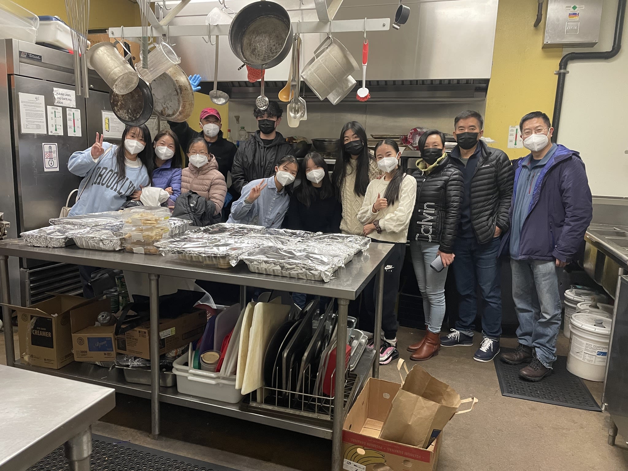 昨天来自社区的10个家庭再次来到唯一市中心的庇护所,给超过50位住在那里的人们提供了一顿丰盛的晚餐,这次做的饭菜数量超多,剩下的足够第二天用作午餐了。整个活动仍然是中学生们担当重任,从准备食材,到上灶,再到派饭。这次来派饭的孩子们应该都是第一次,从刚开始的不知所措到进入状态也就是前后半个小时的时间。从两个录像片段中可以看到孩子们与领取食物人们相互交流。