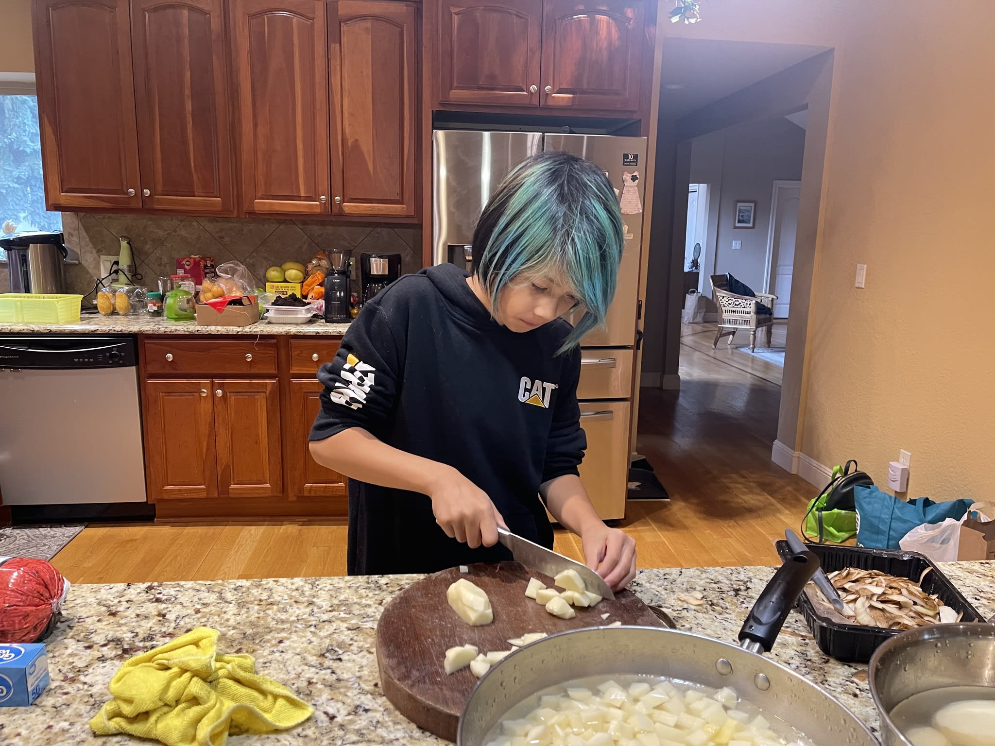 非常感谢OCC又一次给社区的孩子们和家长们带来了一个非常不一样的机会!!这是孩子有生以来第一次为超过五个人做饭,技术上,体味到了量的区别、体验到了学校cafeterias staff的不易; 也是他第一次serve foods in 庇护所,特别兴奋,特别高兴和小伙伴们一起可以为陌生的同在一个城市的人们带来一点点快乐的moment, “small but real”, 而且还很fun! “Absolutely a good day!” 非常感谢OCC不断地带领社区的孩子们及家长们走入社会,开阔视野,我相信今天孩子们经历的一定会让他们都很难忘,会更让他们知道感恩,知道世界上有很多人很多事等着他们去做呢。咱们的孩子们个个都相当可爱,相当踏实,真的很棒!! 跟家长们一起,拍拍照,聊聊孩子们的成长也很开心。