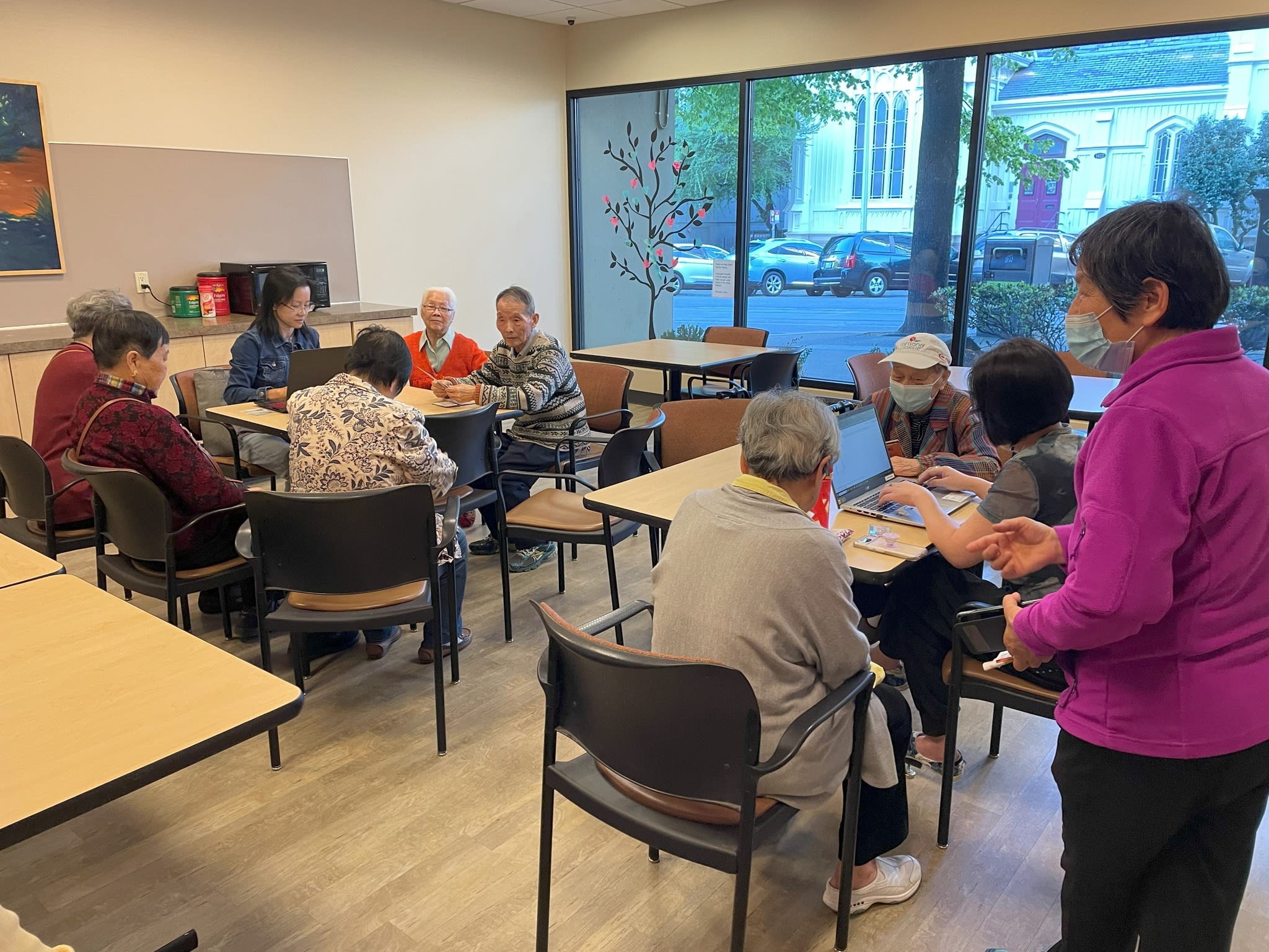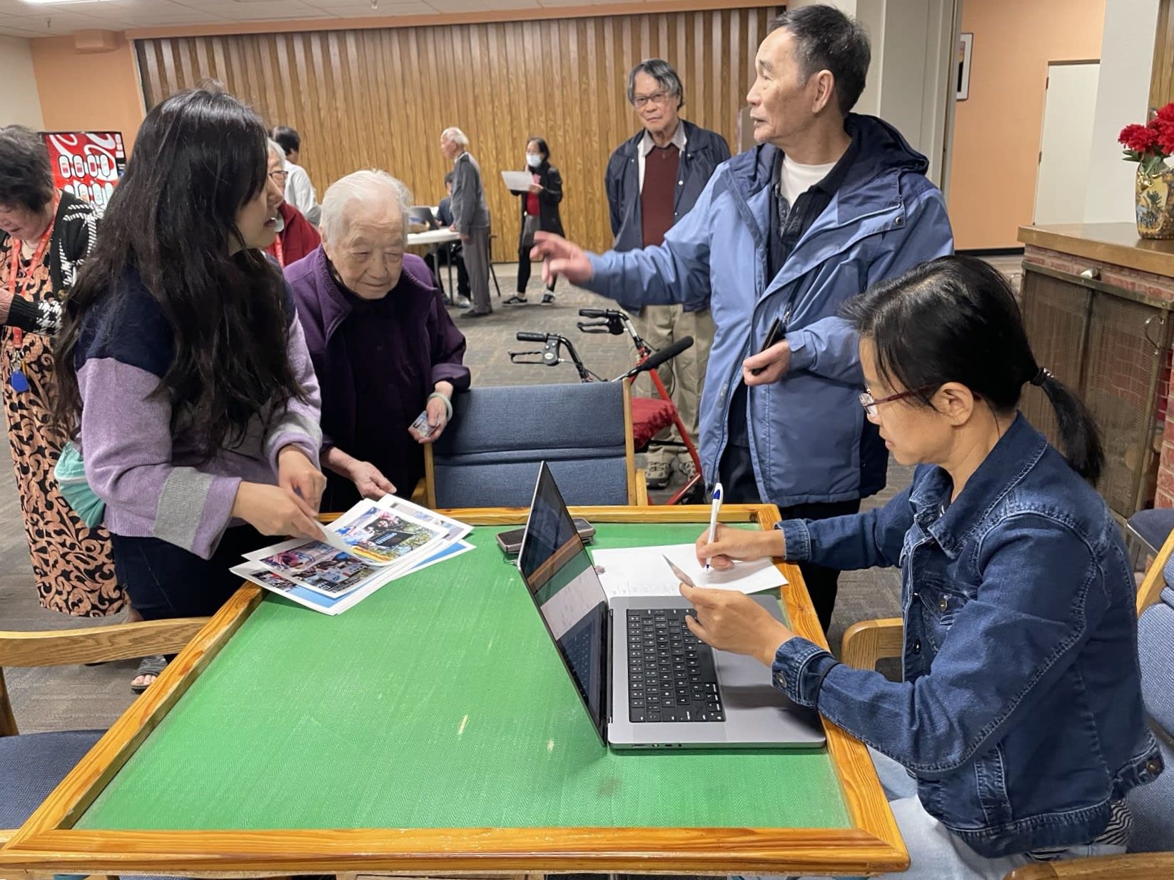 第二天,他们去了附近的老人公寓。在那里,他们协助了95位老年人进行选民登记,并帮助另外33位老年人核实了他们的选民登记信息。此后一星期,他们又走访了市中心的两个老人公寓,为那里近30位老人做了选民登记。