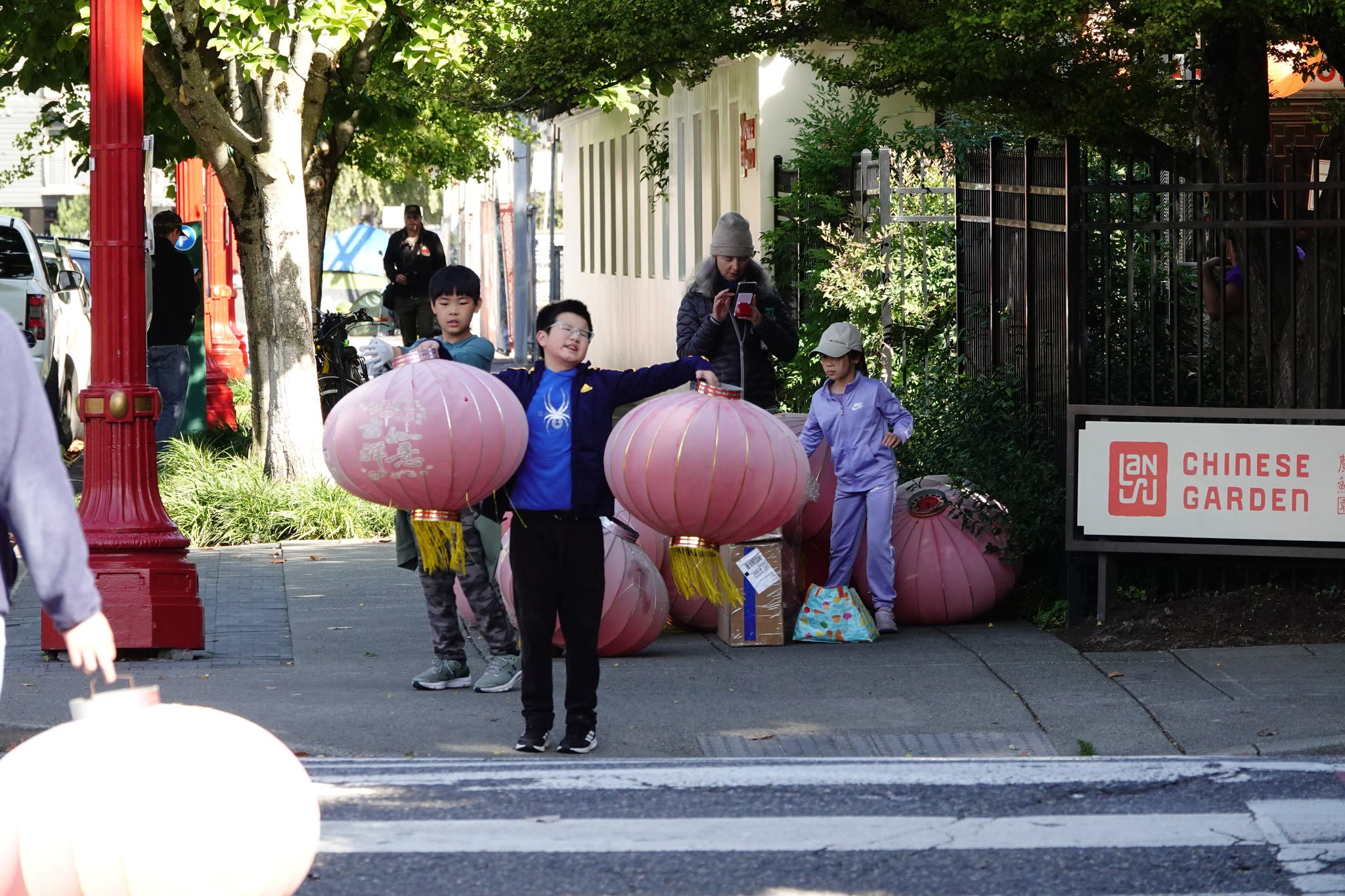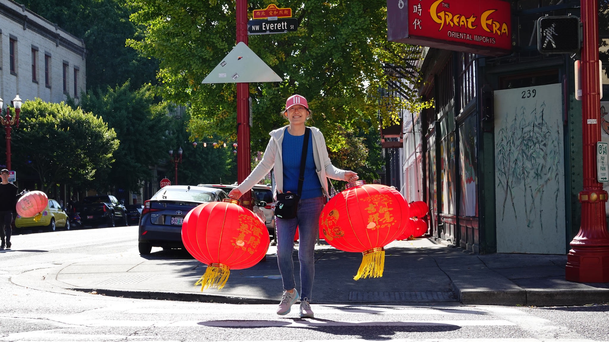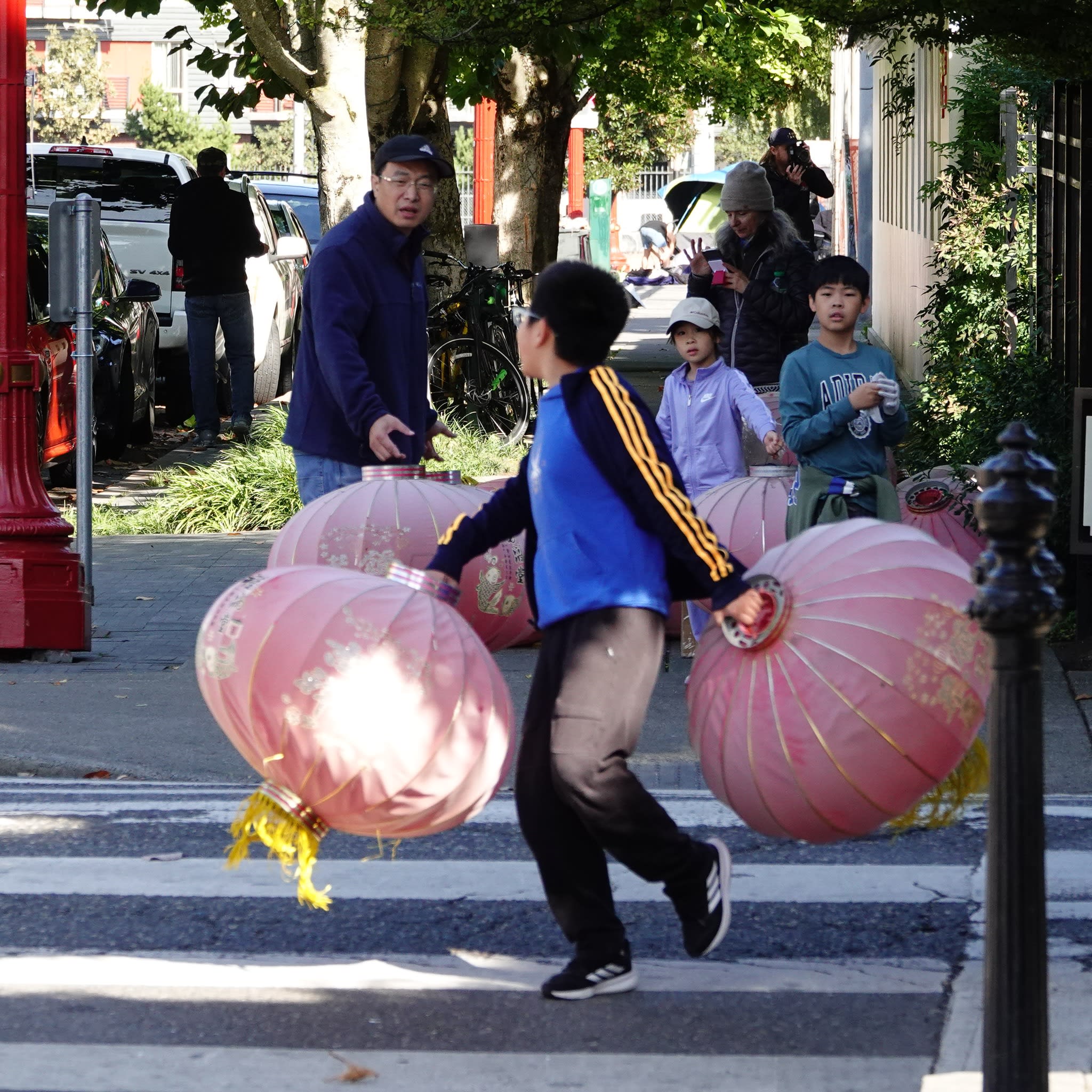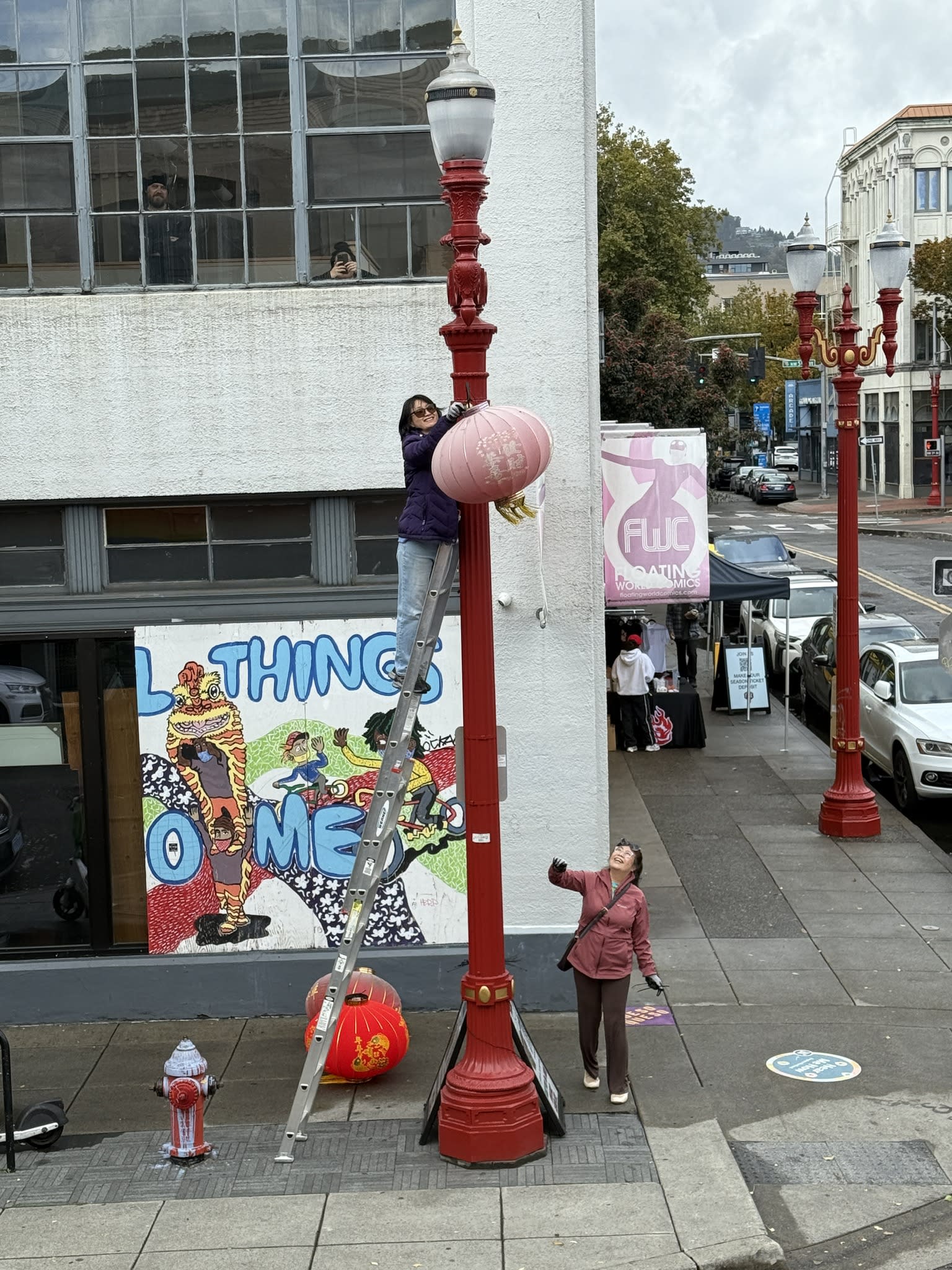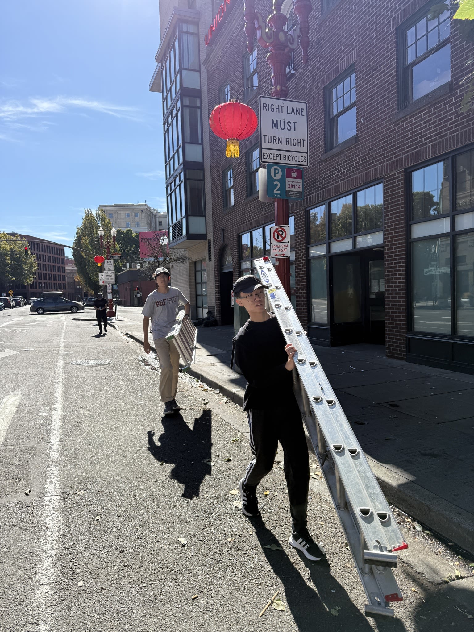 The second week of lantern replacement in Chinatown coincided with passing showers, but that didn’t slow anyone down. Each of the six volunteers worked tirelessly—about four hours non-stop—to complete all the lanterns along 4th Avenue. One mother in particular stood out, single-handedly replacing 17 lanterns. We fondly called her the most industrious volunteer (最拼义工) in the history of Chinatown’s lantern project.
