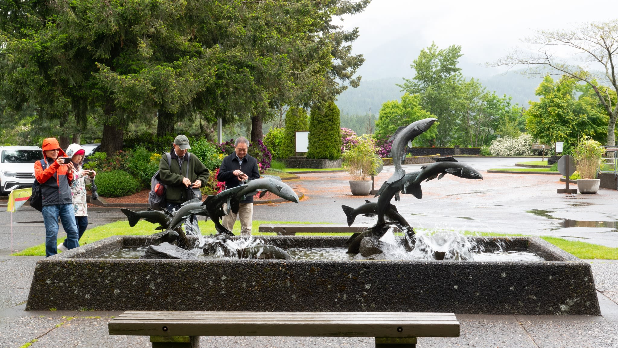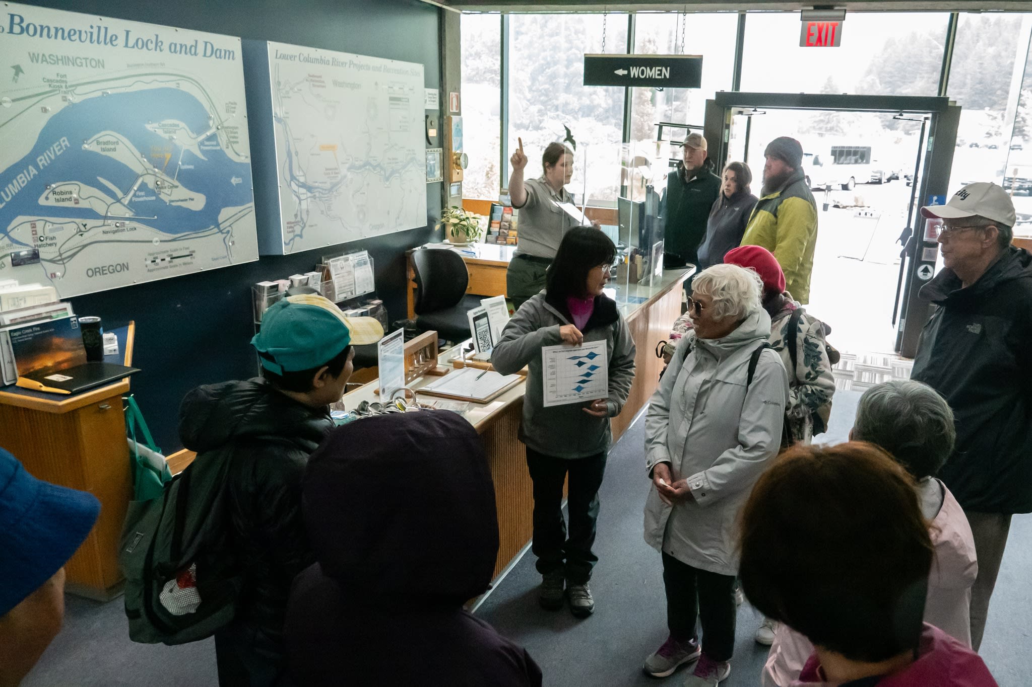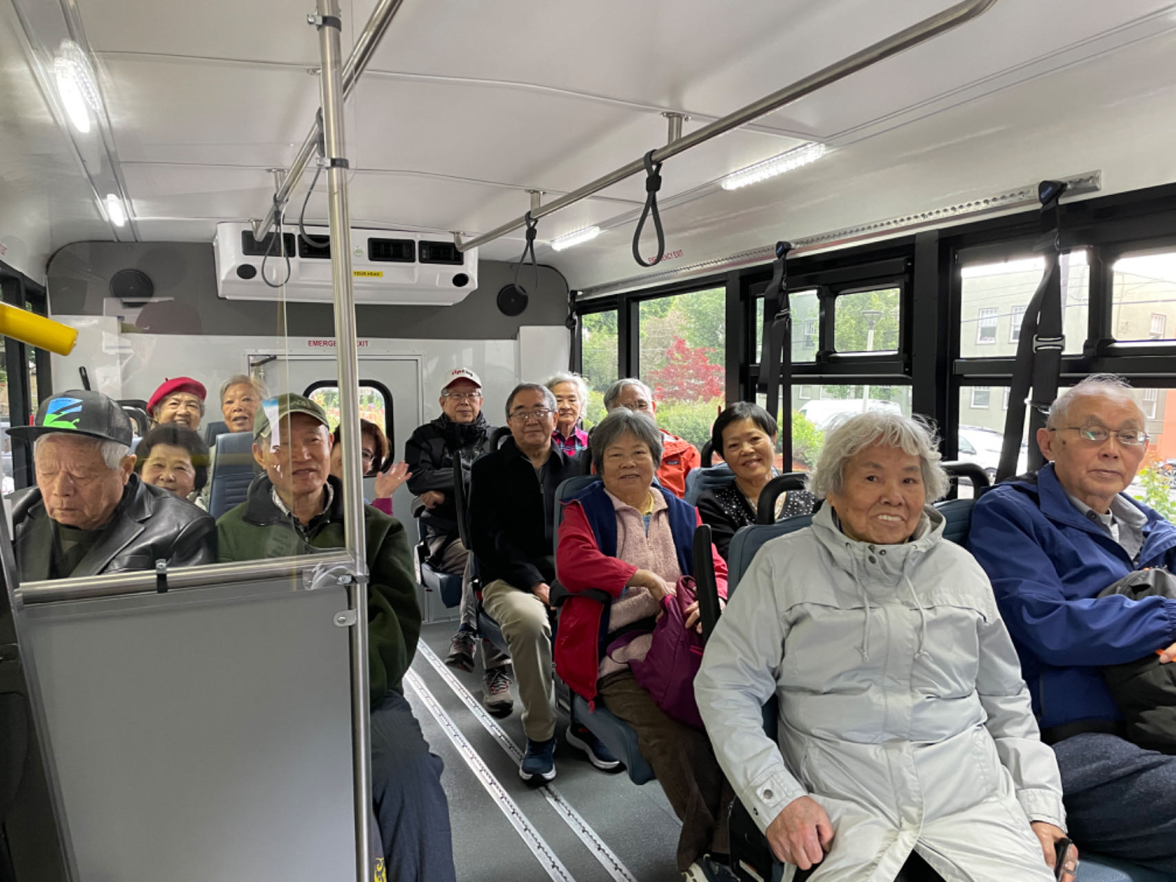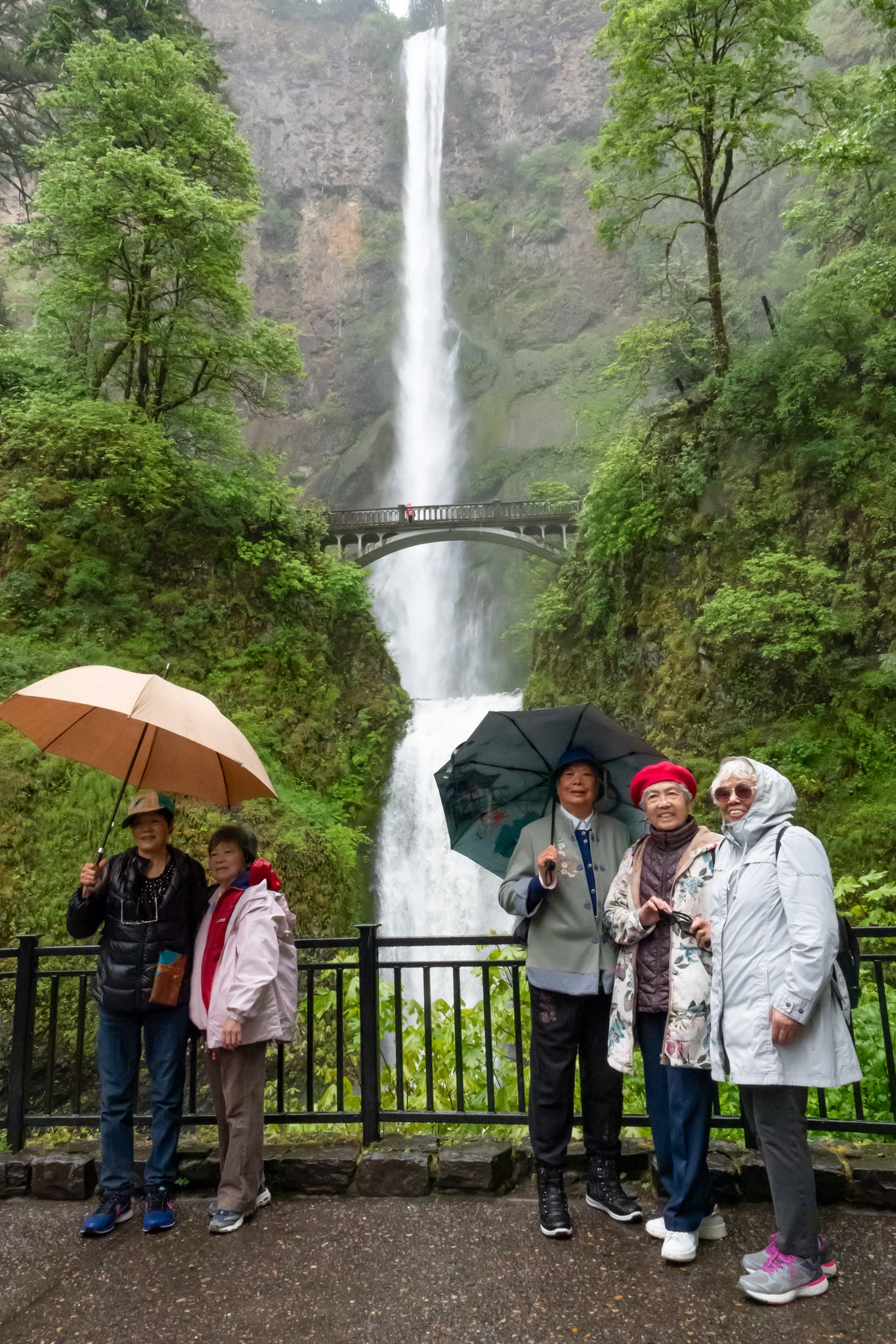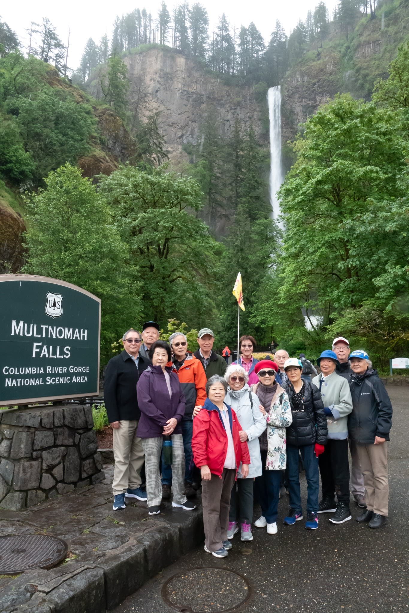 与 Ride Connection 合作带社区老年人外出活动进入到了第二年。今天来自 Marshall Union Manor 公寓的14位老年人与我们的志愿者一起前往了 Multnomah Falls 和Bonneville Hatchery。尽管天气寒冷潮湿,老年人们依然度过了愉快的时光。